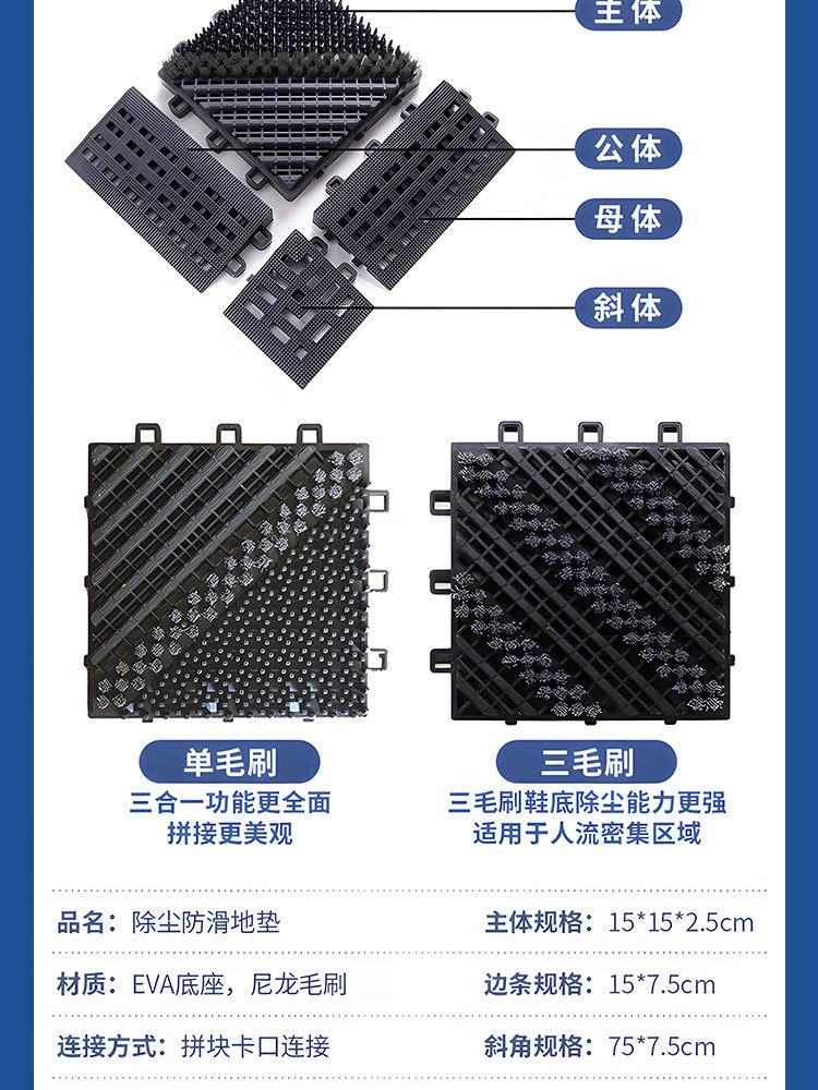 • 단일 브러시 - 파란색 브러시 회색 블록 두께 2.5cm