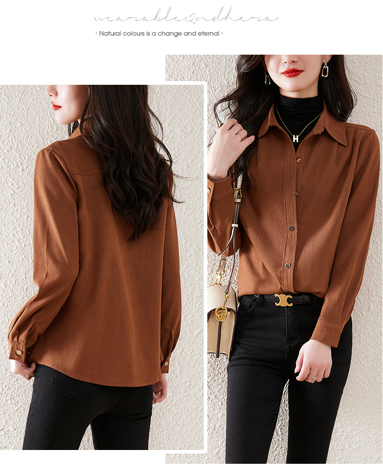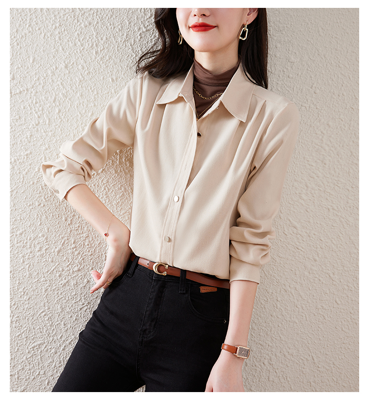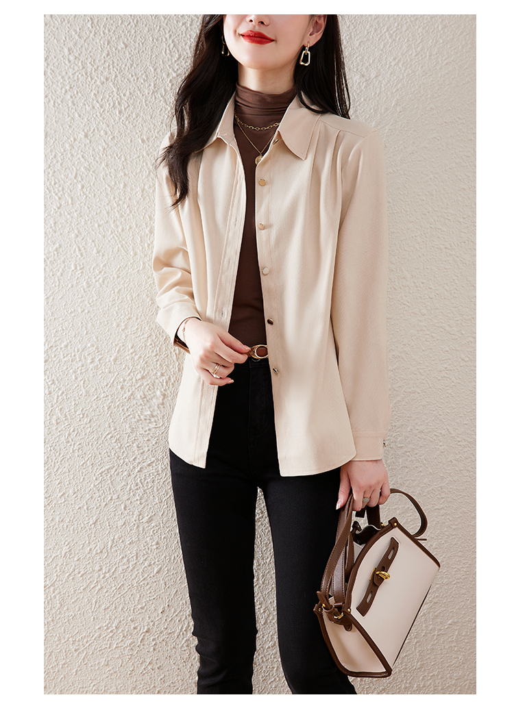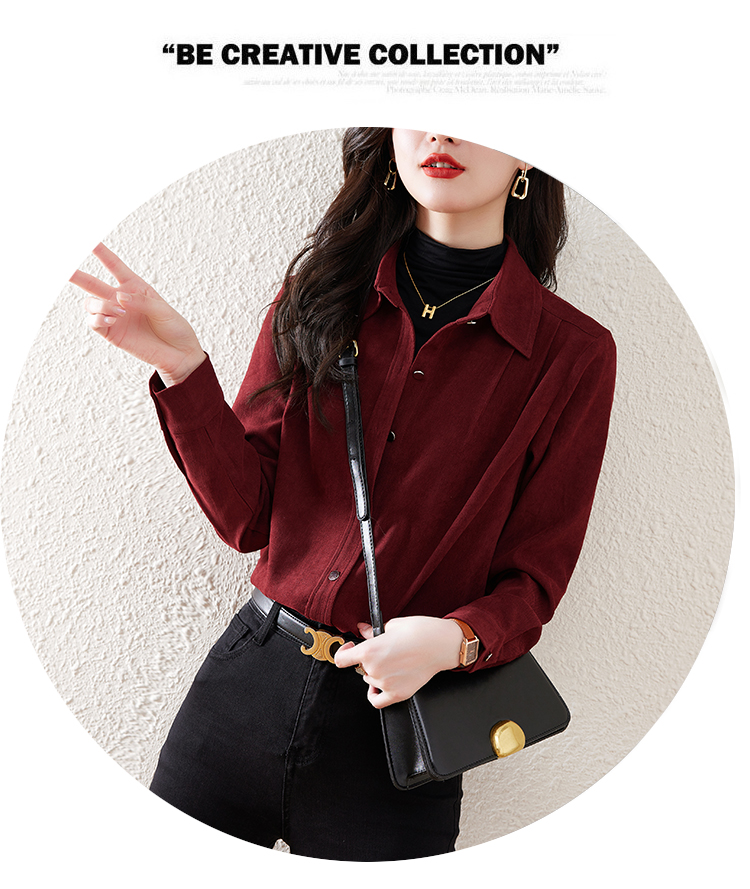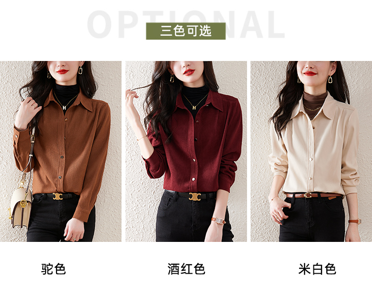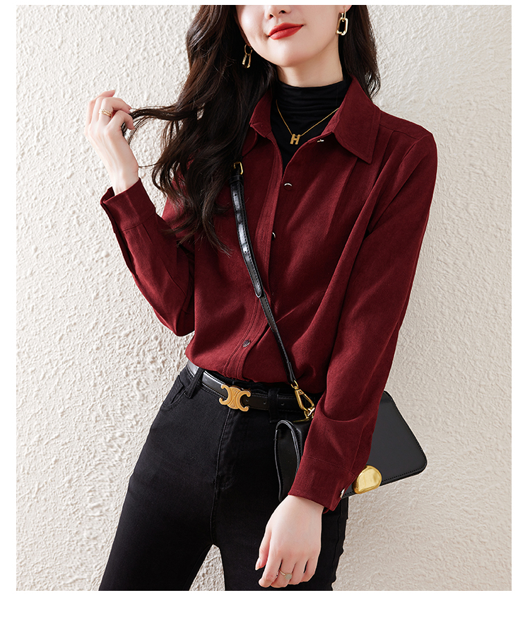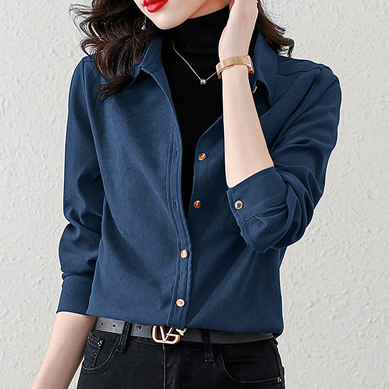 레트로 홍콩 스타일 브러쉬 셔츠 여성용 긴 소매가 두꺼워졌습니다. 24 가을과 겨울 내복 서양식 밑바닥 셔츠 스택 탑 패션