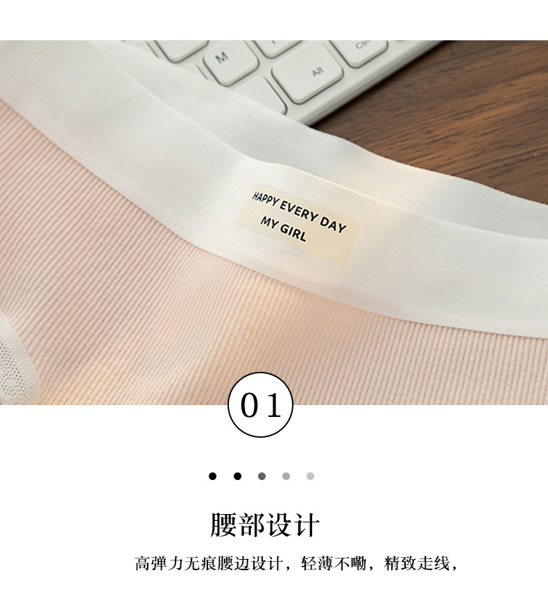 5A 항균 A급 면 여성용 무봉제 삼각팬티 순면 항균 중간 허리 팬티 메일라드