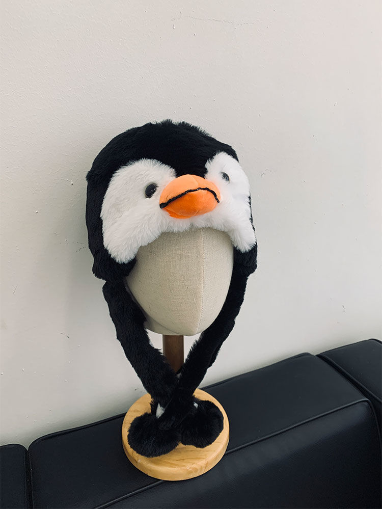 샤오홍슈, 틱톡, 캐스트웨이와 동일한 스타일의 대학생 자전거 타는 어린이용 귀여운 인터넷 유명인 스타일 펭귄 모자 여성용 가을 겨울스토어 가기