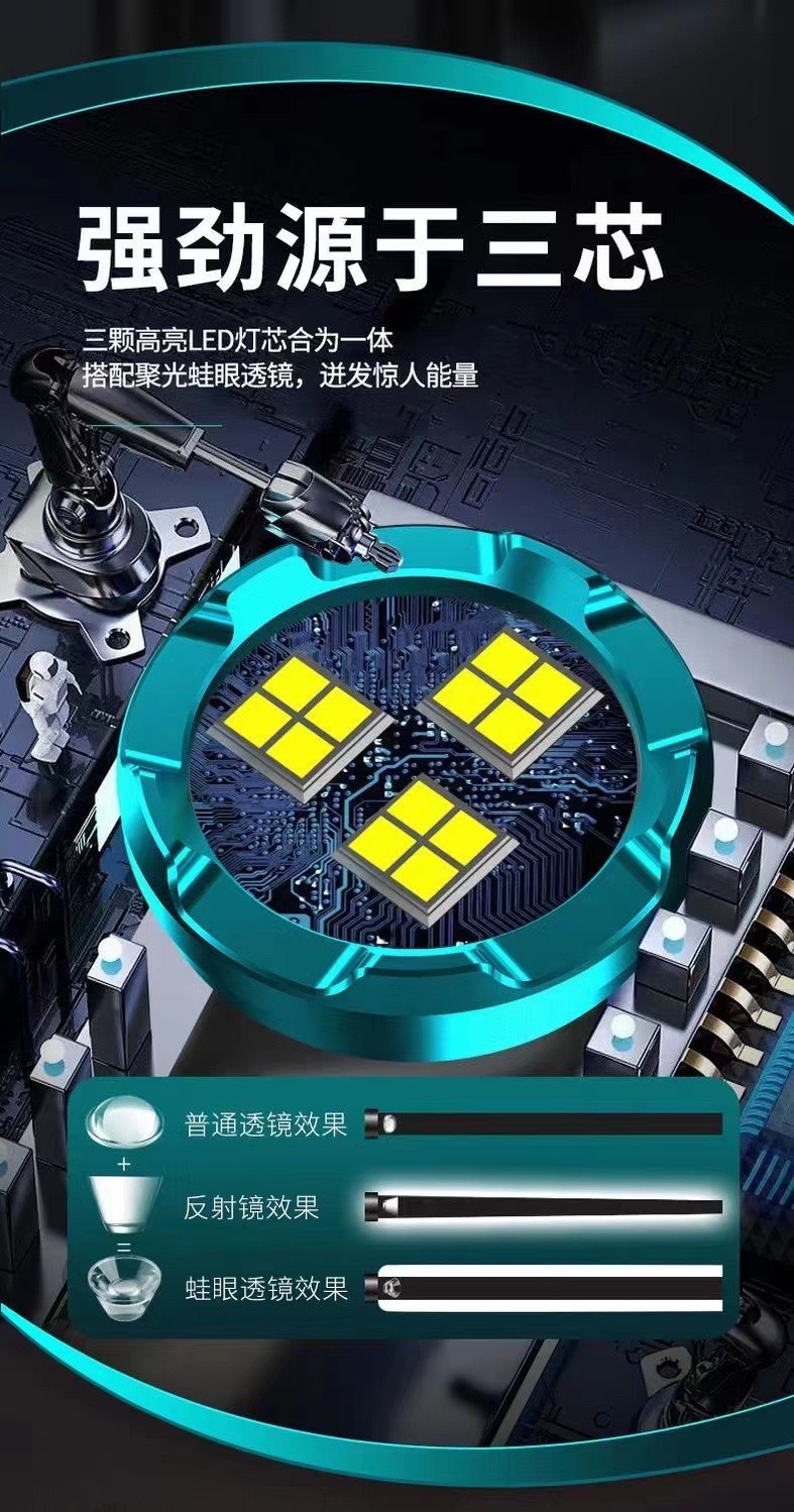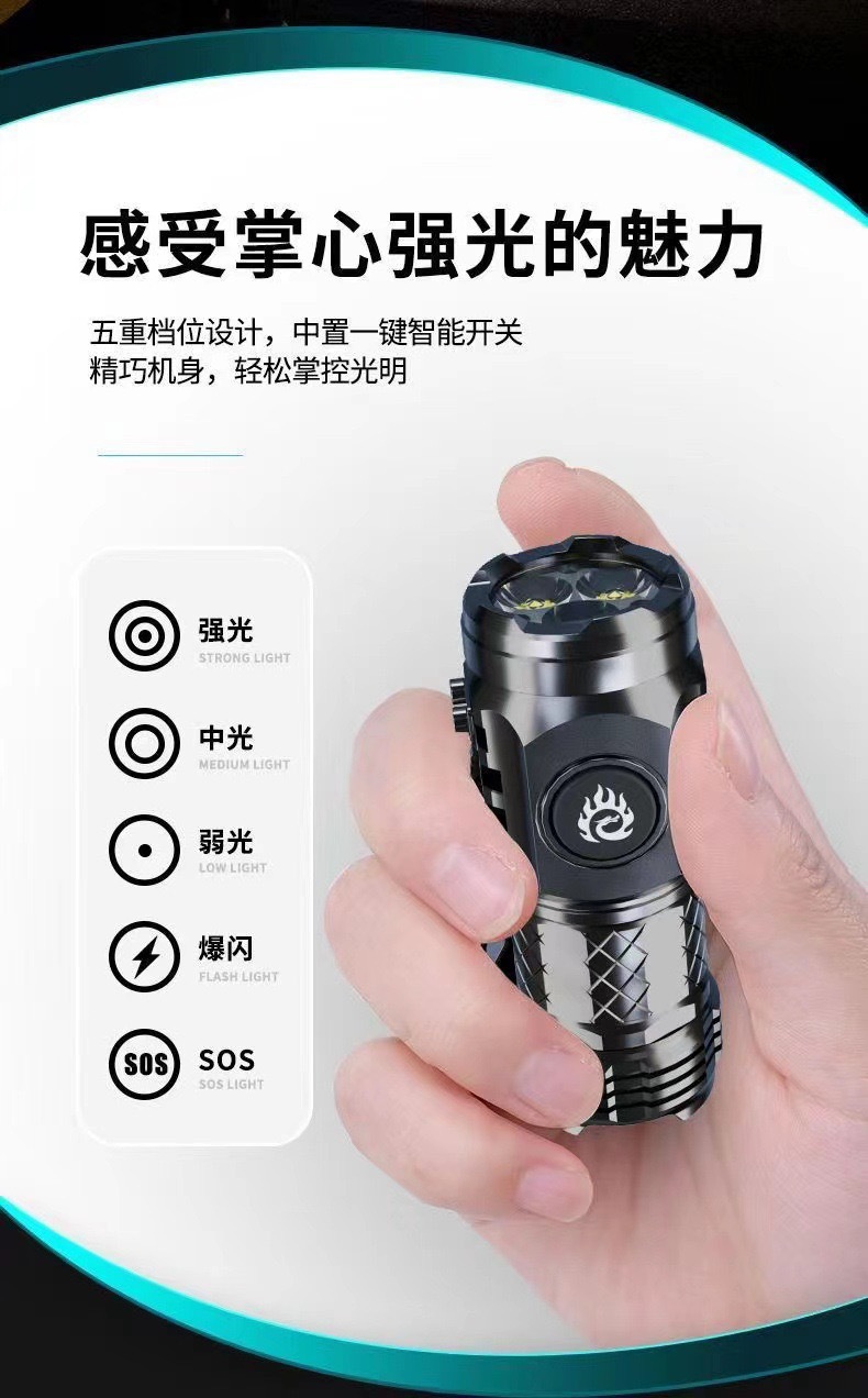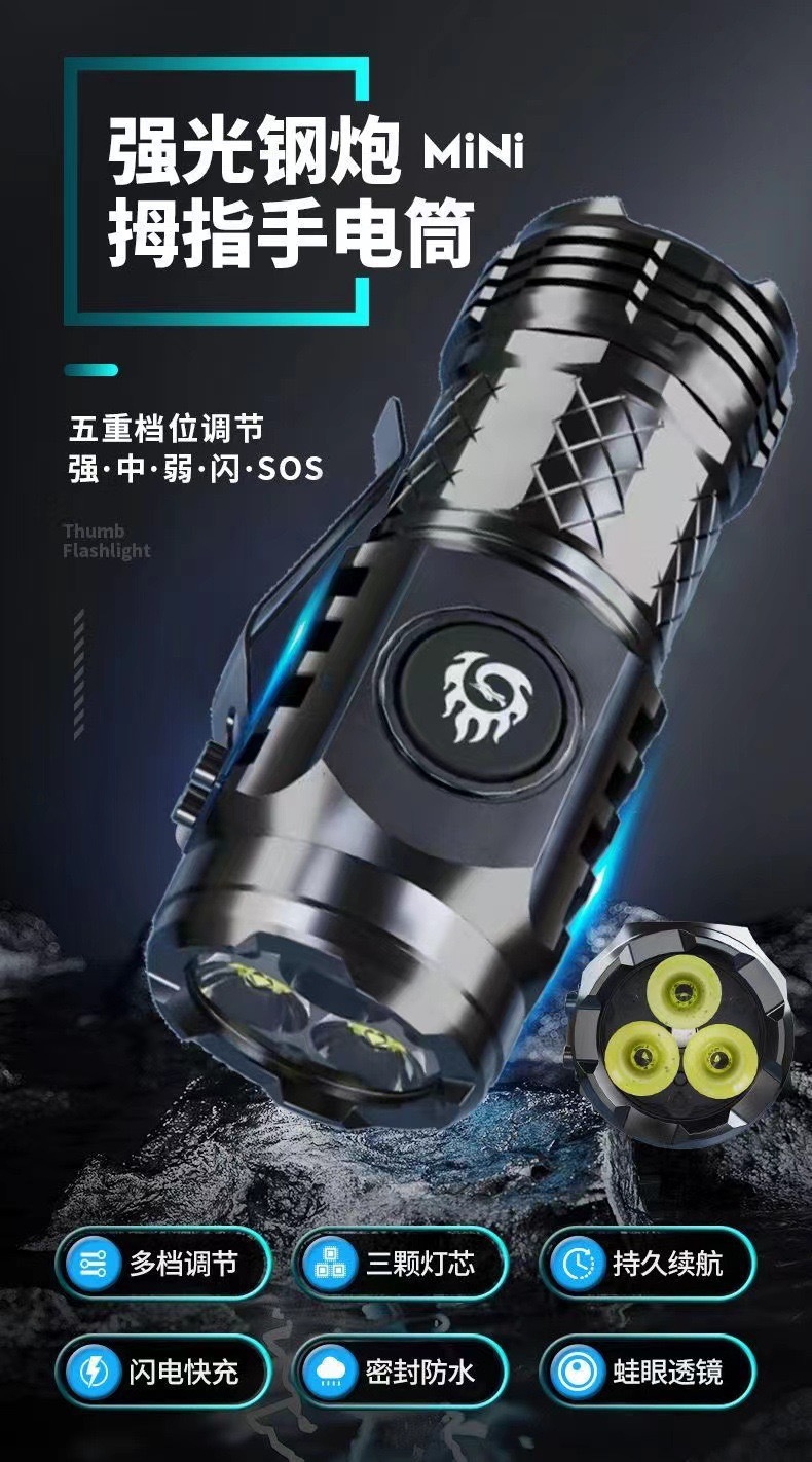 3 눈 괴물 강한 빛 손전등 슈퍼 밝은 미니 휴대용 LED 다기능 자석 충전 홈 야외