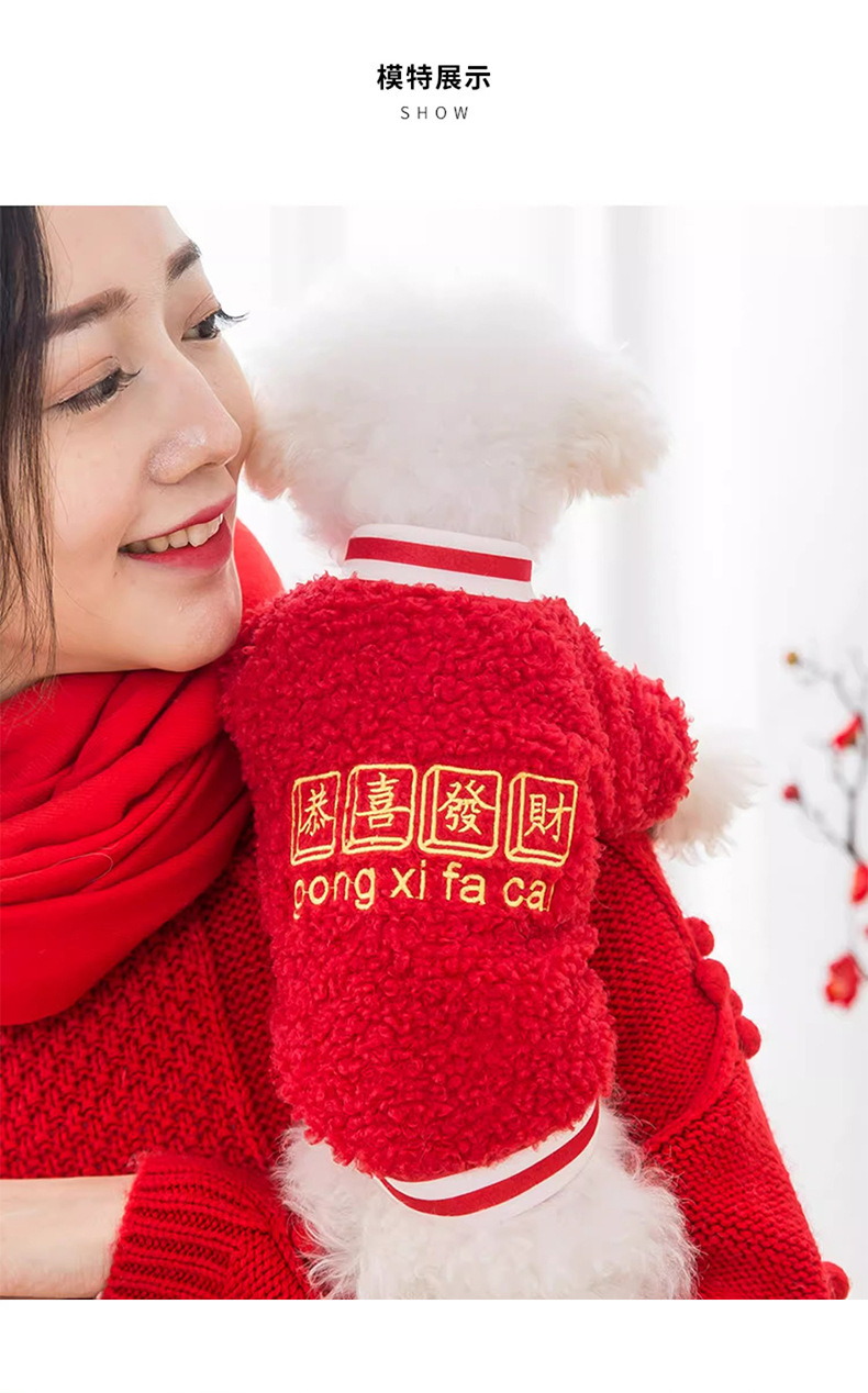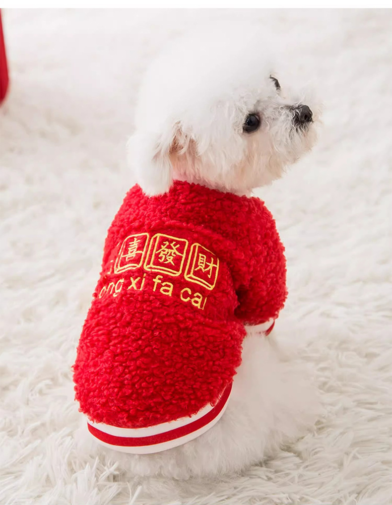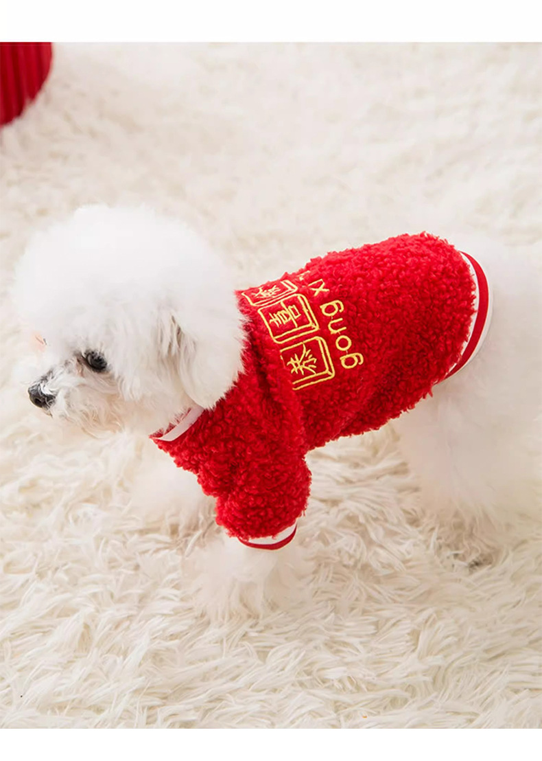 풍부한 양모 곡물 자수 양털 의류 작은 개 2 피트 아웃 패션 봄과 가을 애완 동물 개 옷을 착용