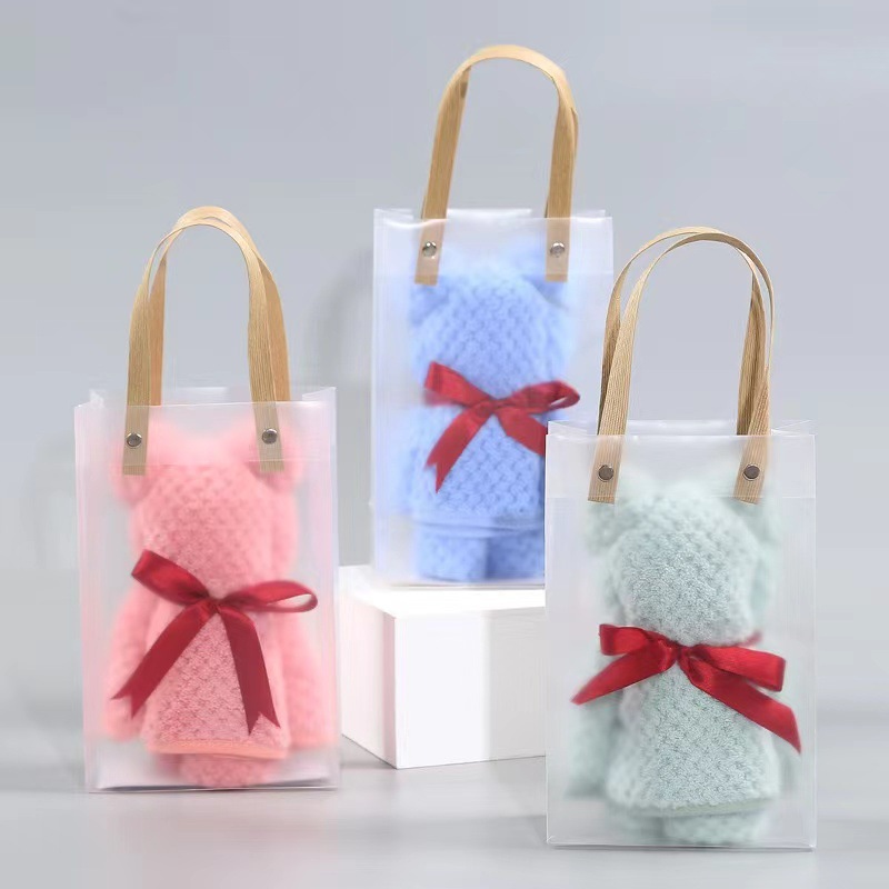 창조적 인 워프 뜨개질 파인애플 격자 무늬 수건 선물 곰 수건 PVC 핸드백 고밀도 산호 벨벳 손 선물 도매
