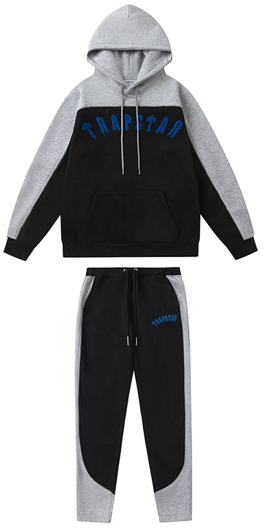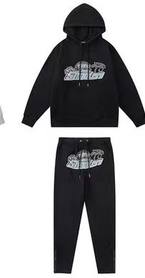 2023 미국 틈새 트렌디 브랜드 레터 타월 자수 힙합 루즈 캐주얼 후드 스웨트 세트