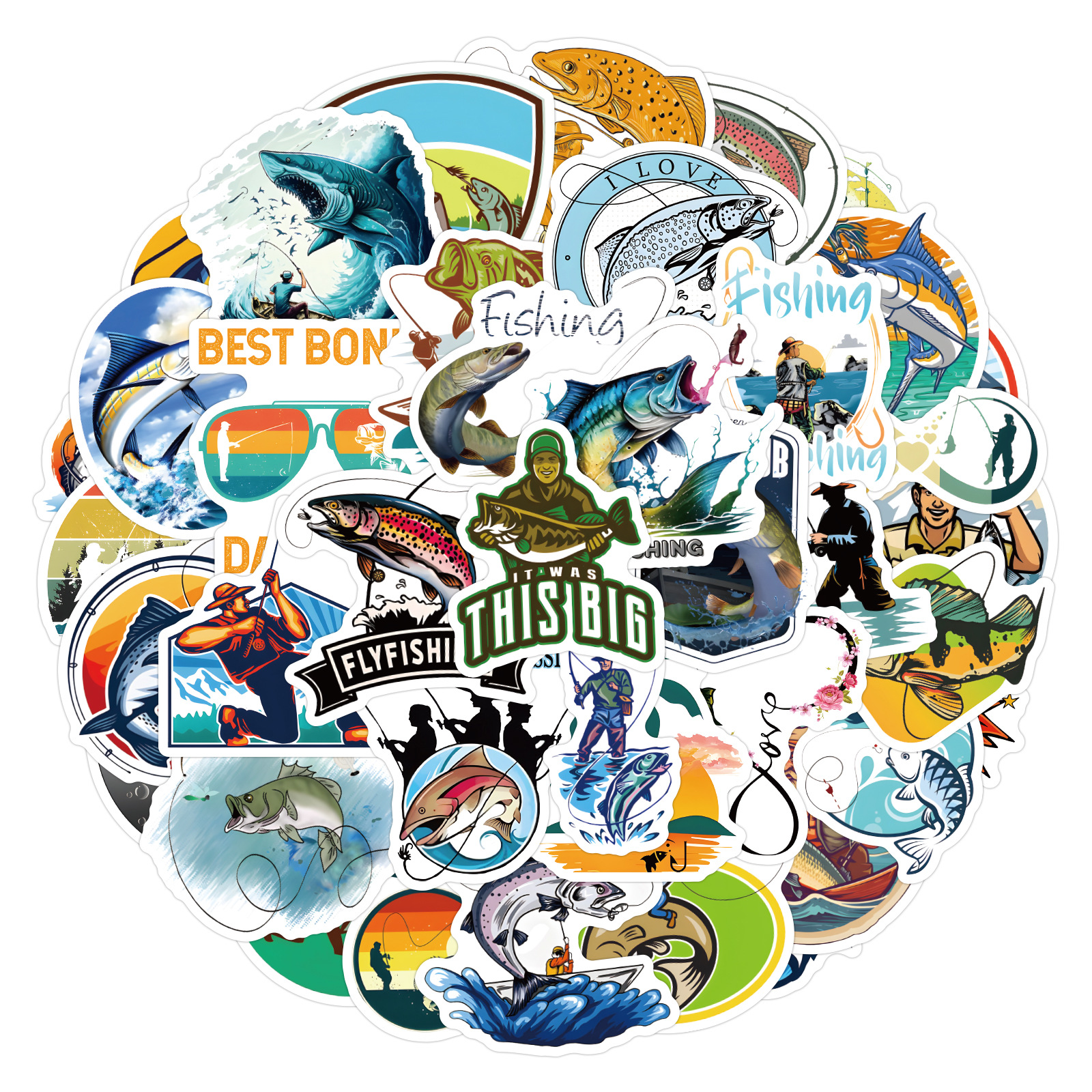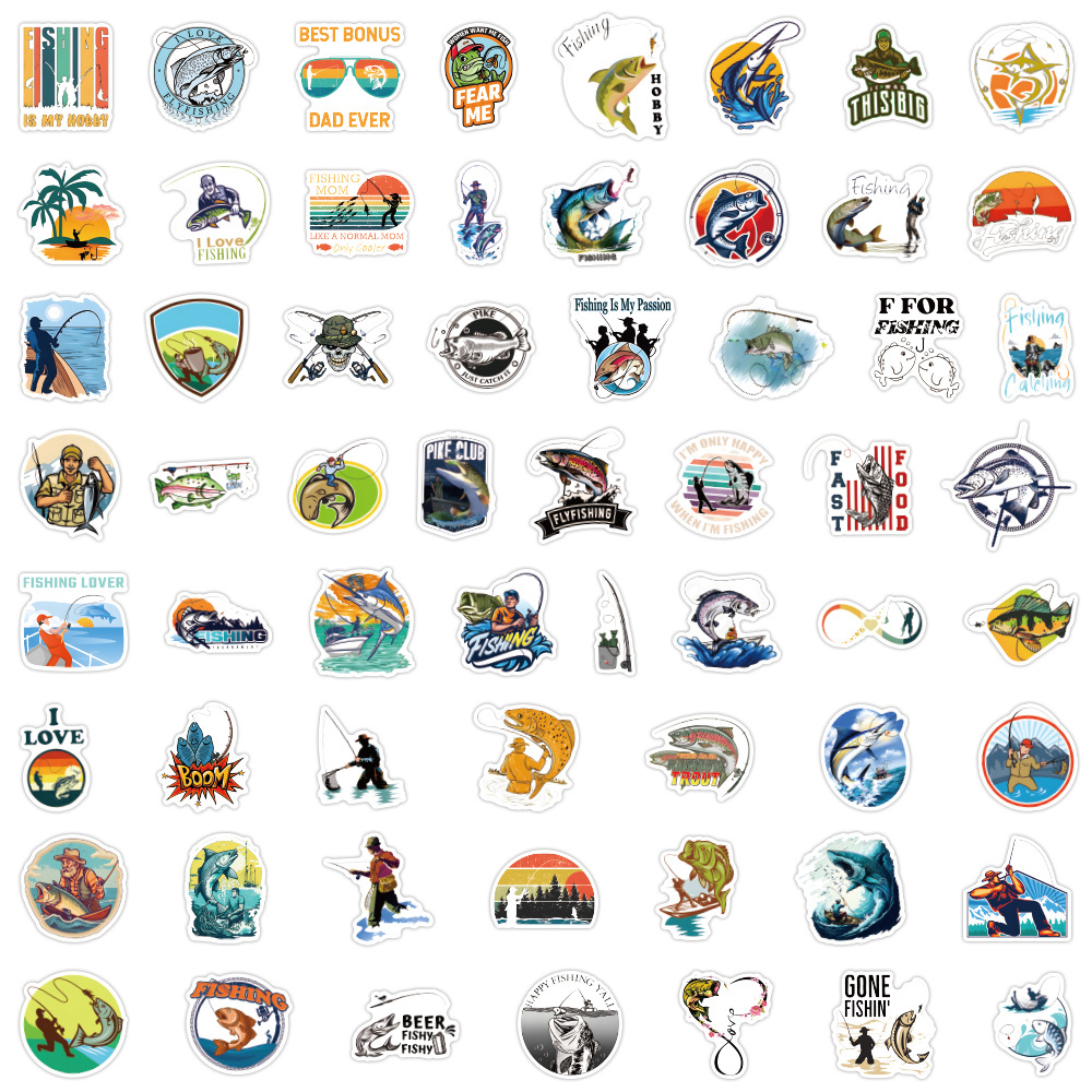 60/120 조각 낚시 개인 낙서 국경 야외 낚시 상자 창조적 인 장식 DIY 수하물 방수 스티커스토어 가기