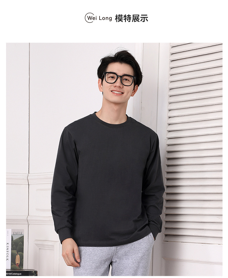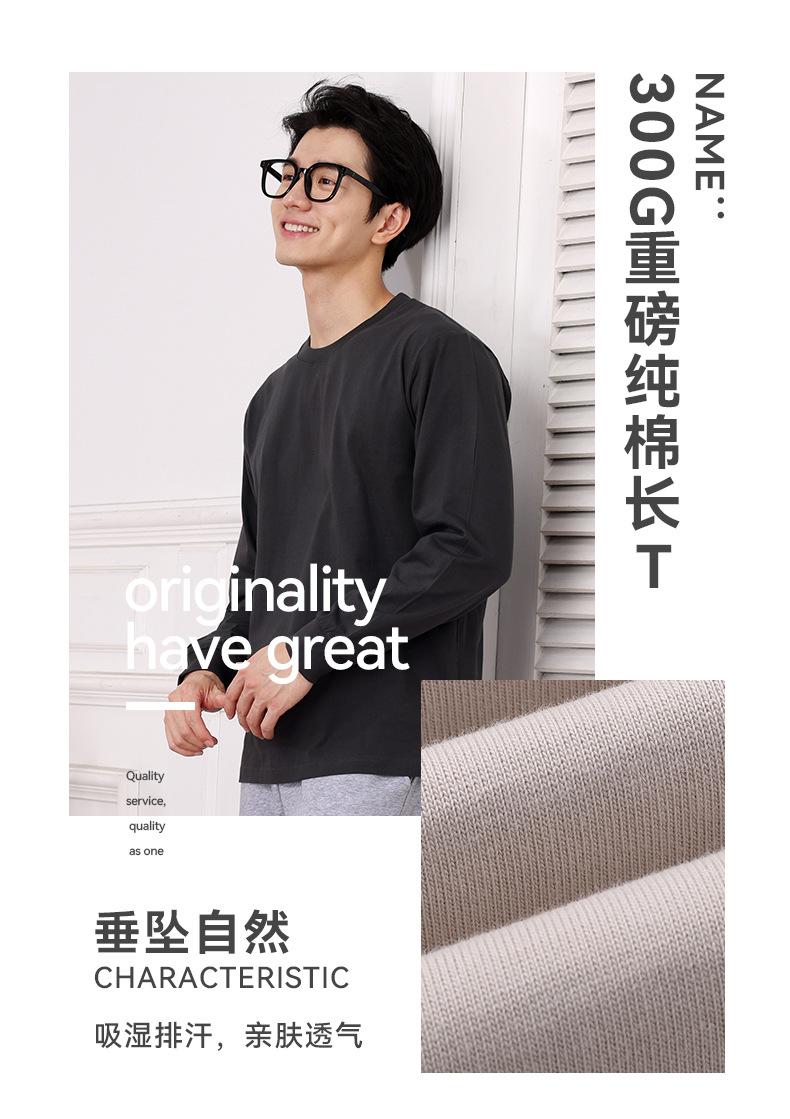 남성용 긴팔 티셔츠 300G 순면 루즈핏 두꺼운 이너웨어 봄 인스 라운드넥 상의 순면 긴팔 티셔츠스토어 가기