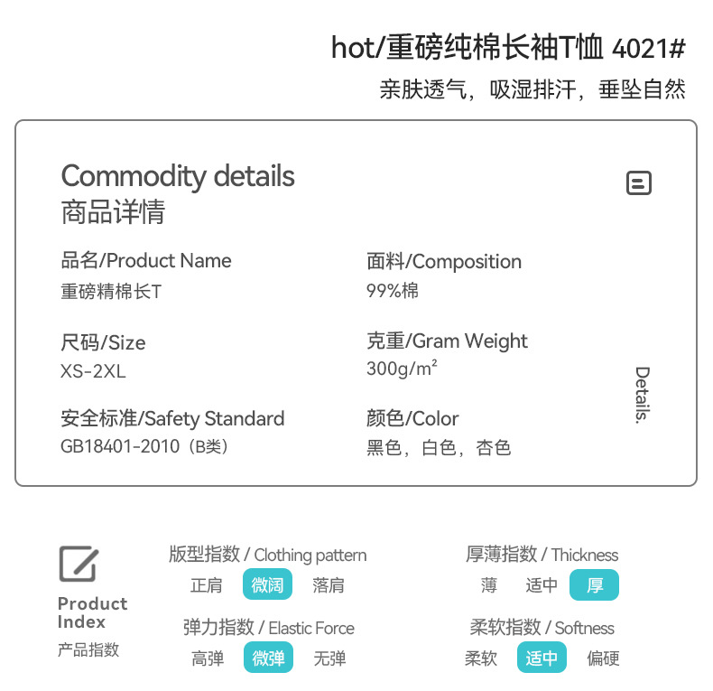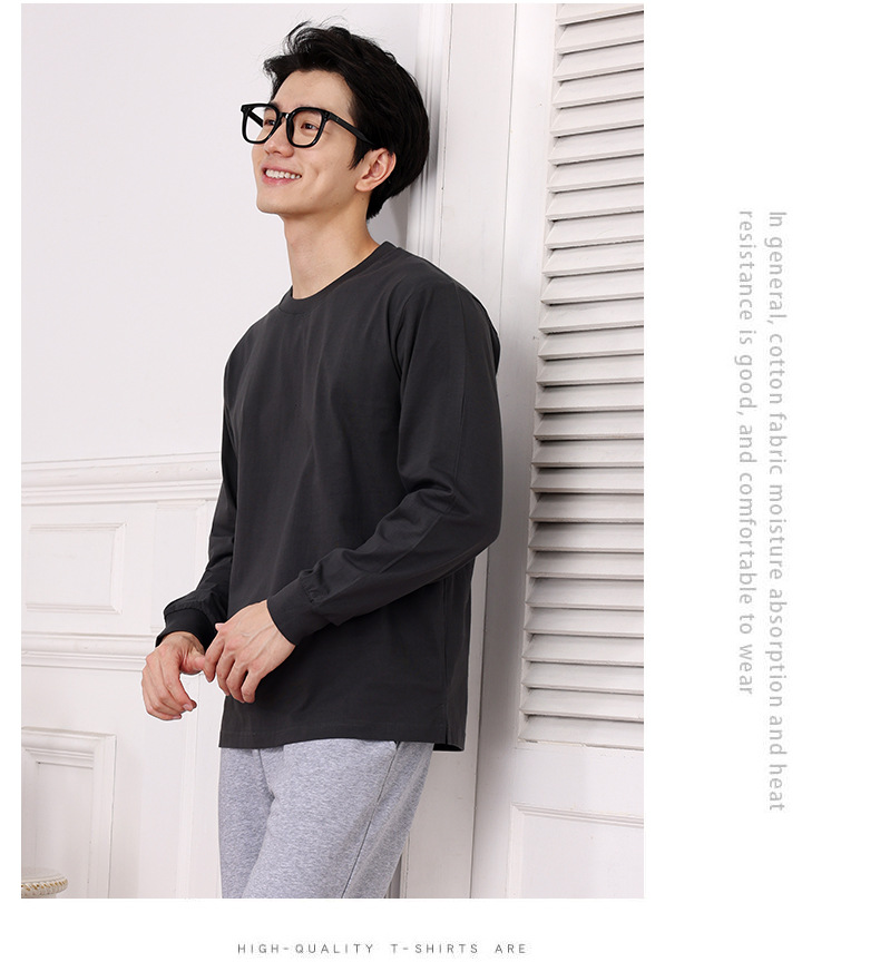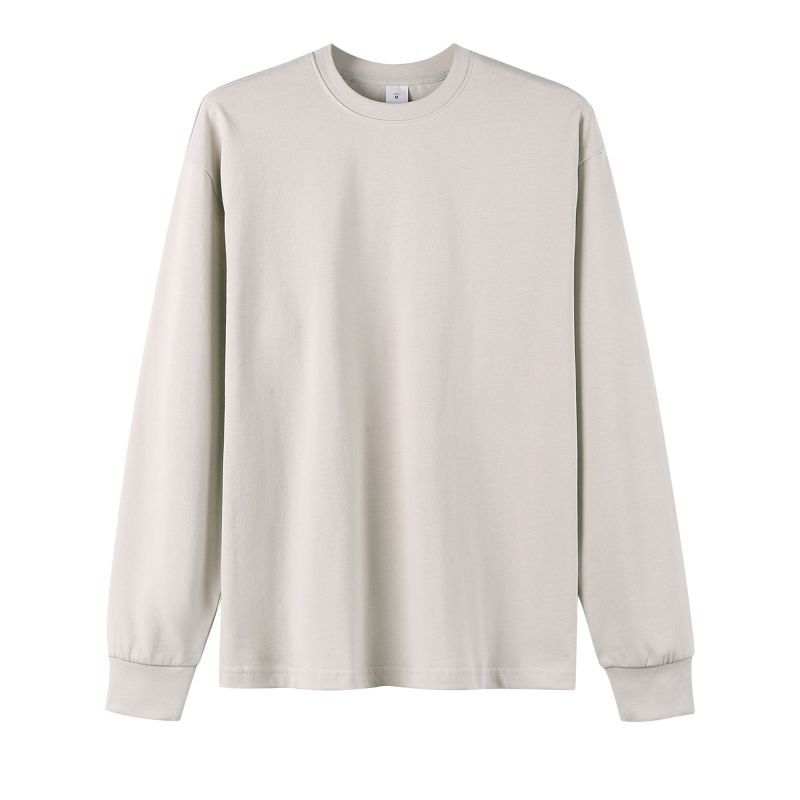 남성용 긴팔 티셔츠 300G 순면 루즈핏 두꺼운 이너웨어 봄 인스 라운드넥 상의 순면 긴팔 티셔츠