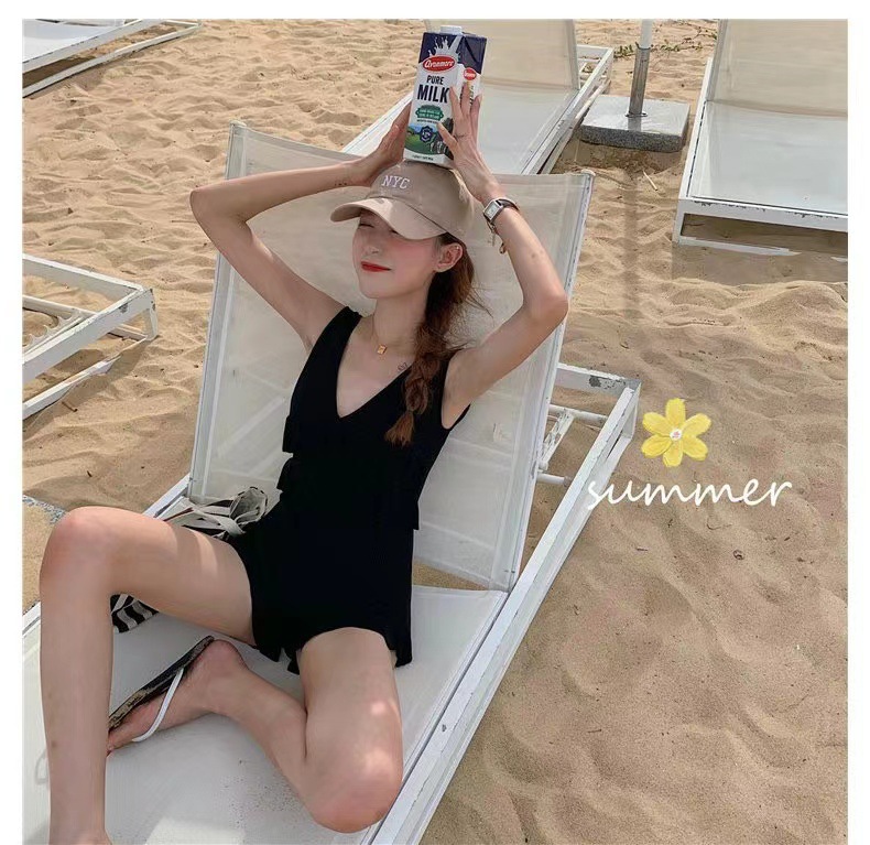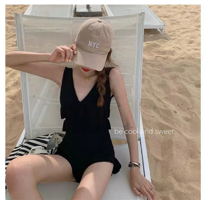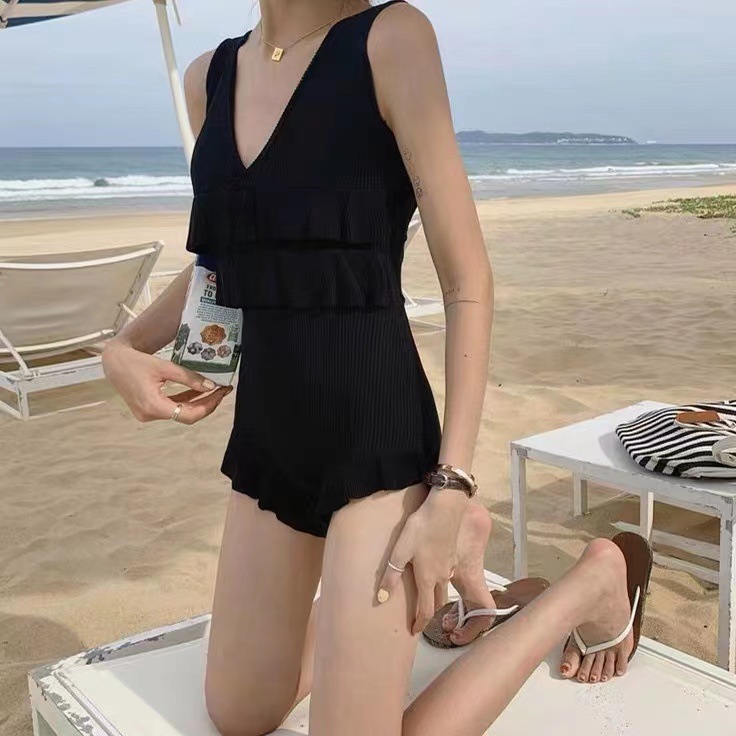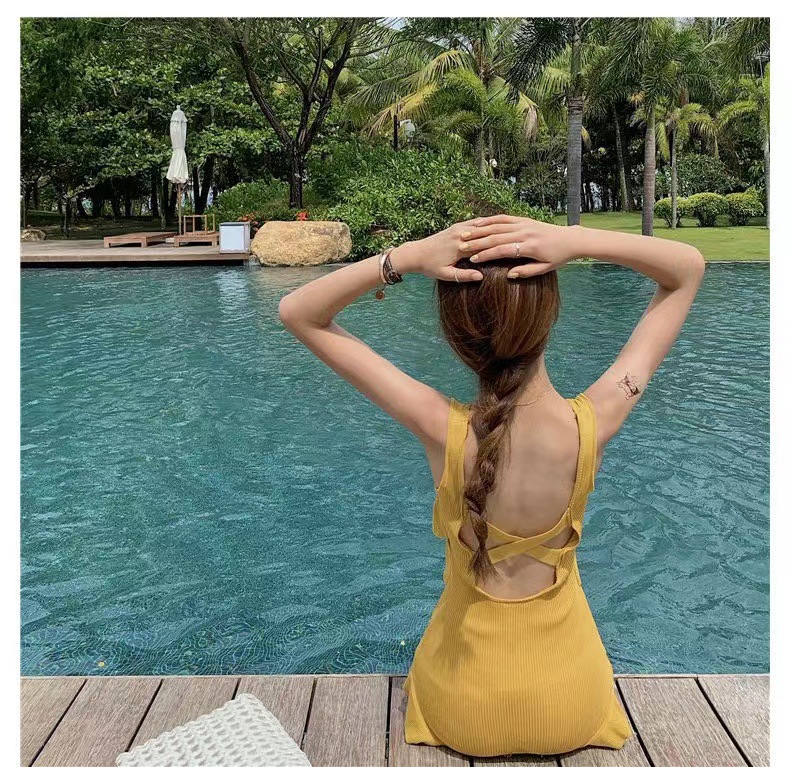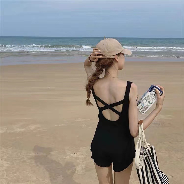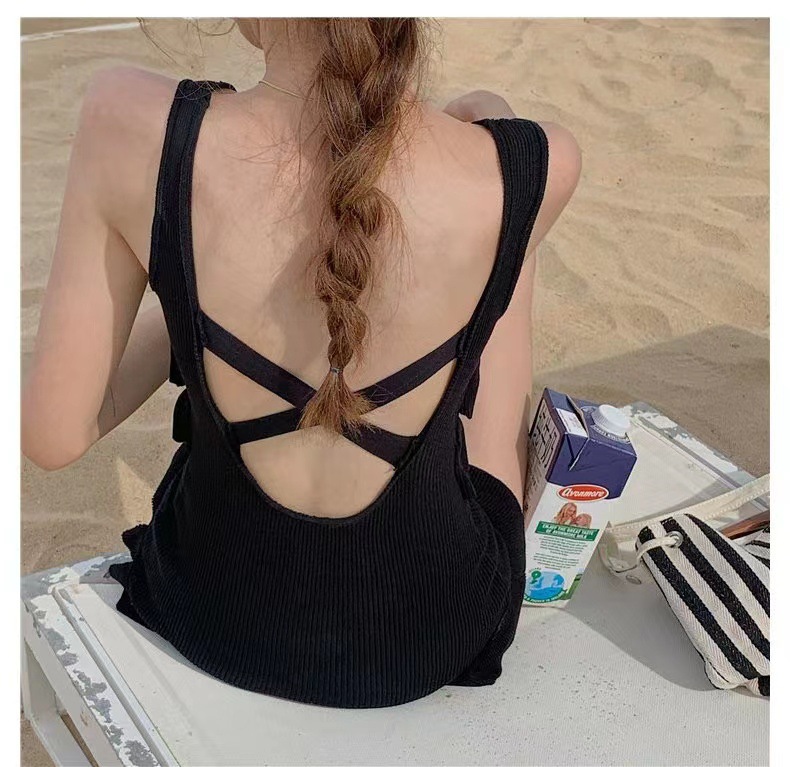 여성 수영복 2026 신상 인터넷 인기 레트로 블랙 ins 스타일 원피스 백리스 디자인 슬리밍 뱃살 커버 순수 섹시 스타일