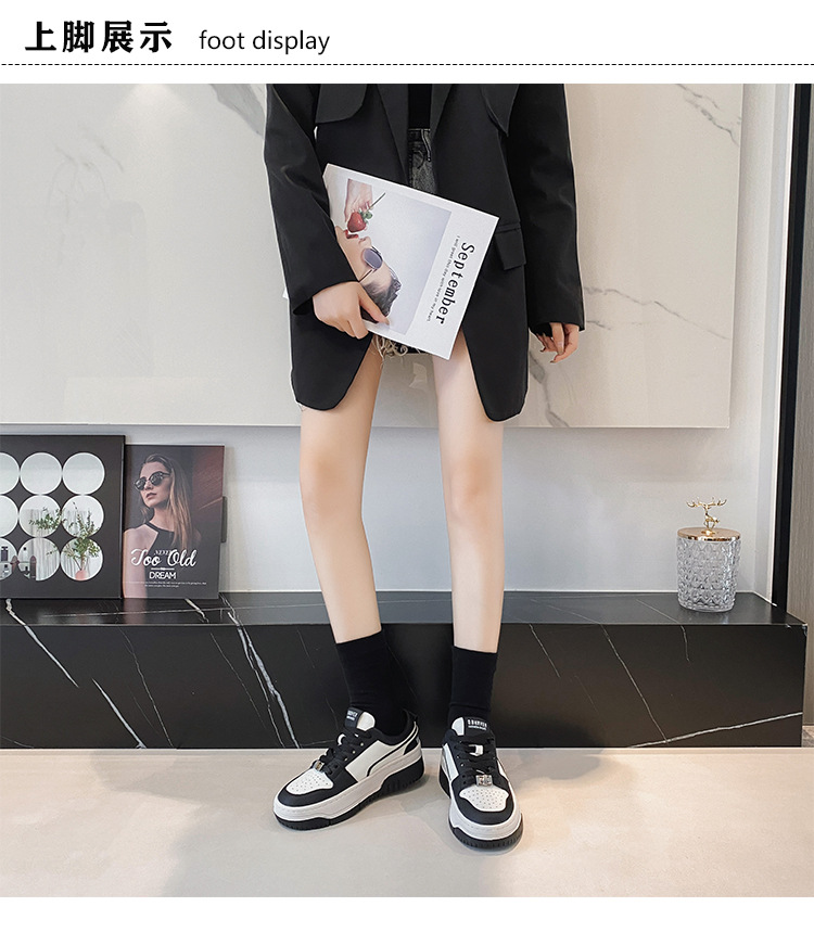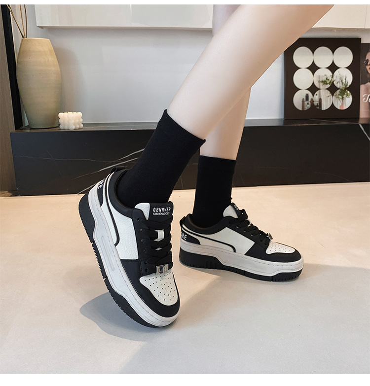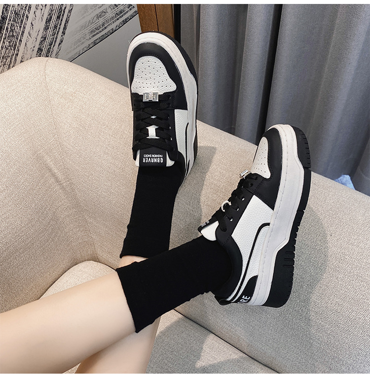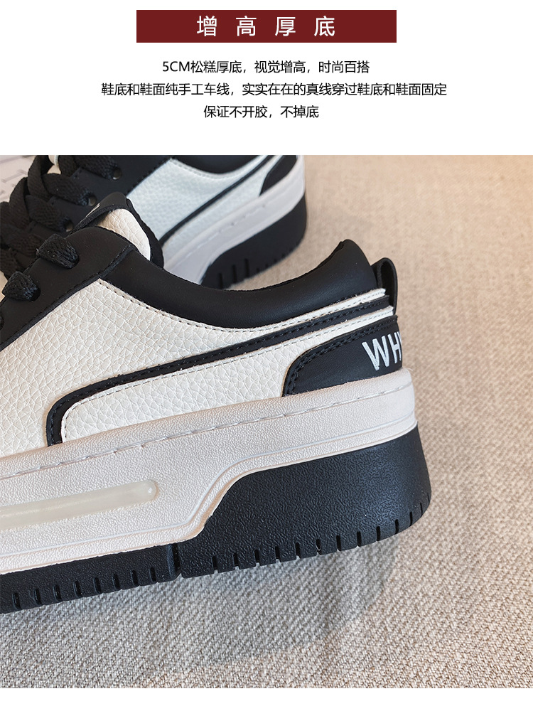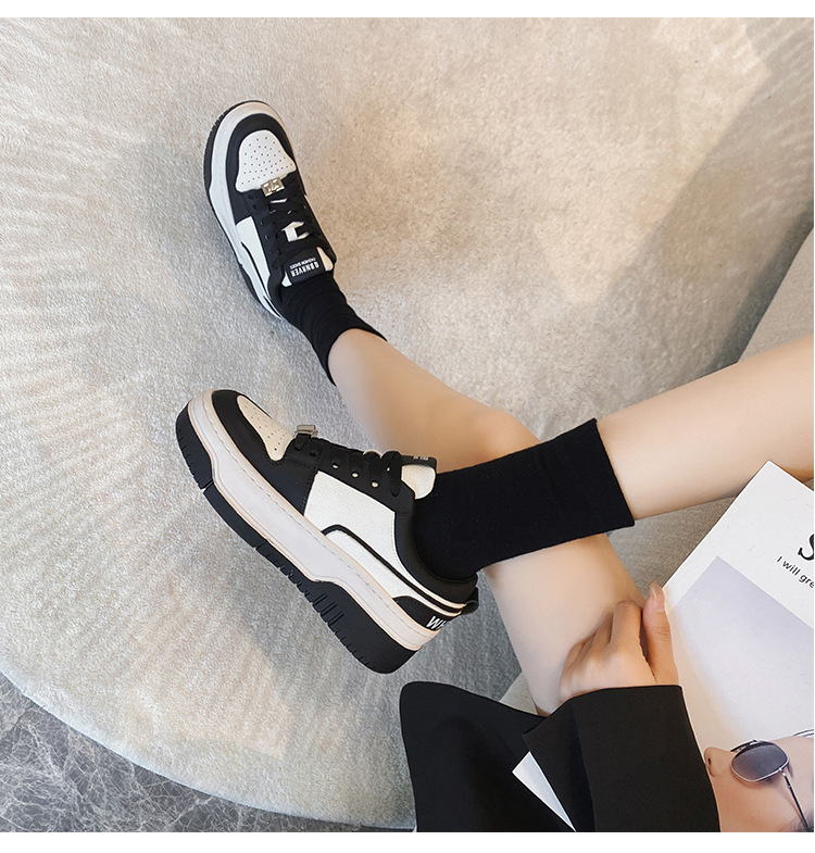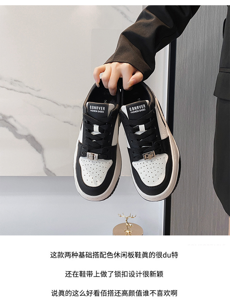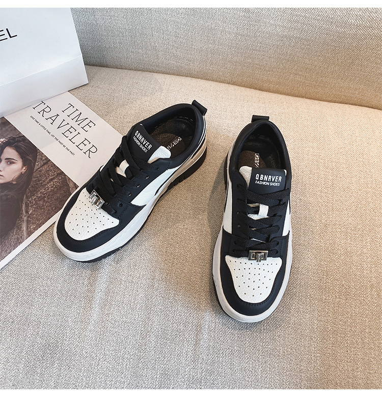 여성을위한 정품 가죽 두꺼운 밑창 흰색 신발 2023 새로운 올 매치 흑백 운동화 높이 증가 팬더 보드 신발 스몰 사이즈 3334스토어 가기