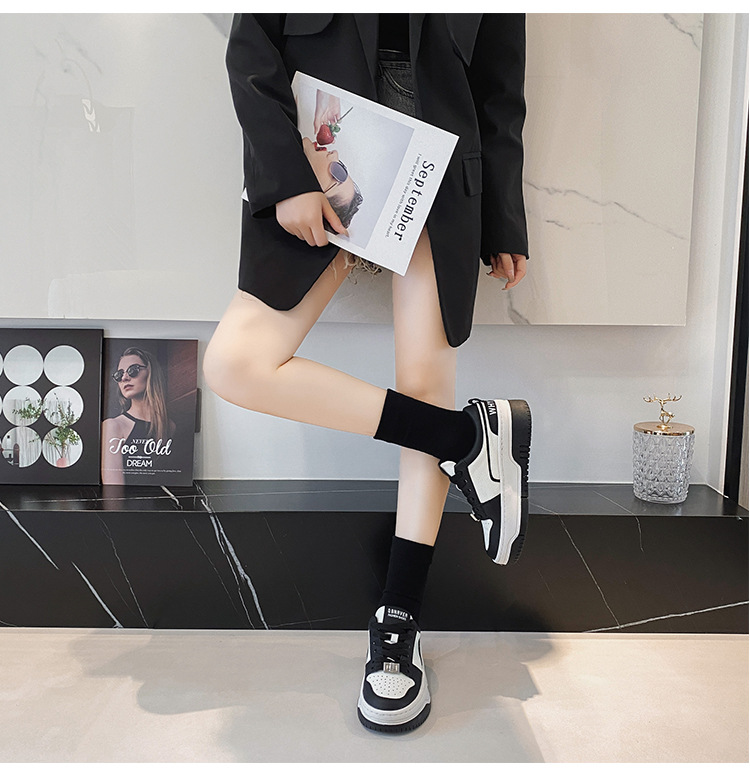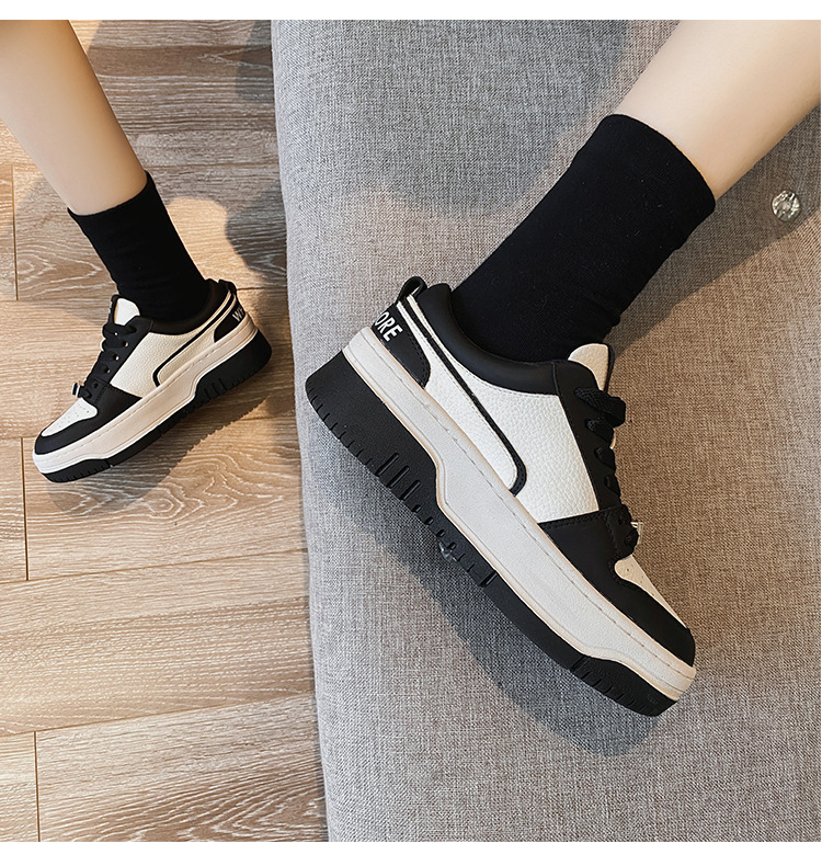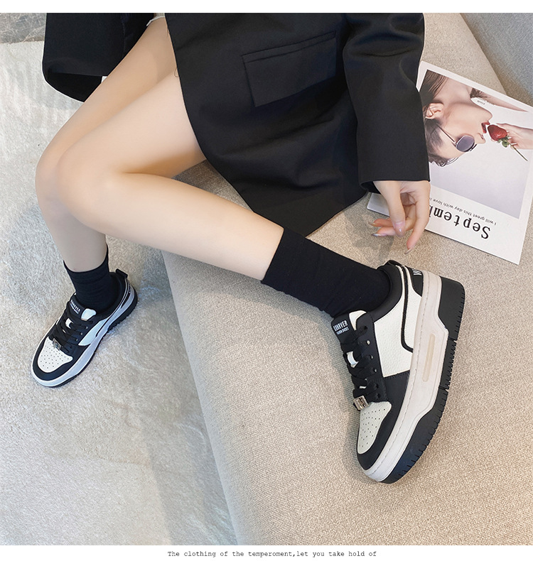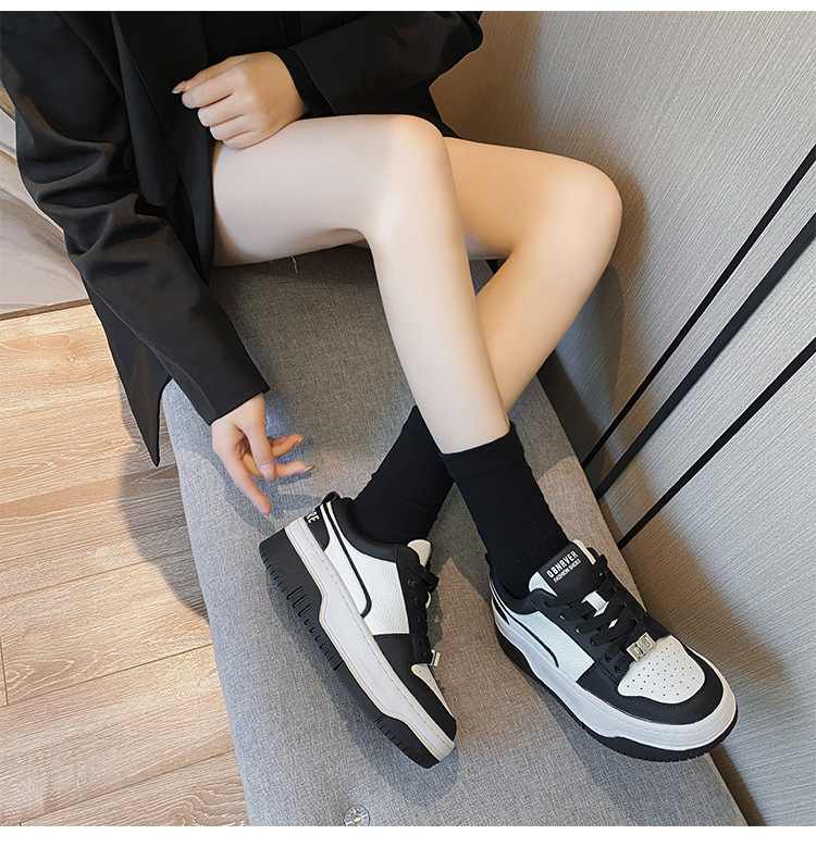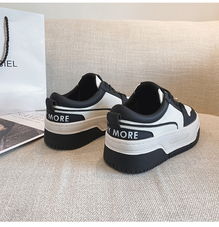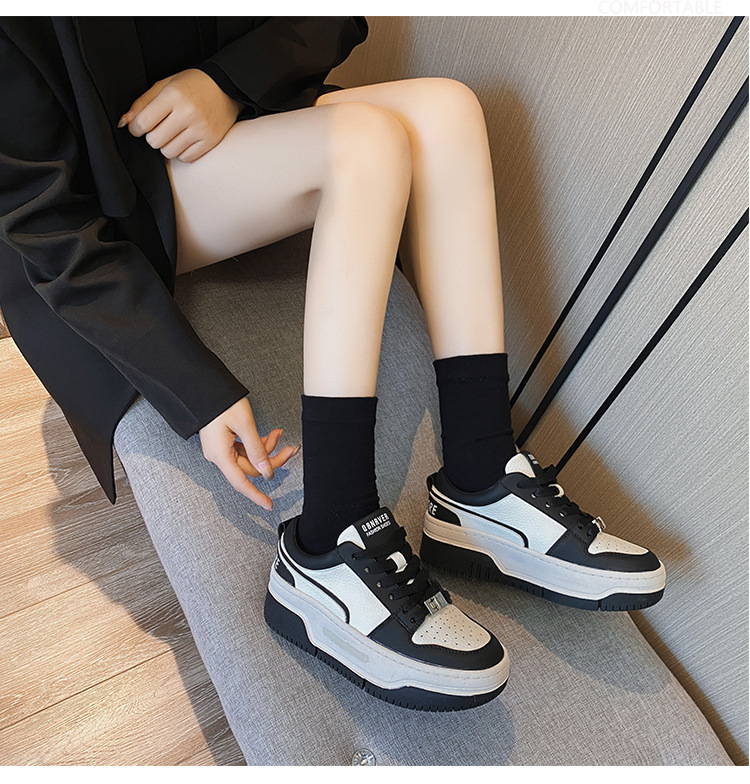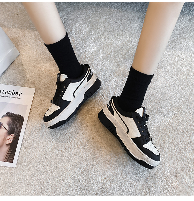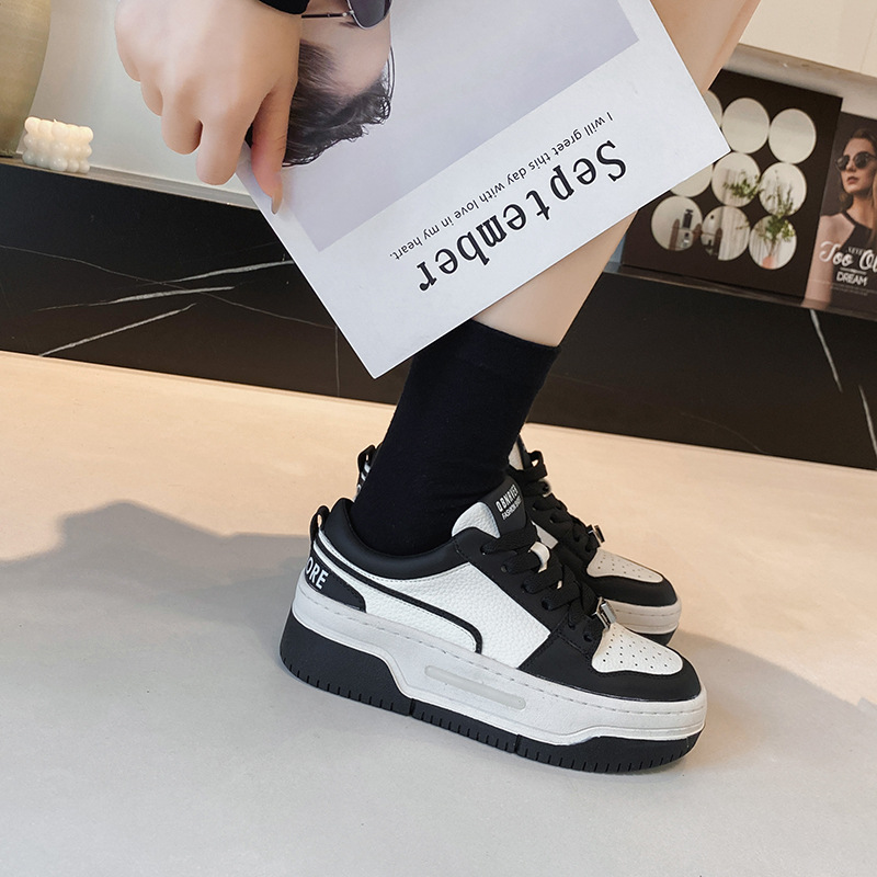 여성을위한 정품 가죽 두꺼운 밑창 흰색 신발 2023 새로운 올 매치 흑백 운동화 높이 증가 팬더 보드 신발 스몰 사이즈 3334