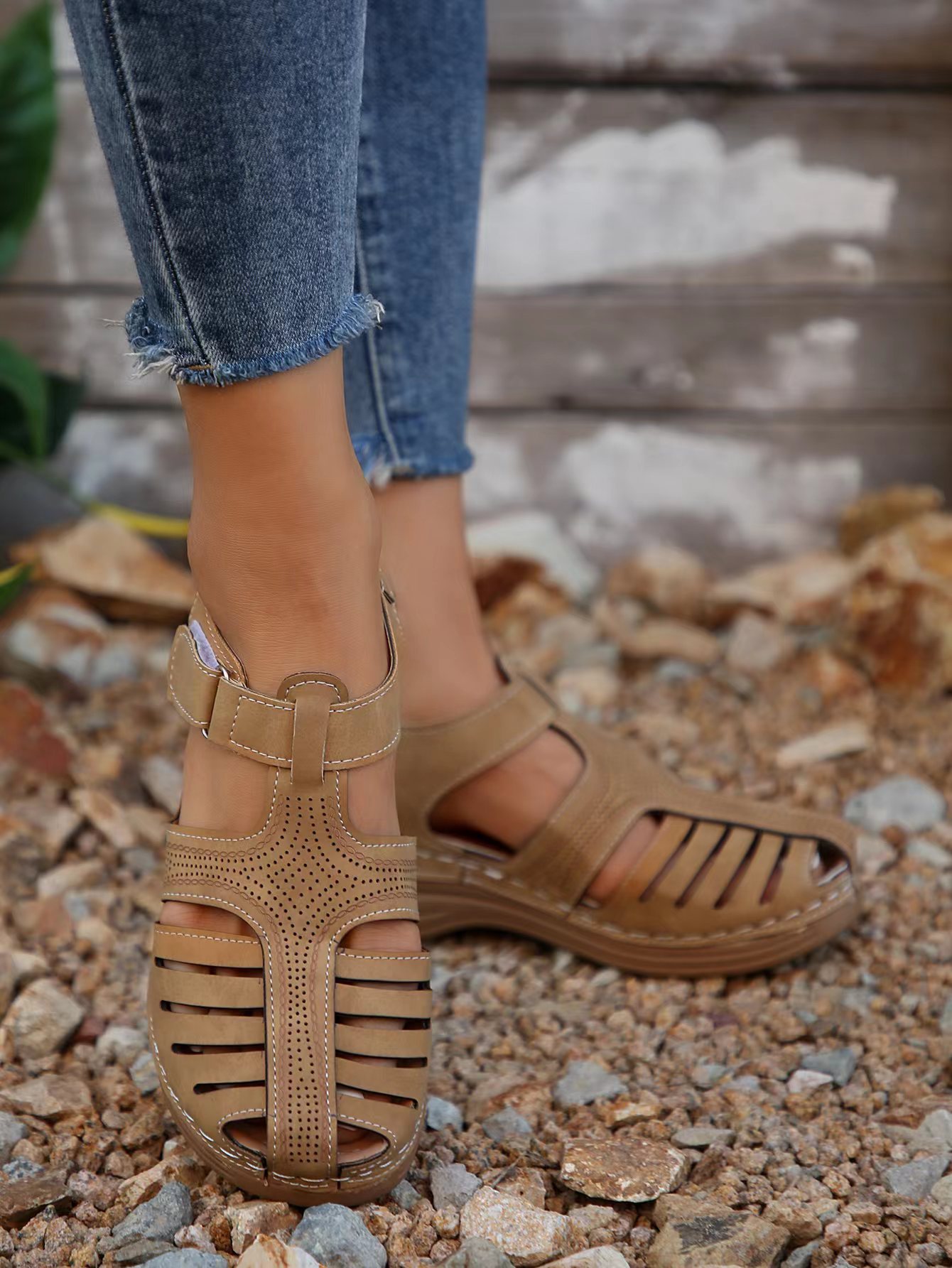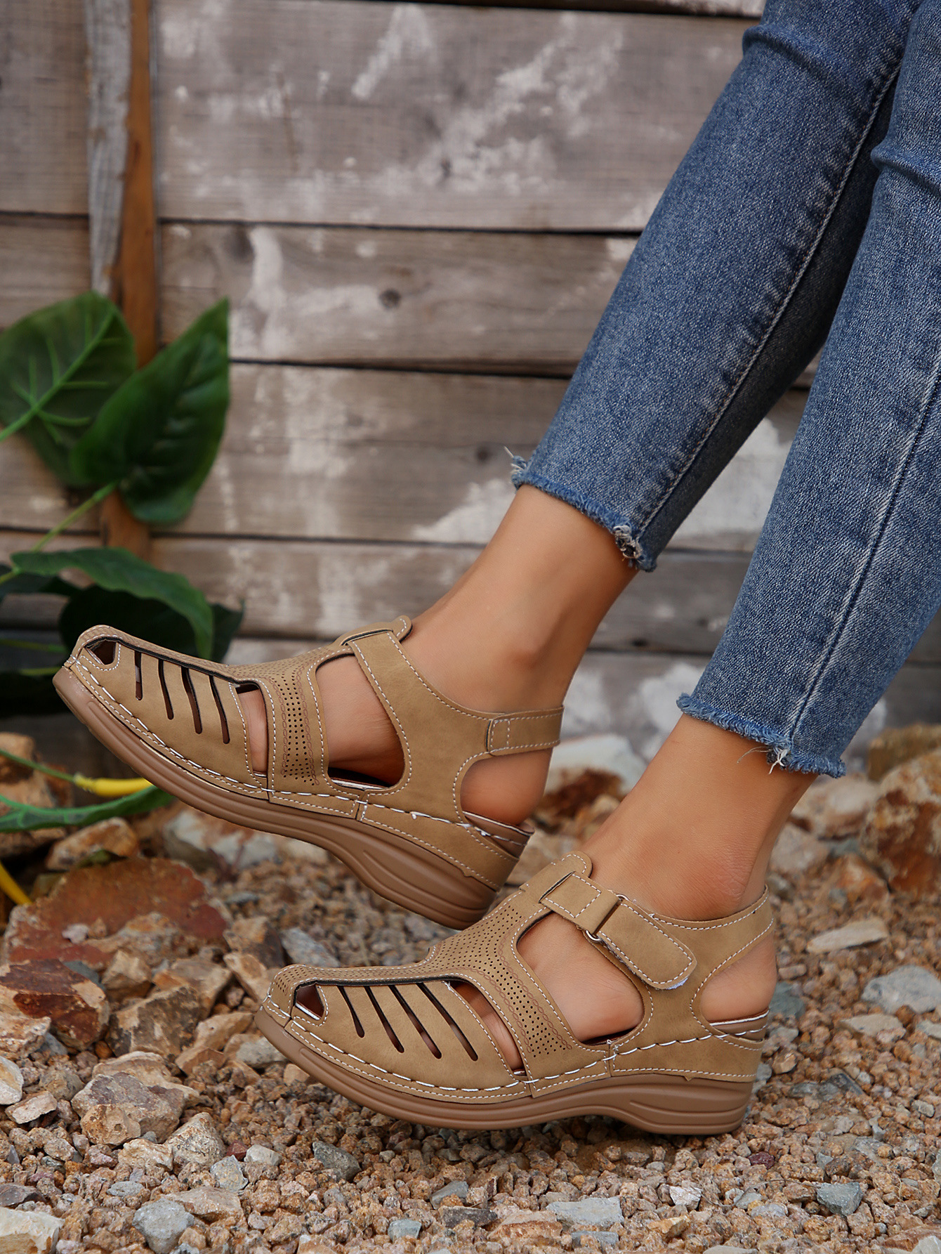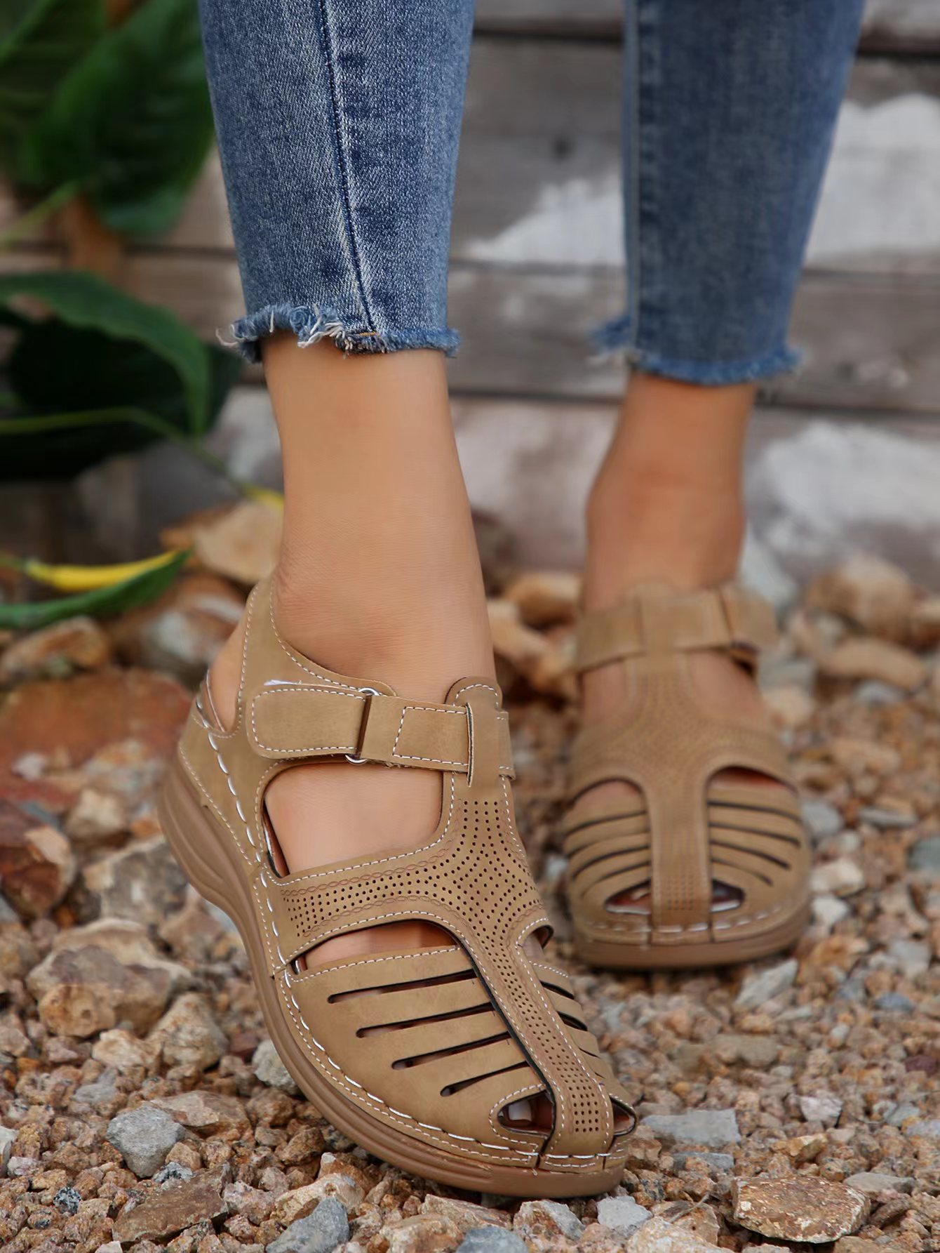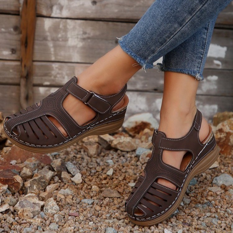 국경 간 새로운 여름 여성 웨지 샌들 대외 무역 플러스 사이즈 문어 비치 샌들 벨크로 웨지 샌들스토어 가기