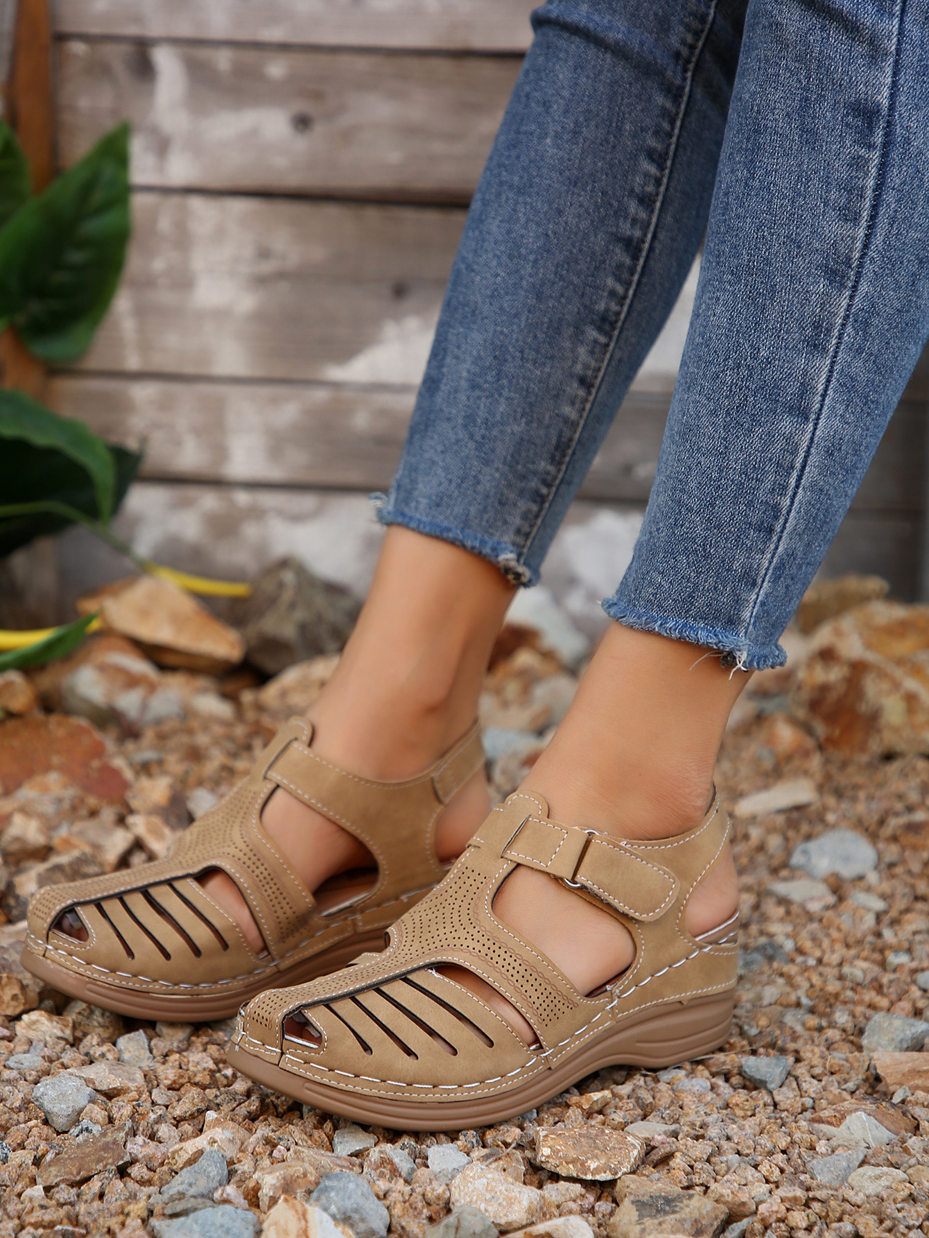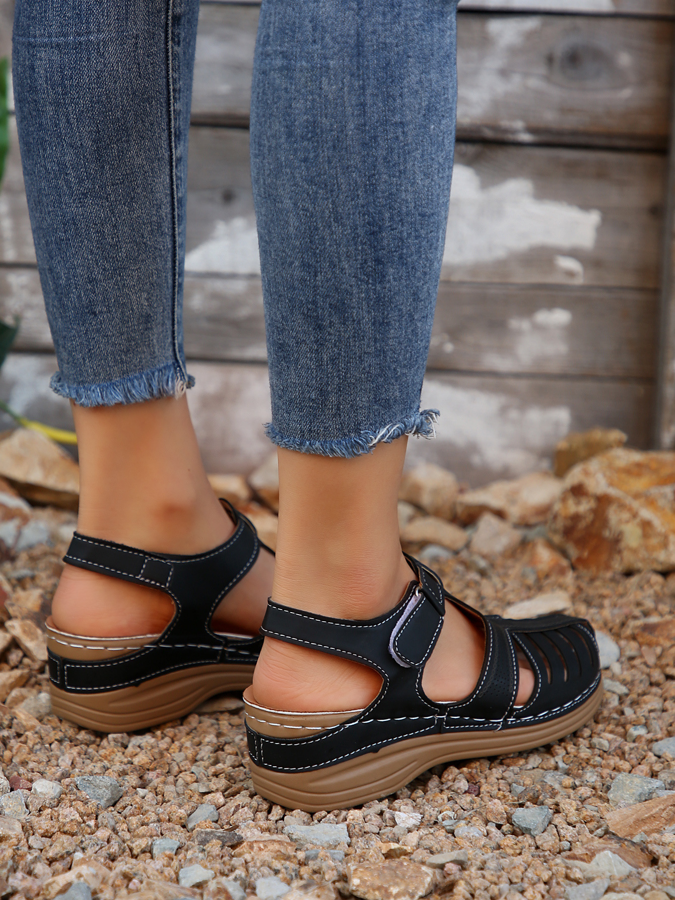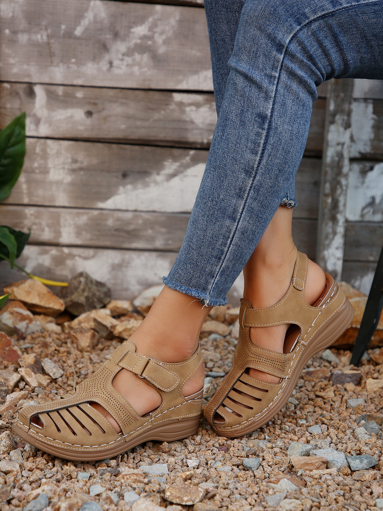 국경 간 새로운 여름 여성 웨지 샌들 대외 무역 플러스 사이즈 문어 비치 샌들 벨크로 웨지 샌들스토어 가기