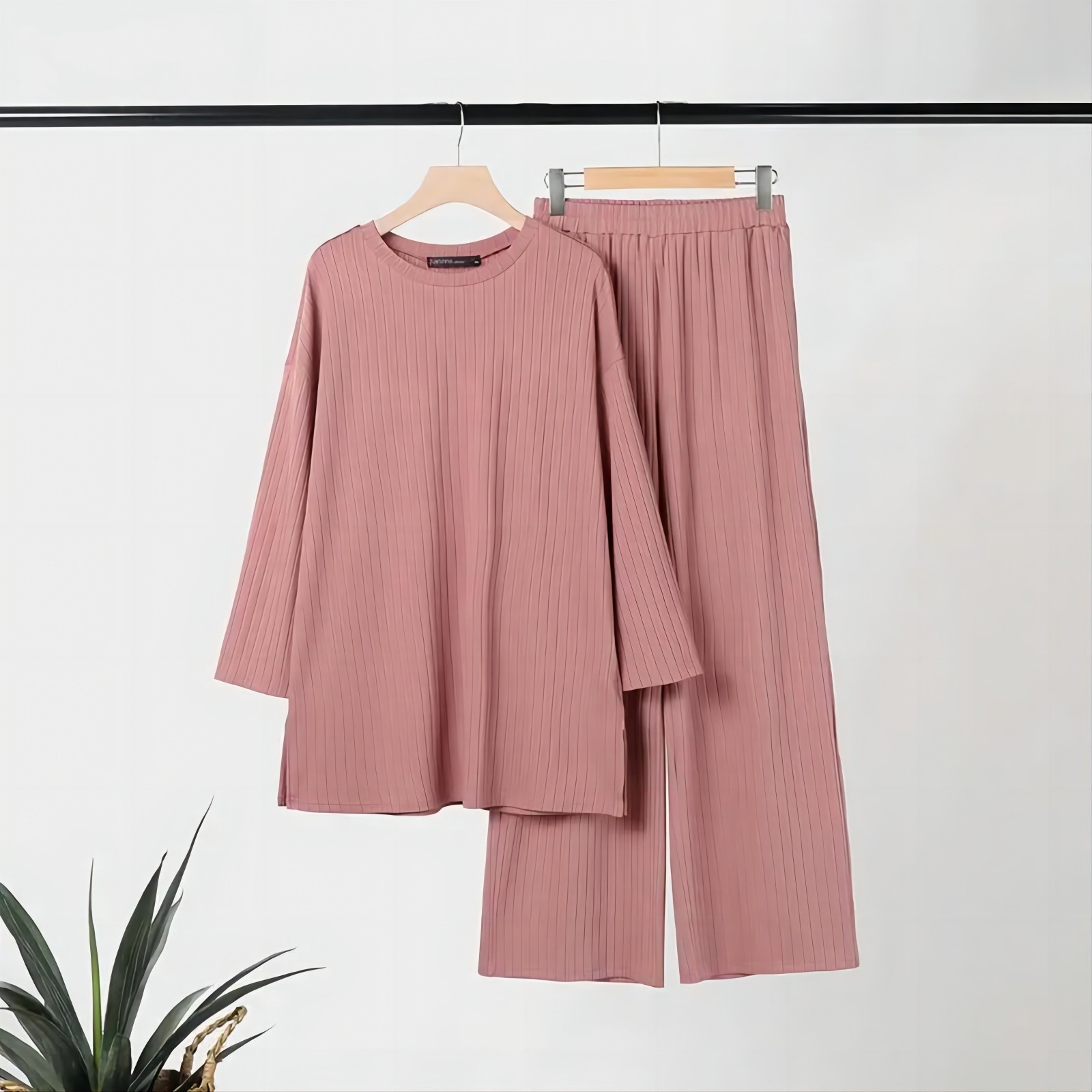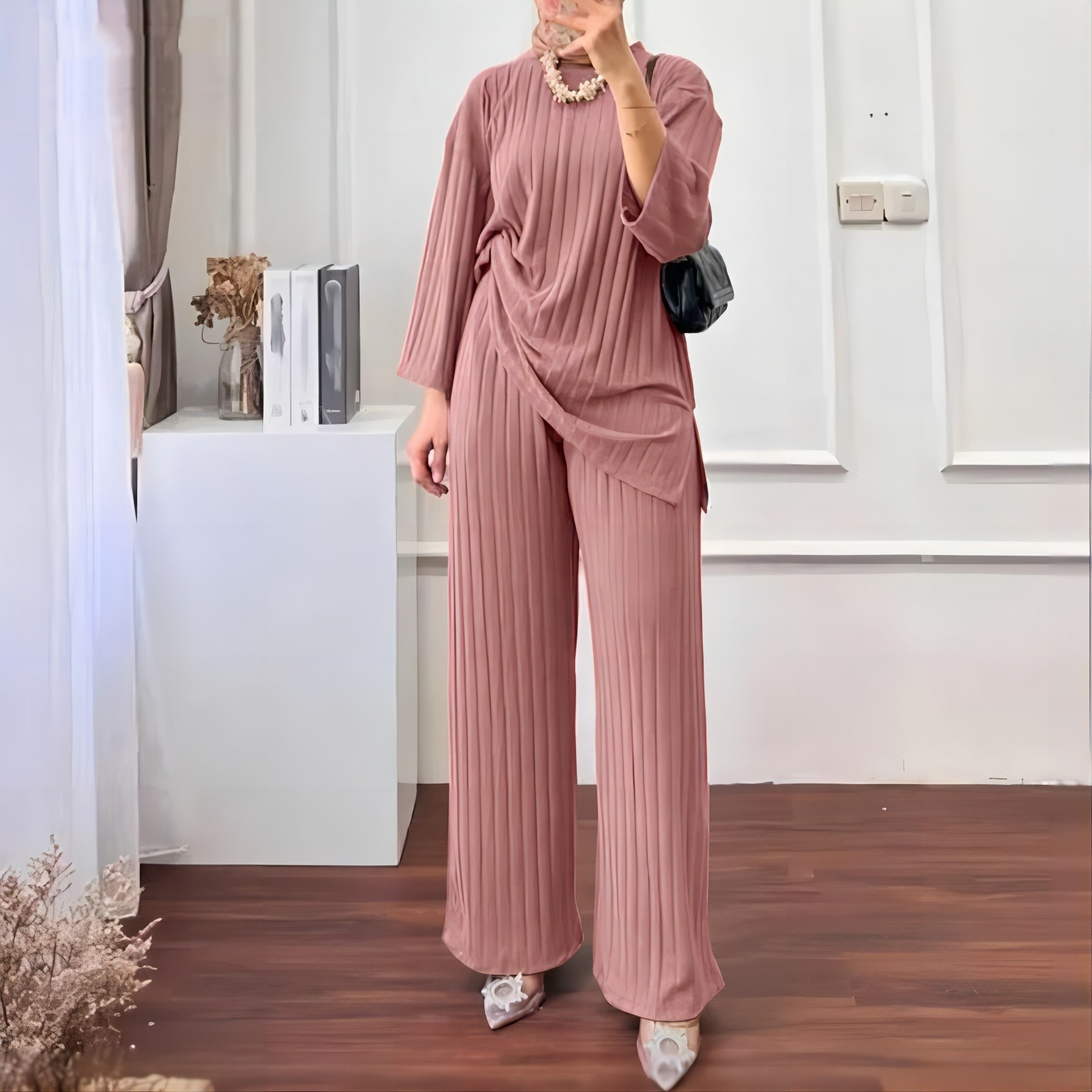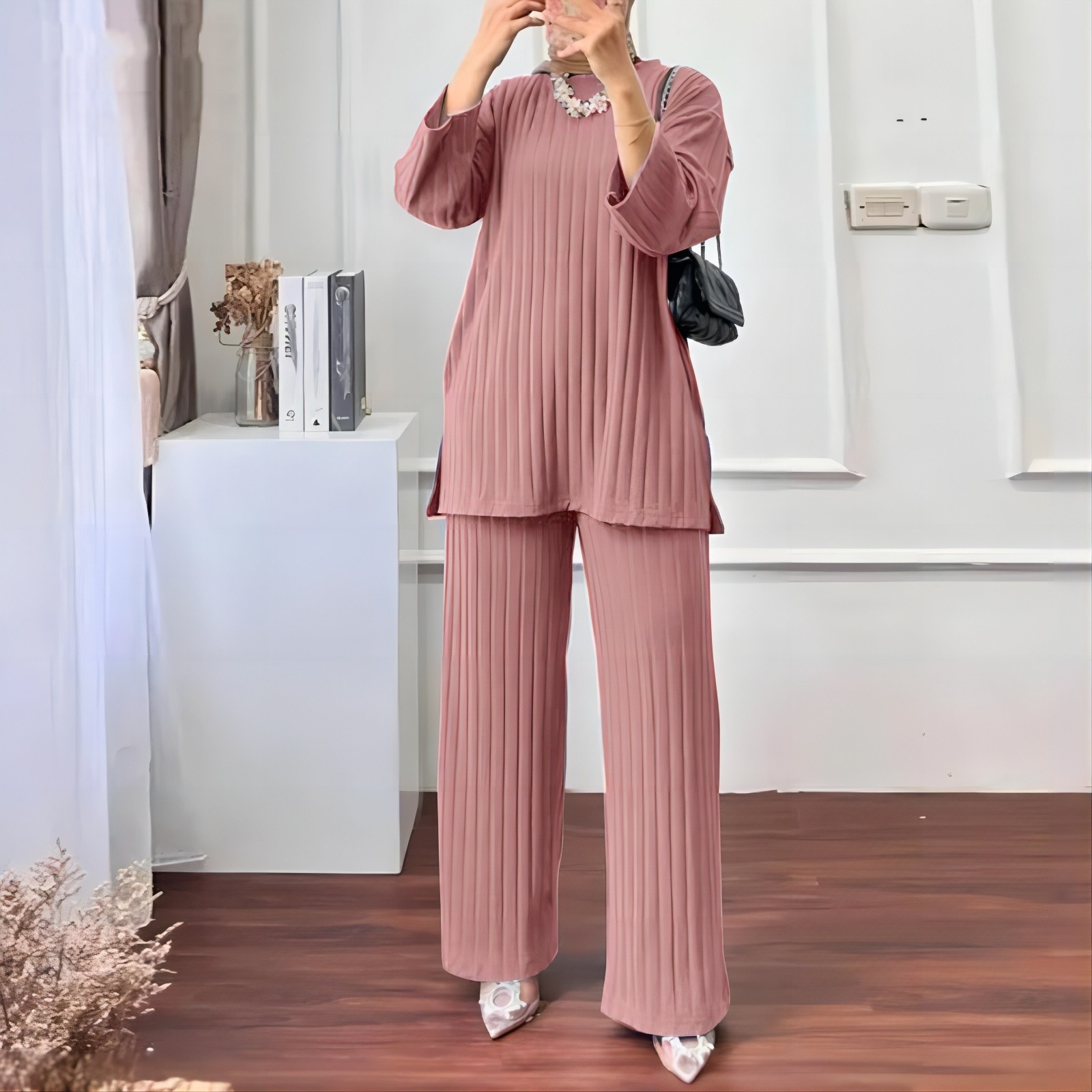 국경 간 2023 가을과 겨울 새로운 여성의 긴팔 탑 와이드 레그 팬츠 세트 단색 캐주얼 스포츠웨어 2 피스 세트