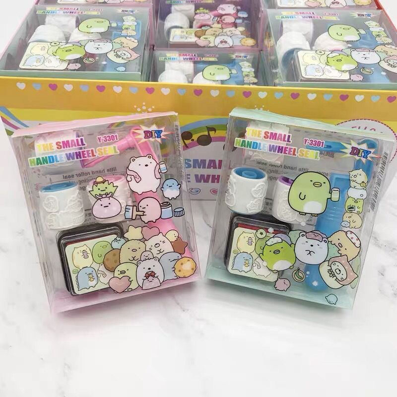 어린이 만화 롤러 스탬프 잉크 패드 세트 초등학교 어린이 유치원 작은 선물 스탬프 장난감 도매스토어 가기