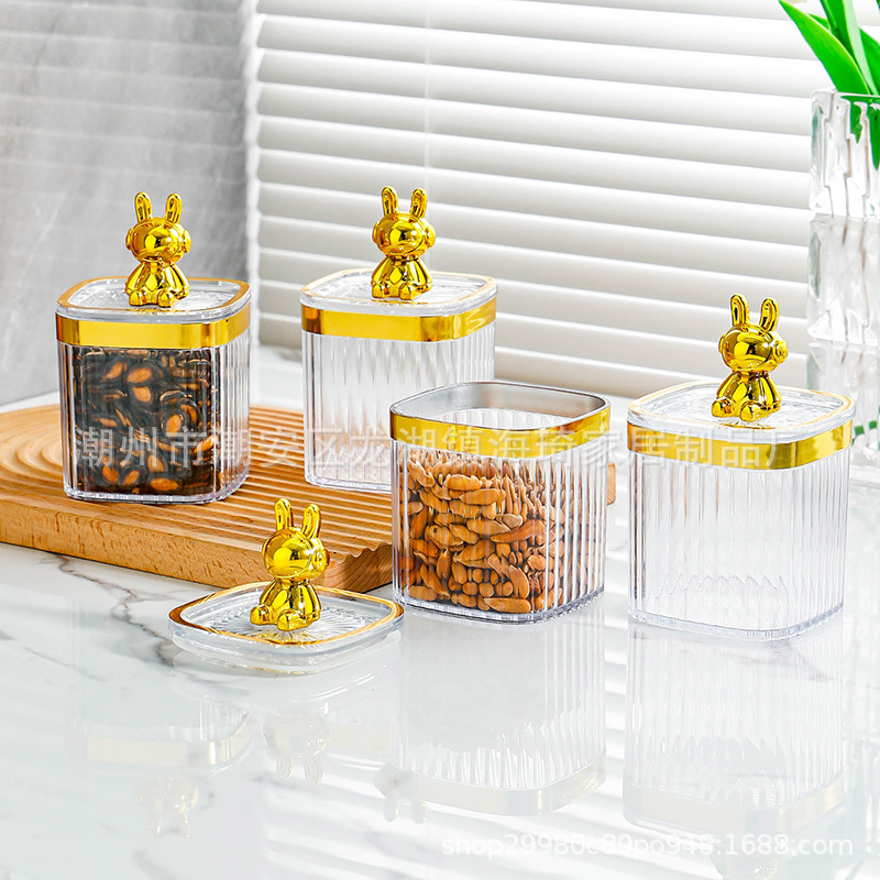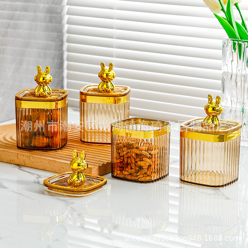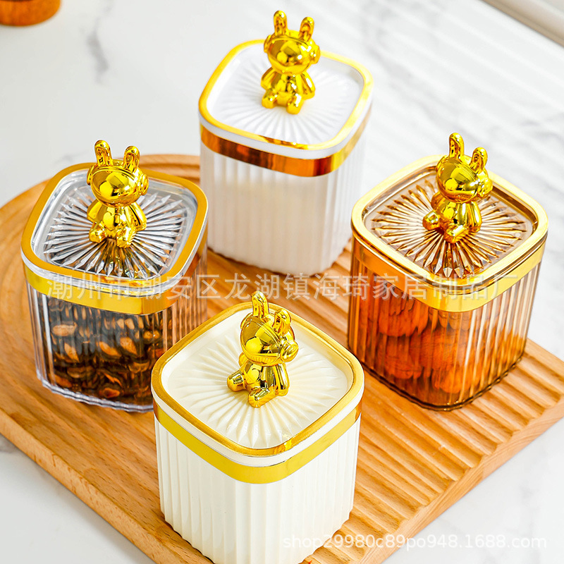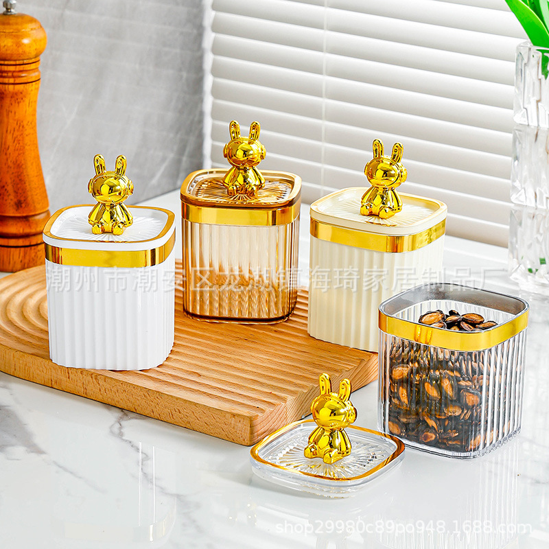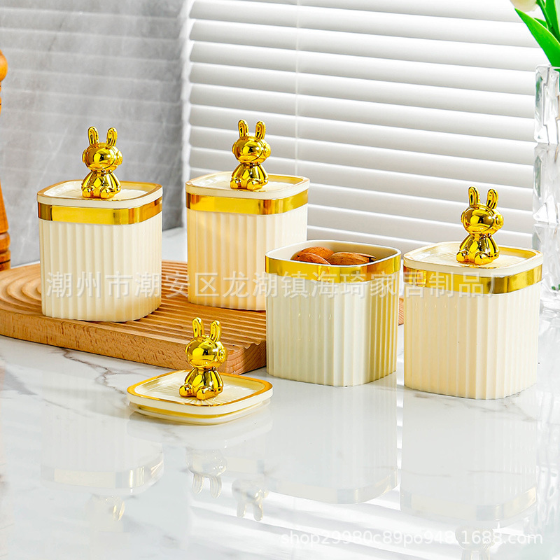 • 기계 토끼-베이지 색 사각형 코너 밀폐 된 항아리