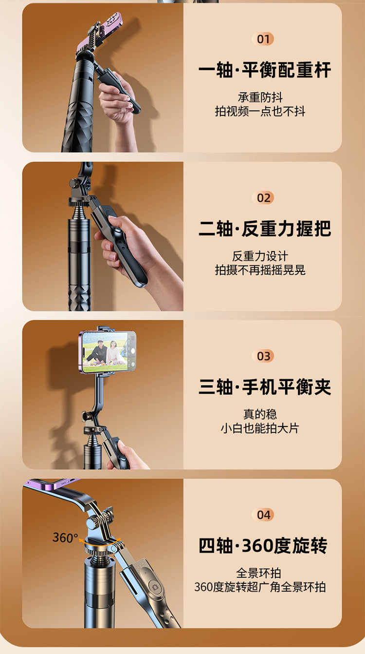 2025 새로운 휴대 전화 4 축 손떨림 방지 셀카 스틱 휴대용 블루투스 원격 제어 촬영 여행 휴대용 바닥 삼각대