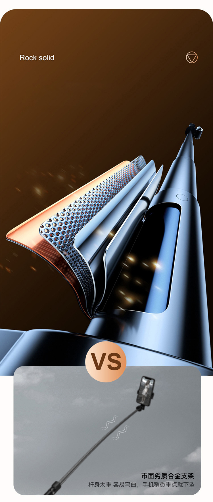 • 1.7 PTZ 광각 셀카 스틱 + 블루투스 원격 제어 + 삼각대