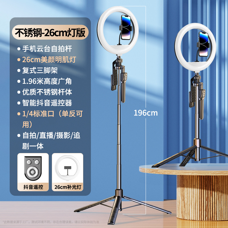 • 1.7 PTZ 광각 셀카 스틱 + TikTok 리모컨 + 26cm 채우기 빛 + 삼각대