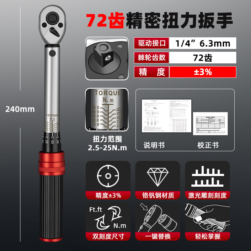 토크 토크 렌치 조정 가능한 빠른 토크 렌치 미리 설정된 kg 렌치 1/4 3/8 1/2 자전거 세트