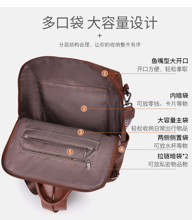 产品各内兜均使用加深设计,可随意放置平板电脑、图书等大件物品;
