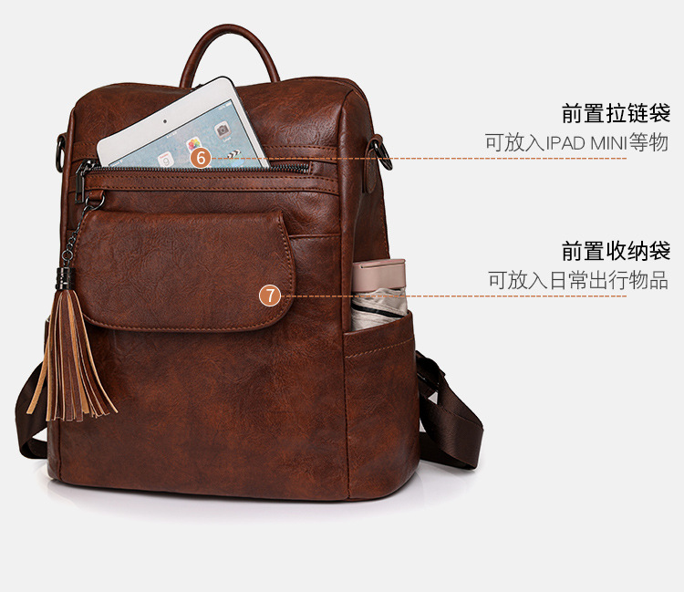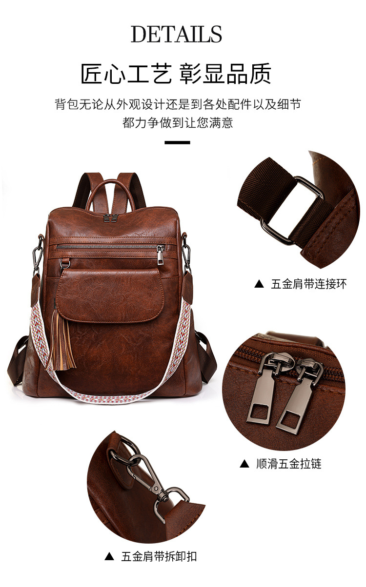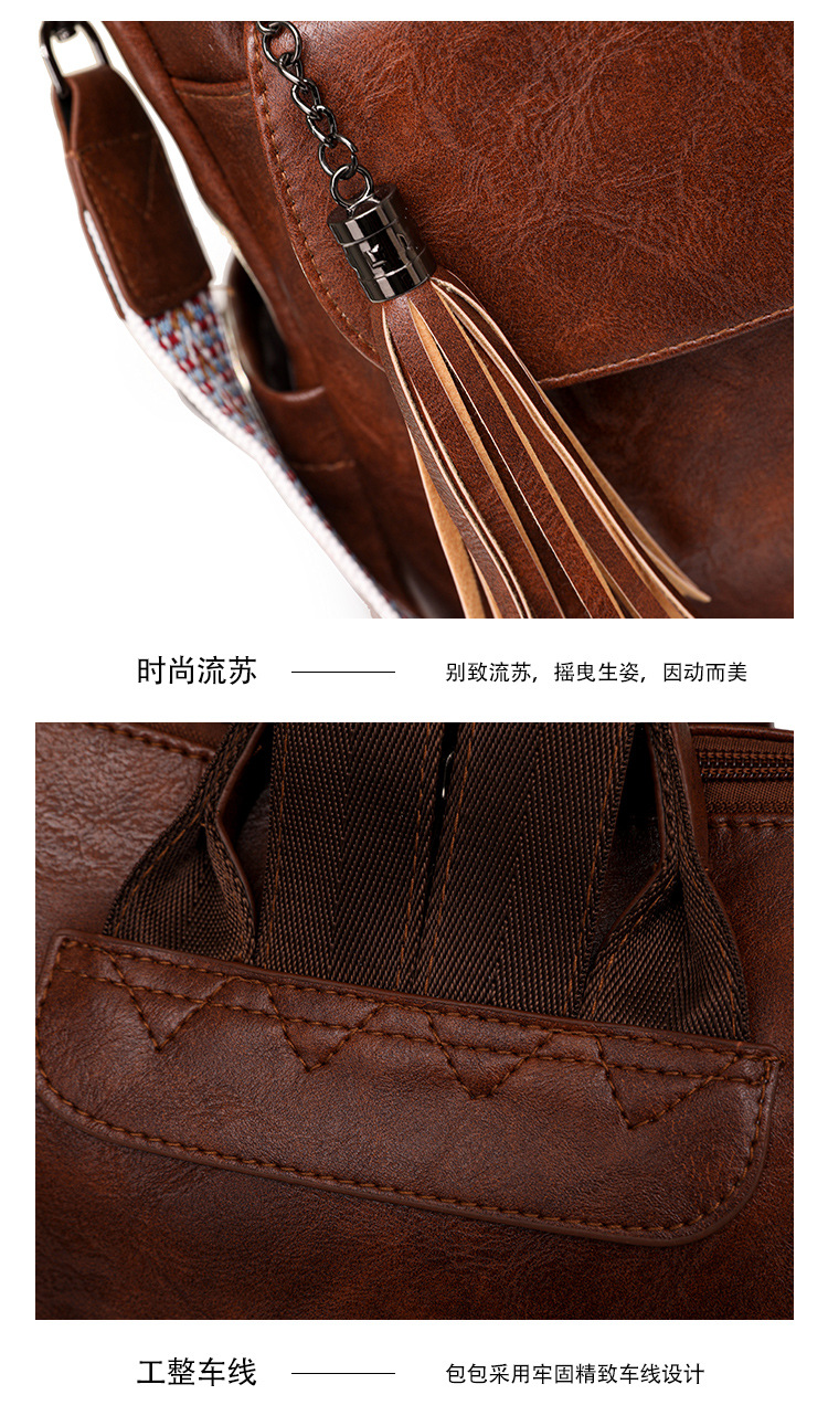 产品前侧有流苏悬挂位置,流苏彩用同主包原料色手工制作,加长设计;同时悬挂位可另外挂载其他配饰或是钥匙、零钱包等;