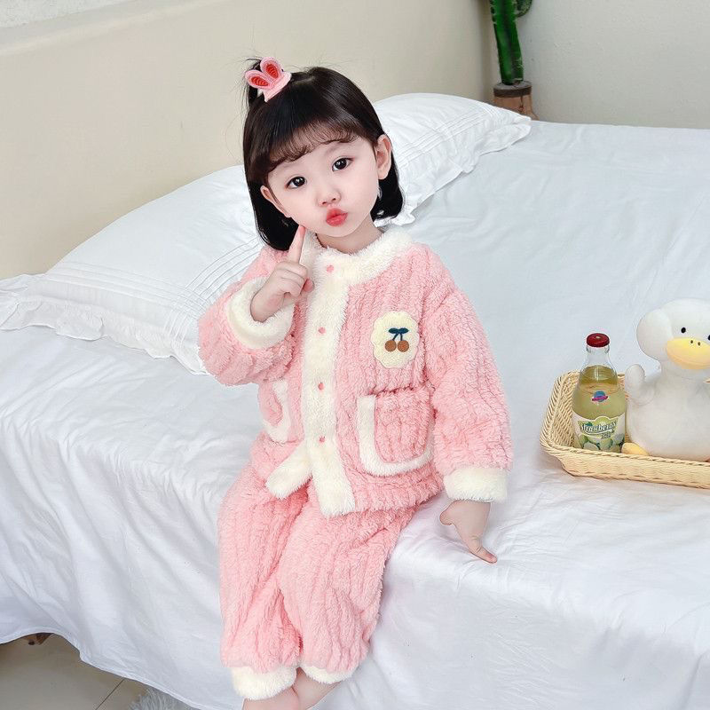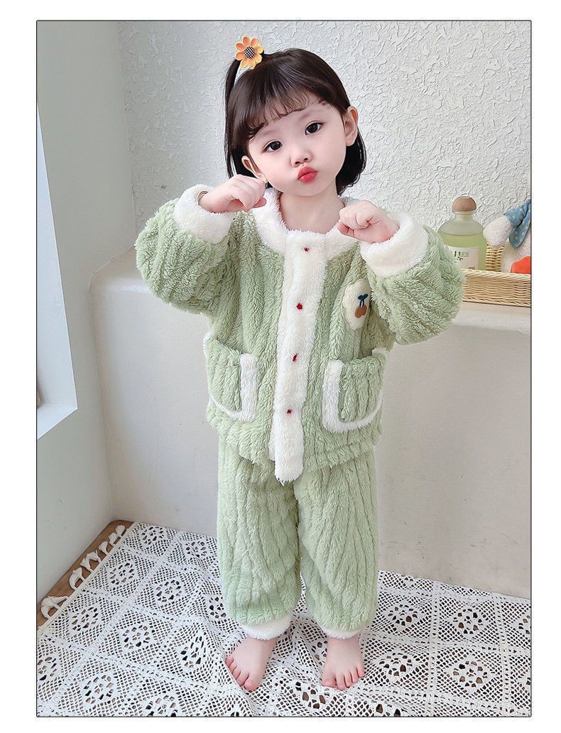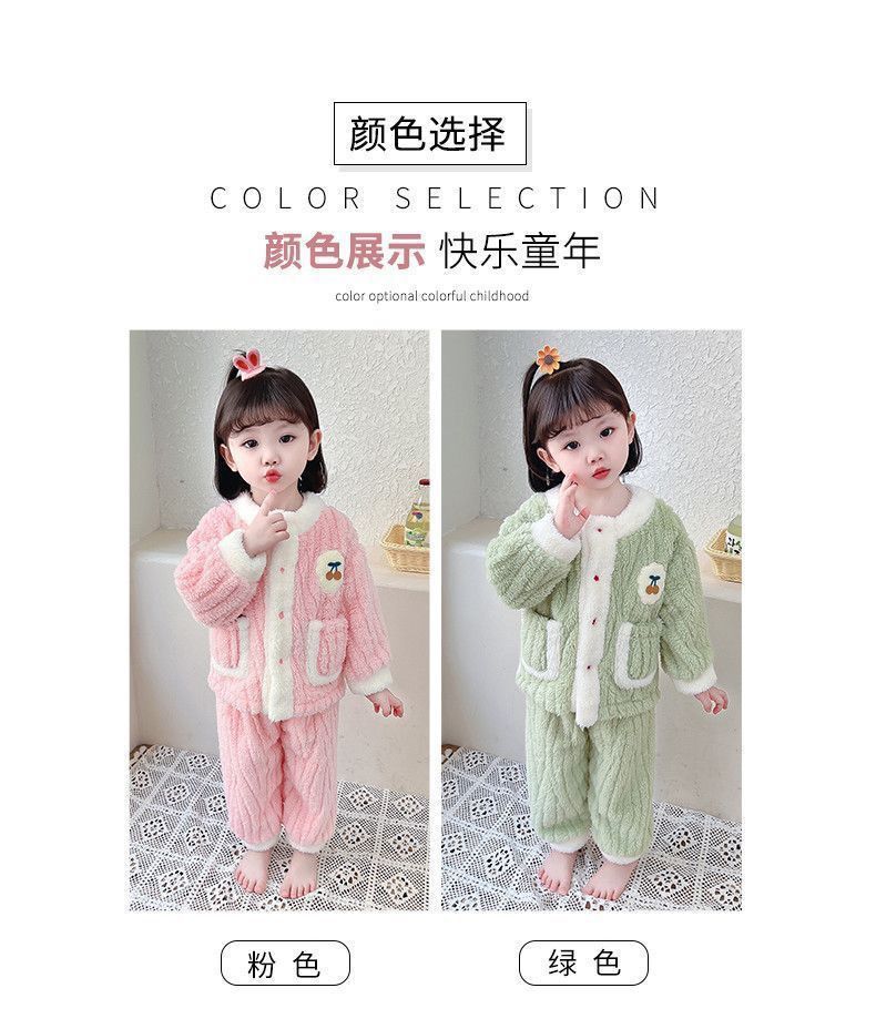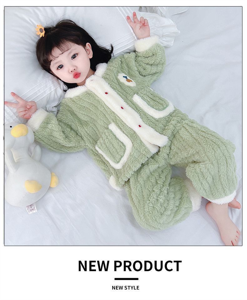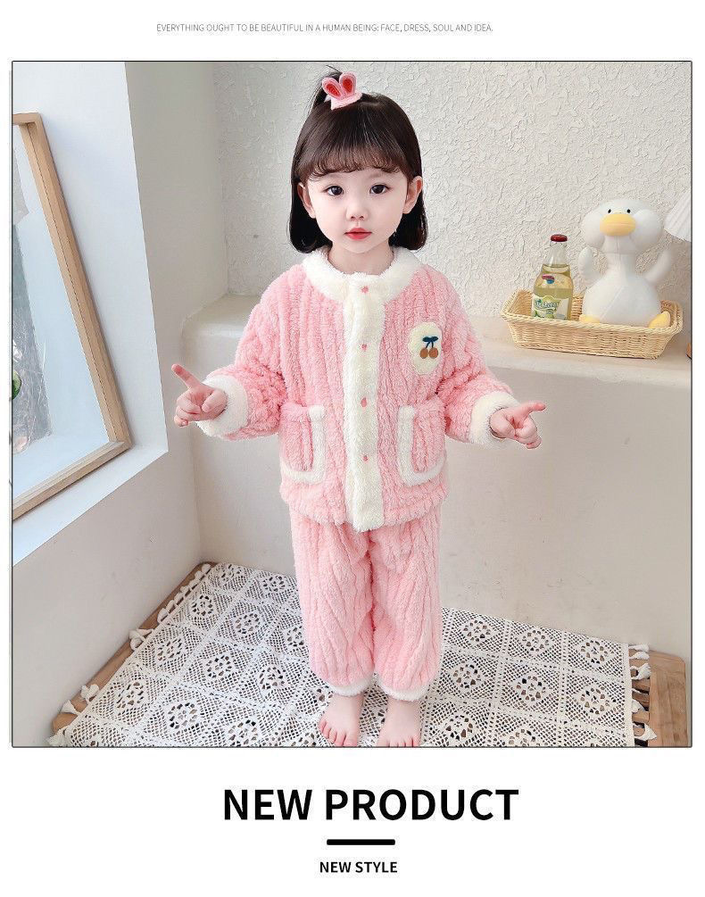 어린이 잠옷 플란넬 가을과 겨울 새로운 카디건 소녀 아기 만화 소녀 산호 양털 홈웨어 세트스토어 가기