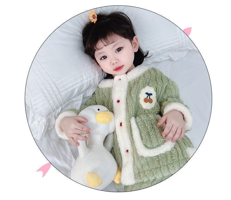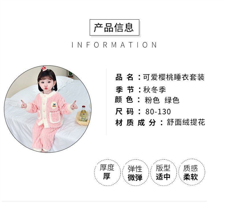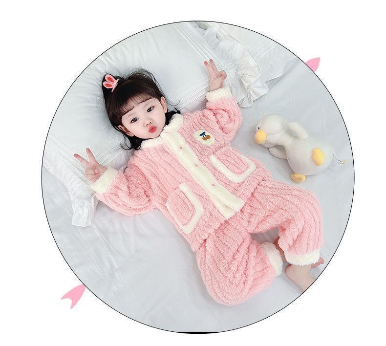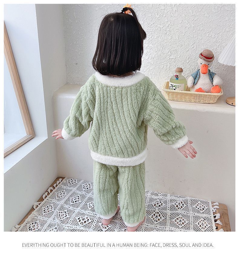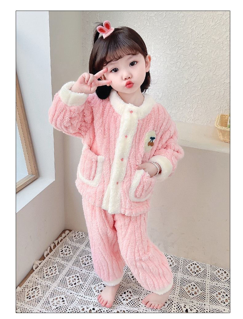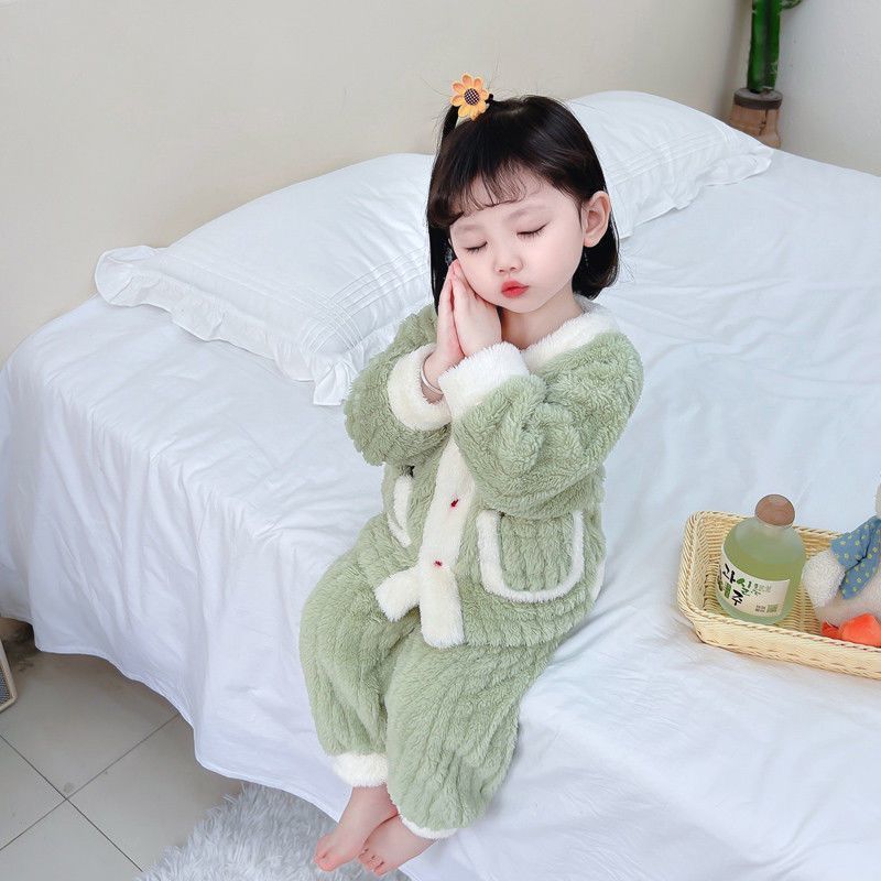 어린이 잠옷 플란넬 가을과 겨울 새로운 카디건 소녀 아기 만화 소녀 산호 양털 홈웨어 세트스토어 가기