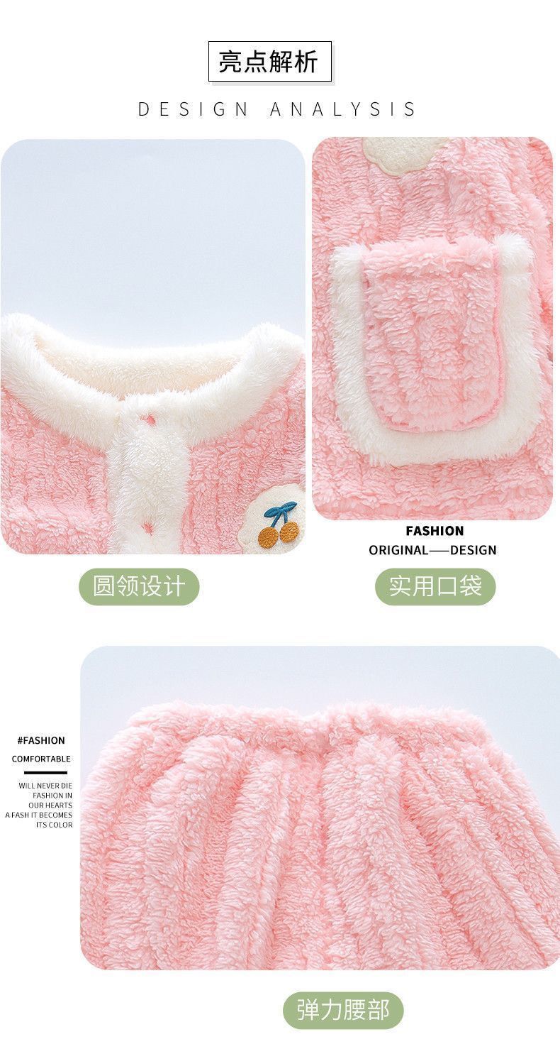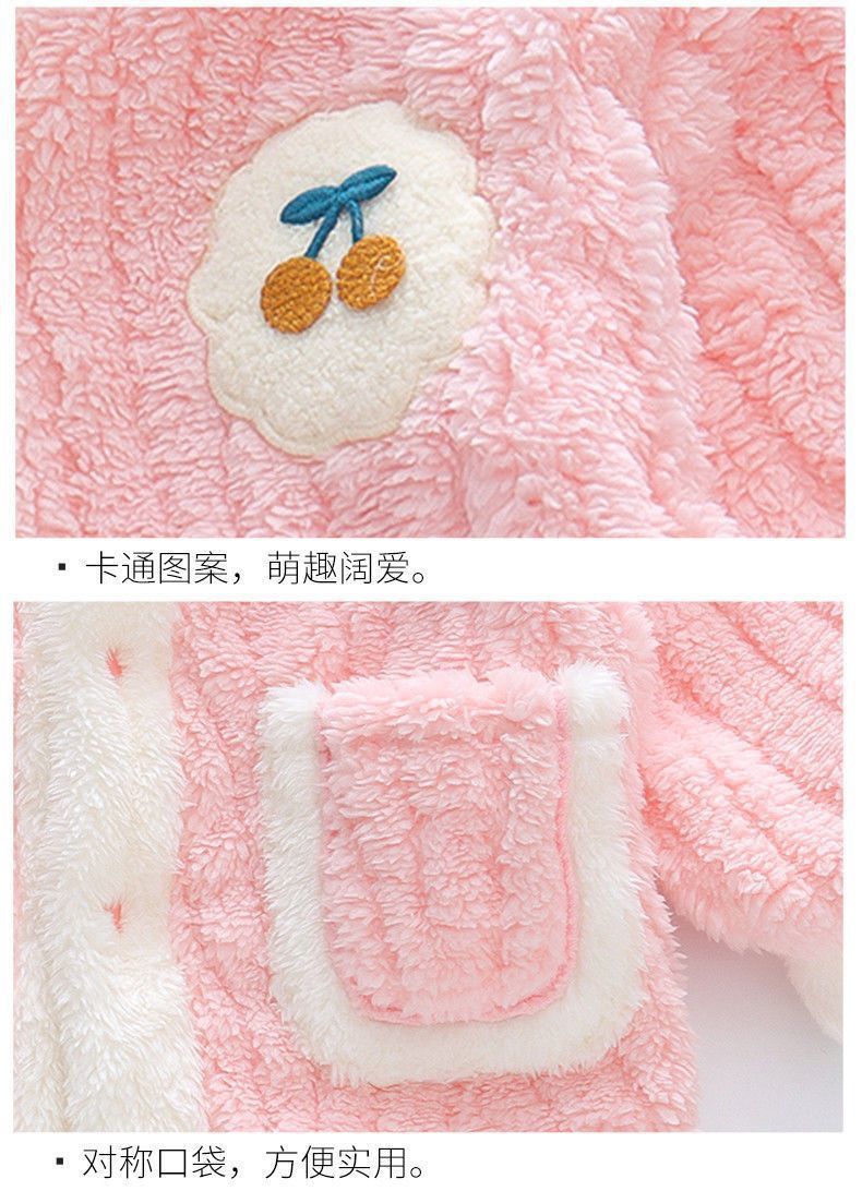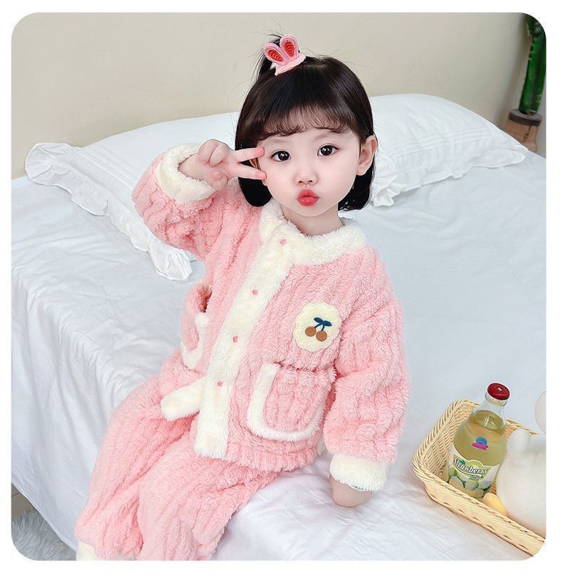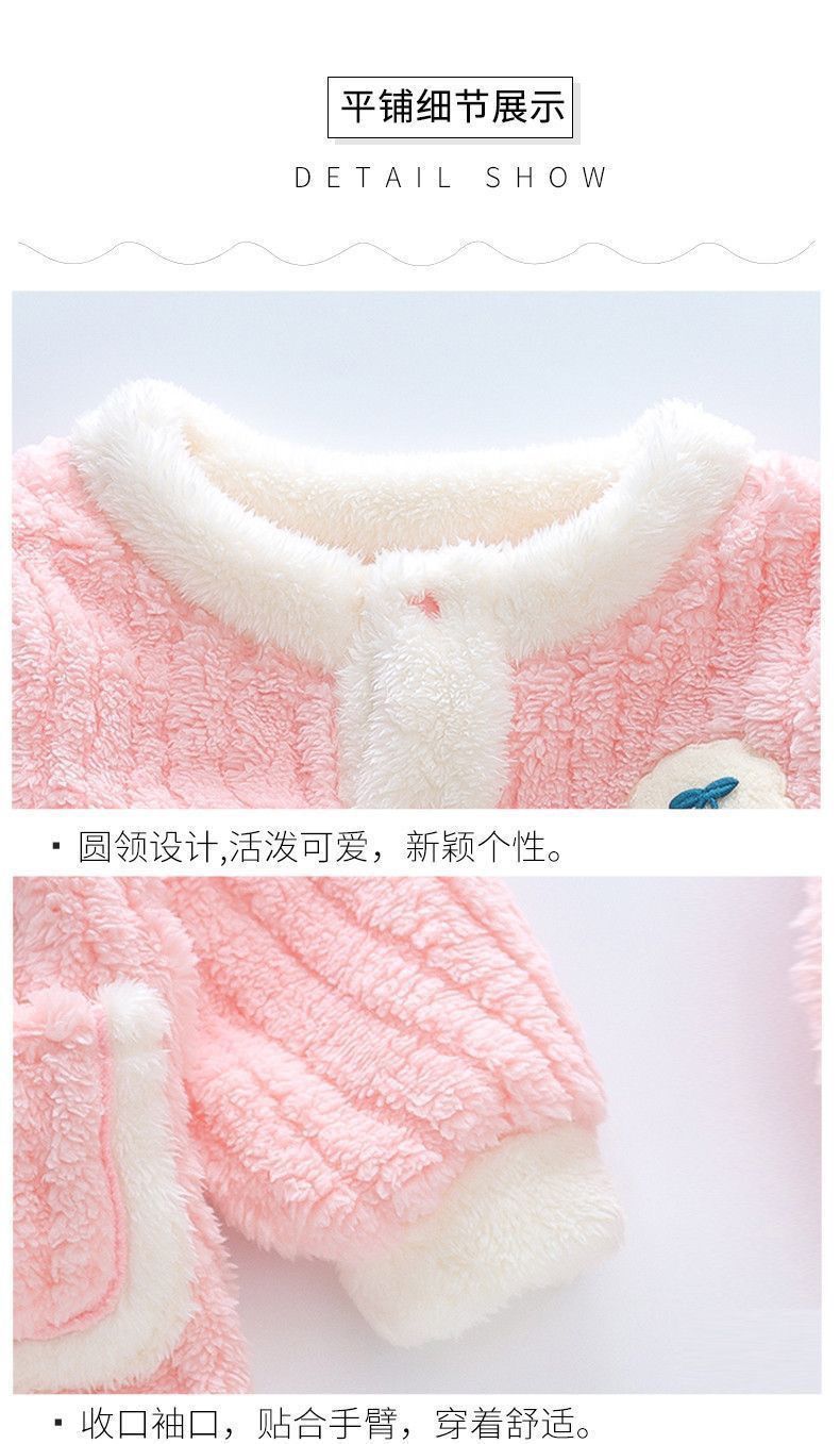 어린이 잠옷 플란넬 가을과 겨울 새로운 카디건 소녀 아기 만화 소녀 산호 양털 홈웨어 세트