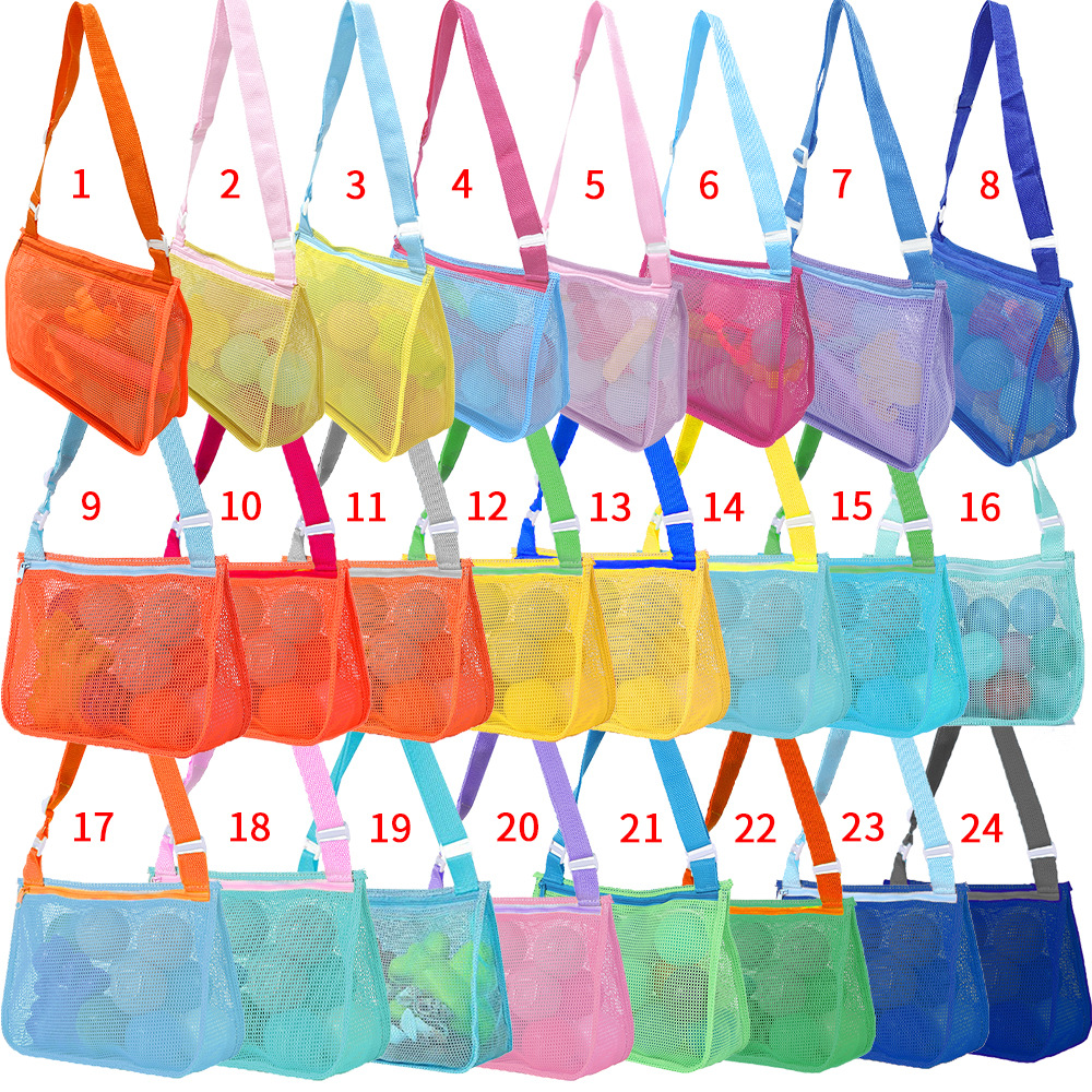 아마존 단색 어린이 그물 가방 해변 장난감 보관 가방 모래 파는 도구 잡화 그리드 보관 가방 로고스토어 가기