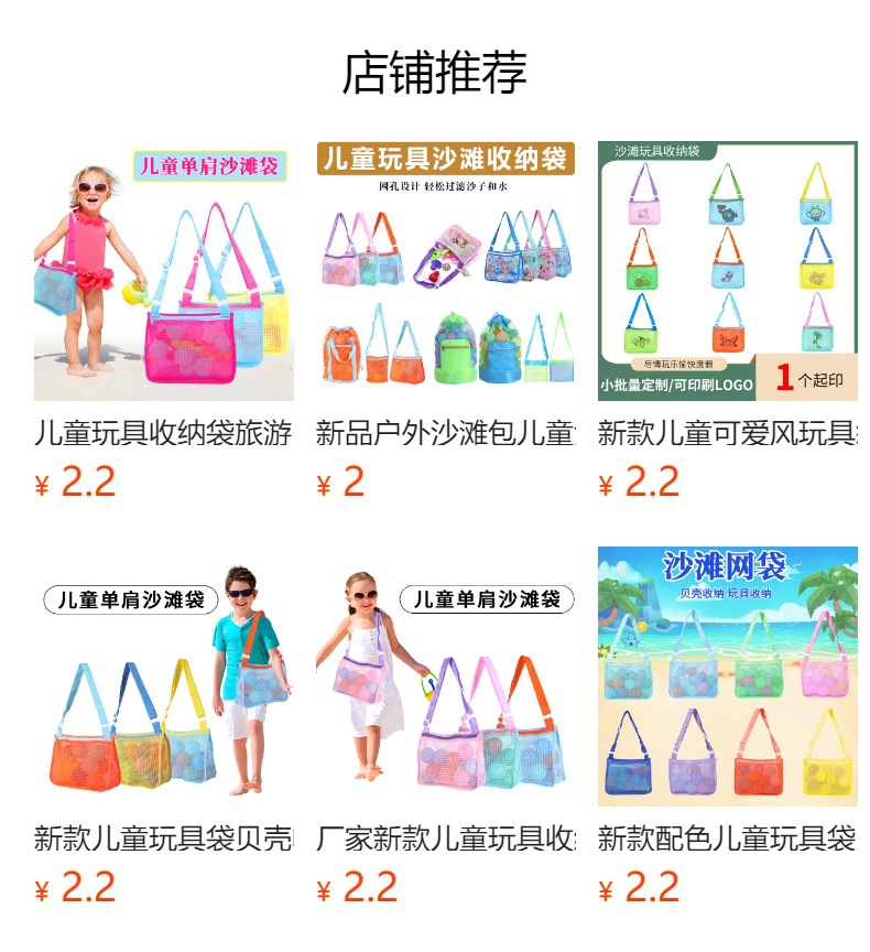 아마존 단색 어린이 그물 가방 해변 장난감 보관 가방 모래 파는 도구 잡화 그리드 보관 가방 로고
