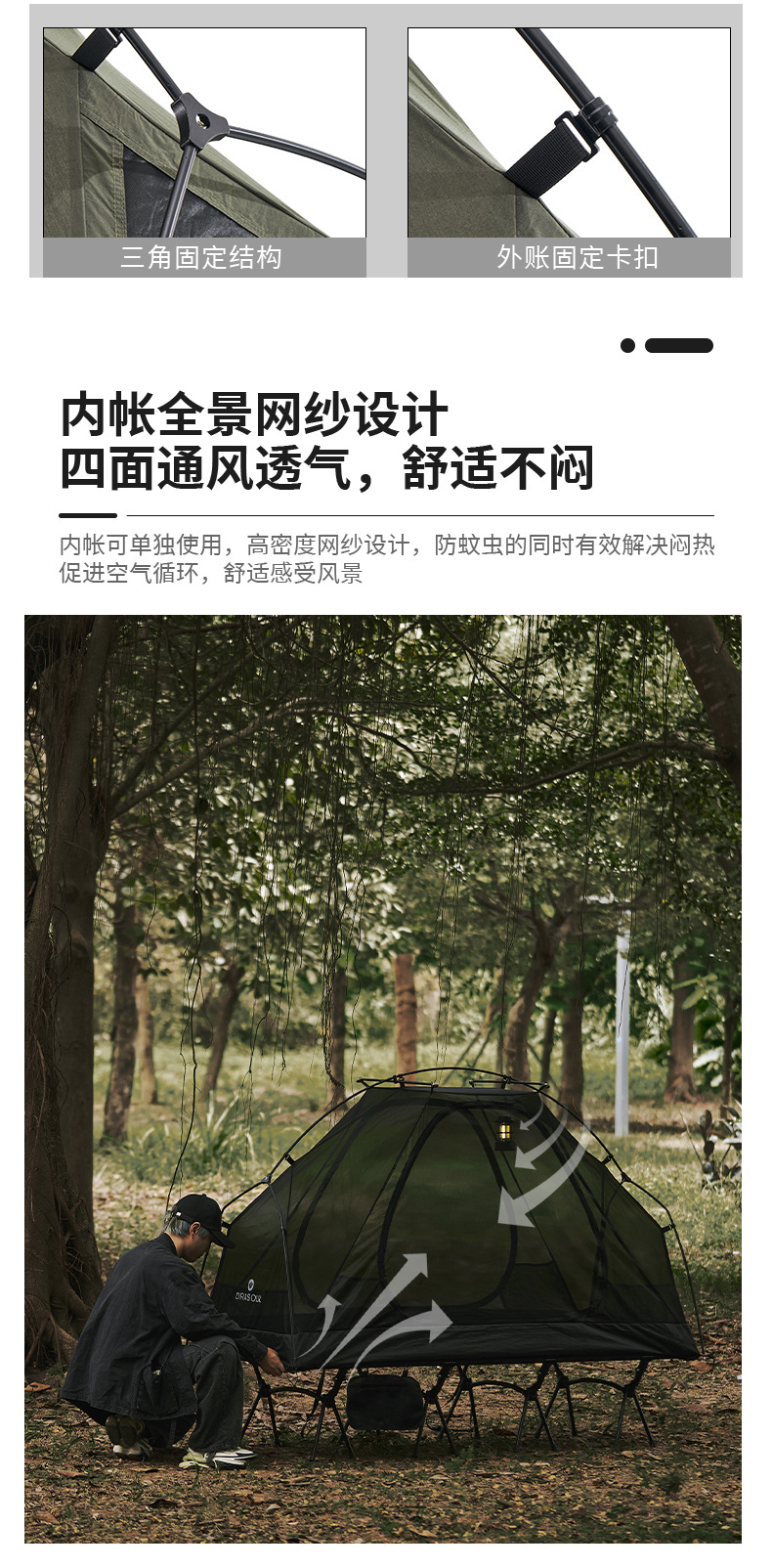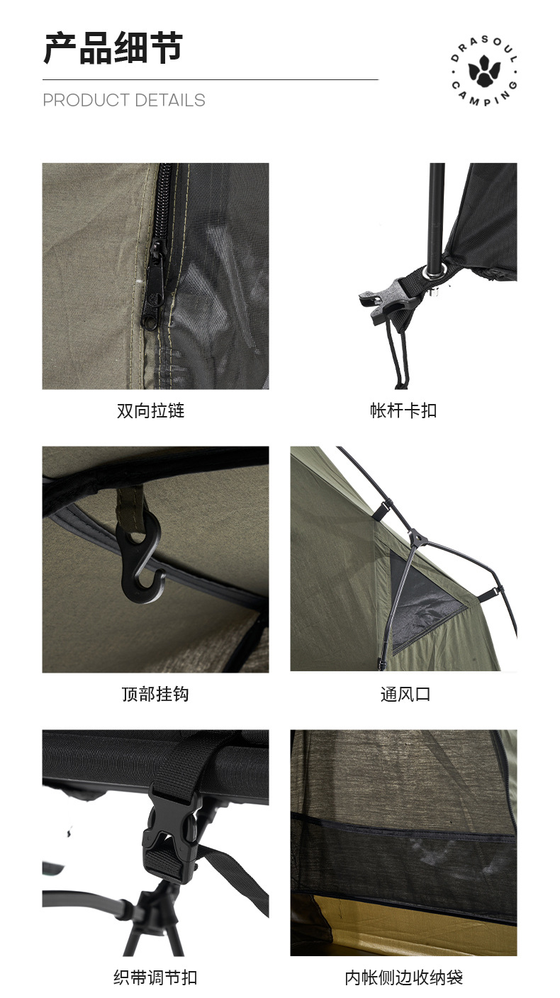 DRASOUL 싱글 스타 모션 오프 그라운드 캠프 침대 텐트 하이킹 코튼 텐트 경량 휴대용 야외 캠핑 텐트