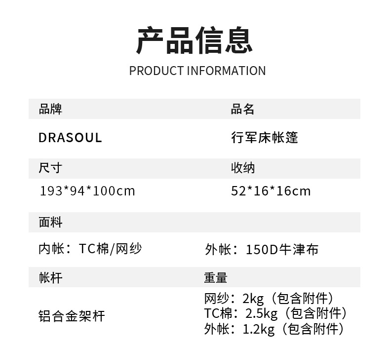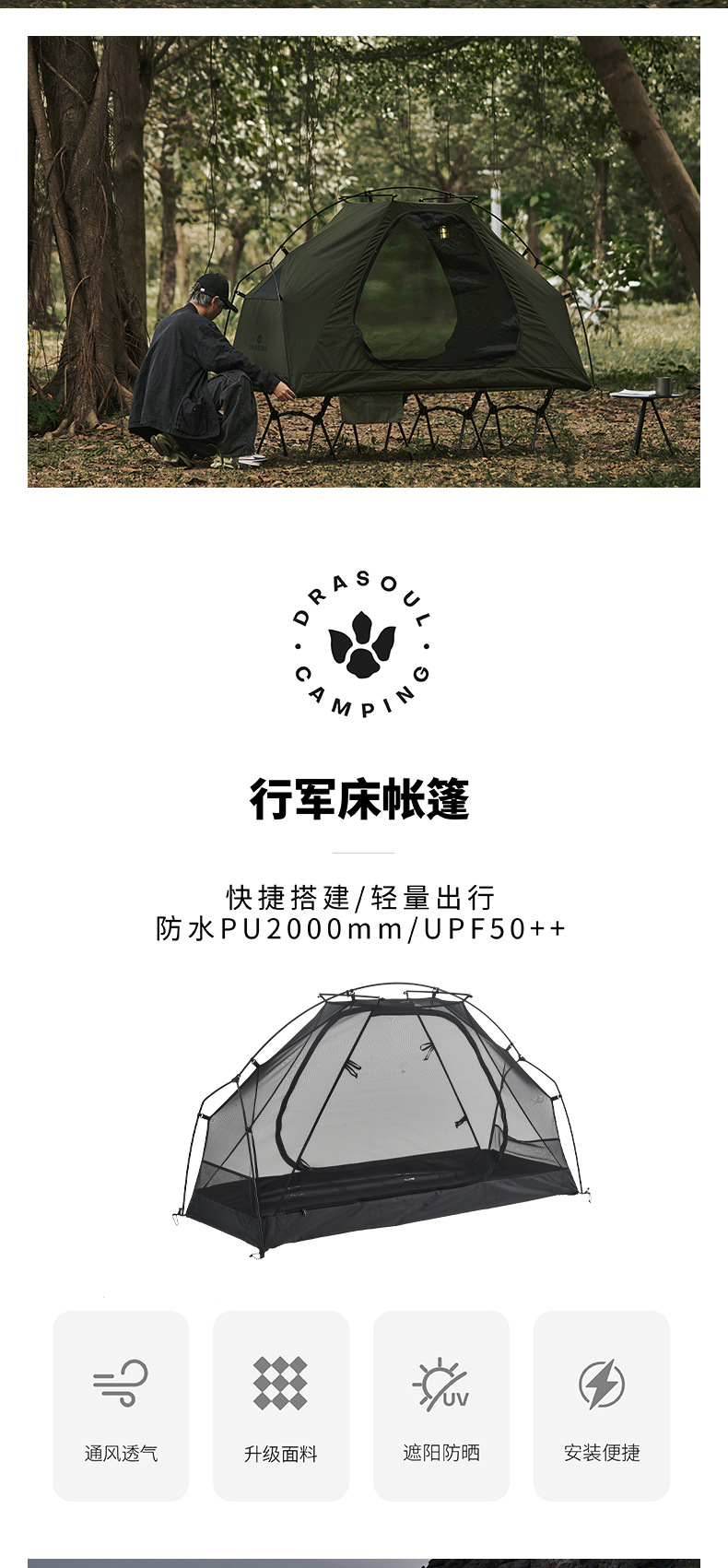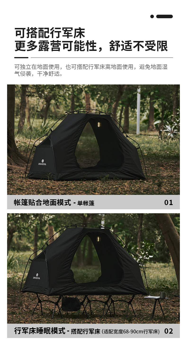 DRASOUL 싱글 스타 모션 오프 그라운드 캠프 침대 텐트 하이킹 코튼 텐트 경량 휴대용 야외 캠핑 텐트스토어 가기