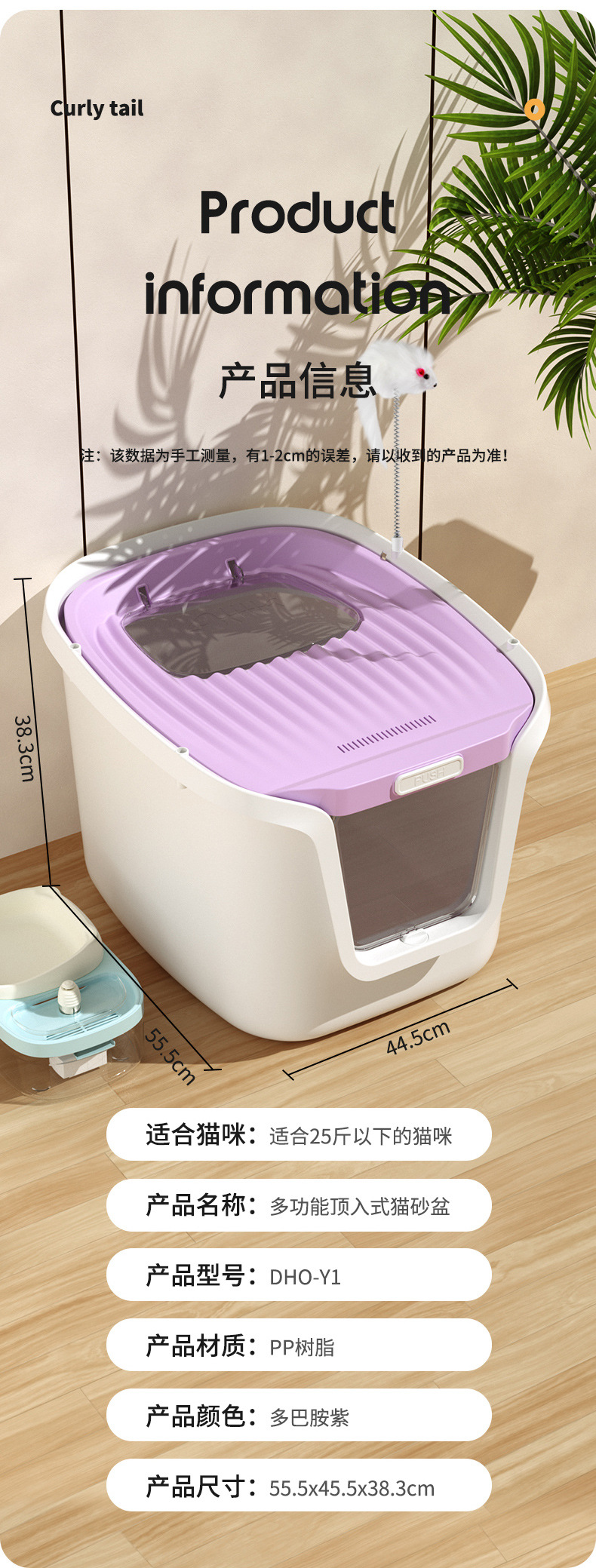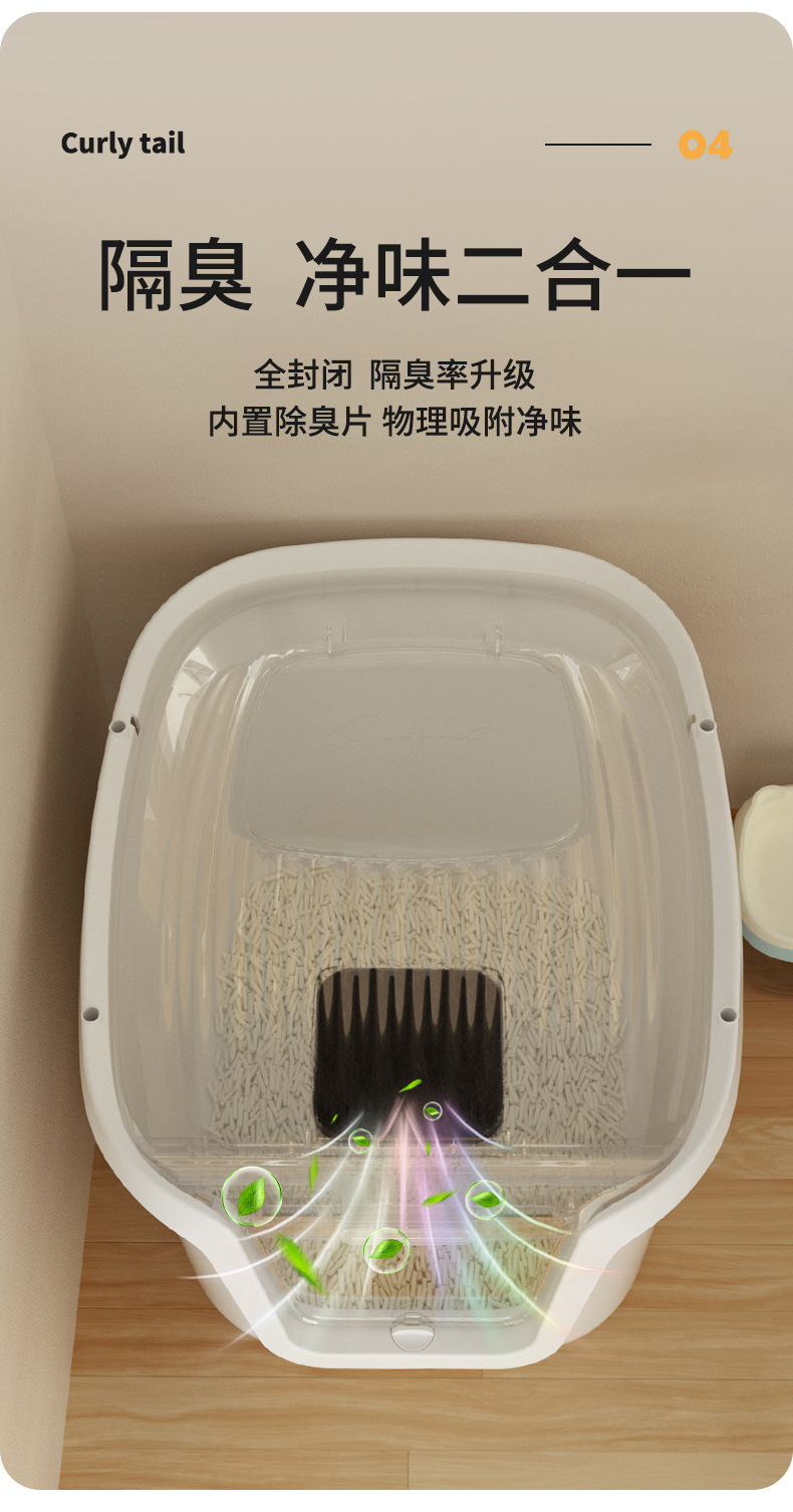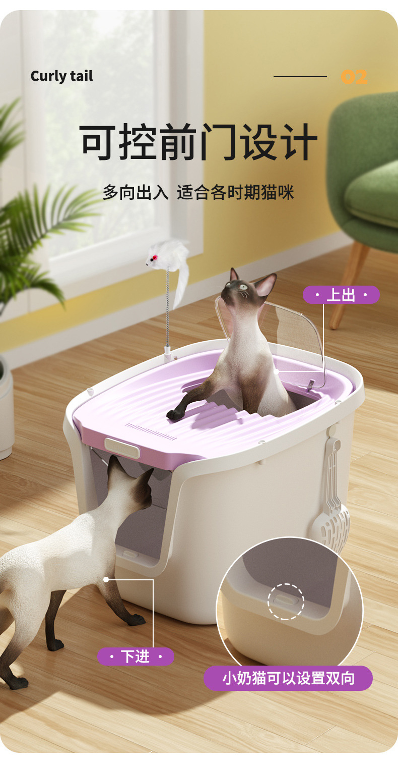 꼬리 압연 완전히 밀폐 된 고양이 화장실 고양이 쓰레기 상자 배달 용 모래 쓰레기 상자 고양이 용품으로 대형 스플래시 방지 상자
