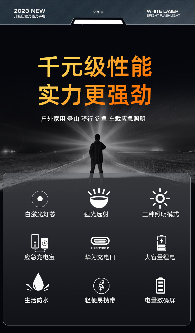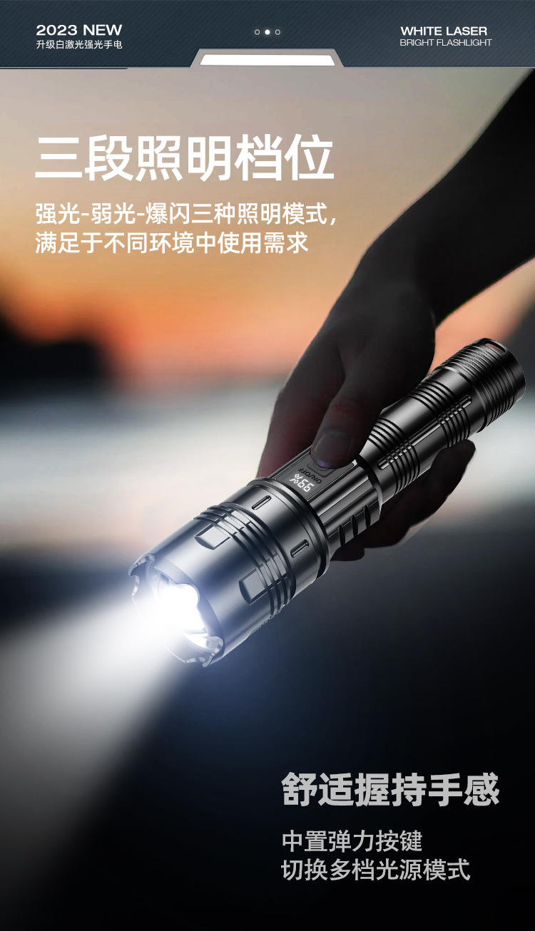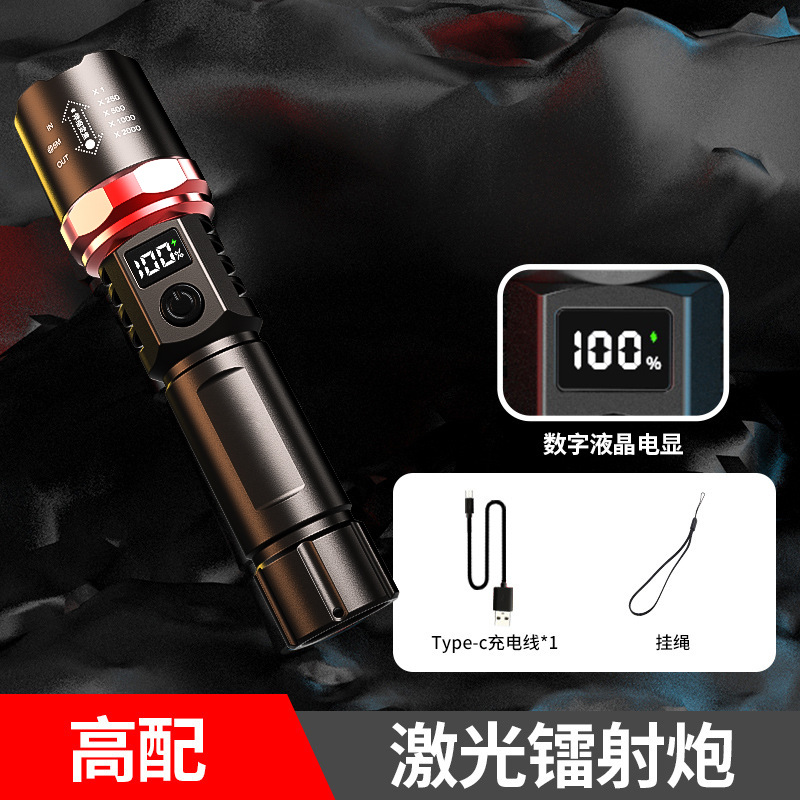 국경 특수 손전등 야외 강한 빛 탐조등 디지털 디스플레이 전원 디스플레이 방수 텔레스코픽 초점 90 손전등 50스토어 가기