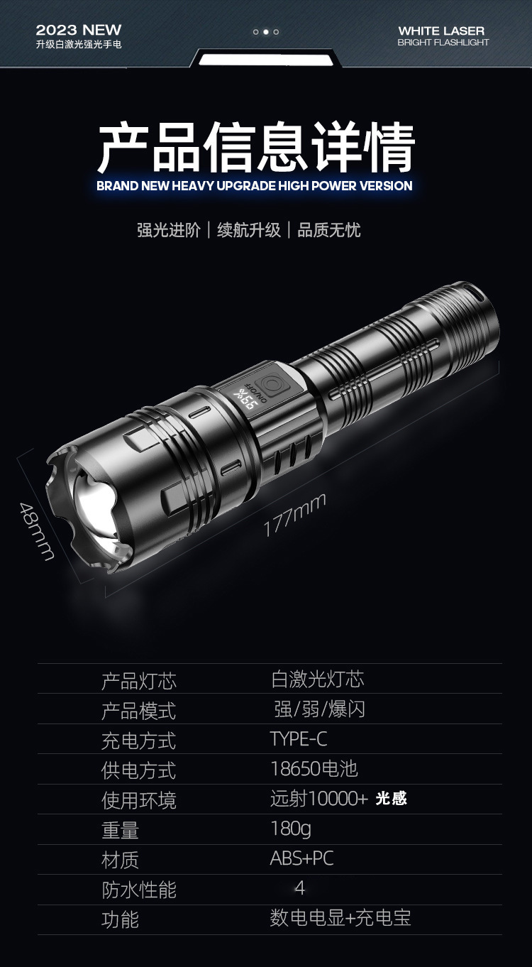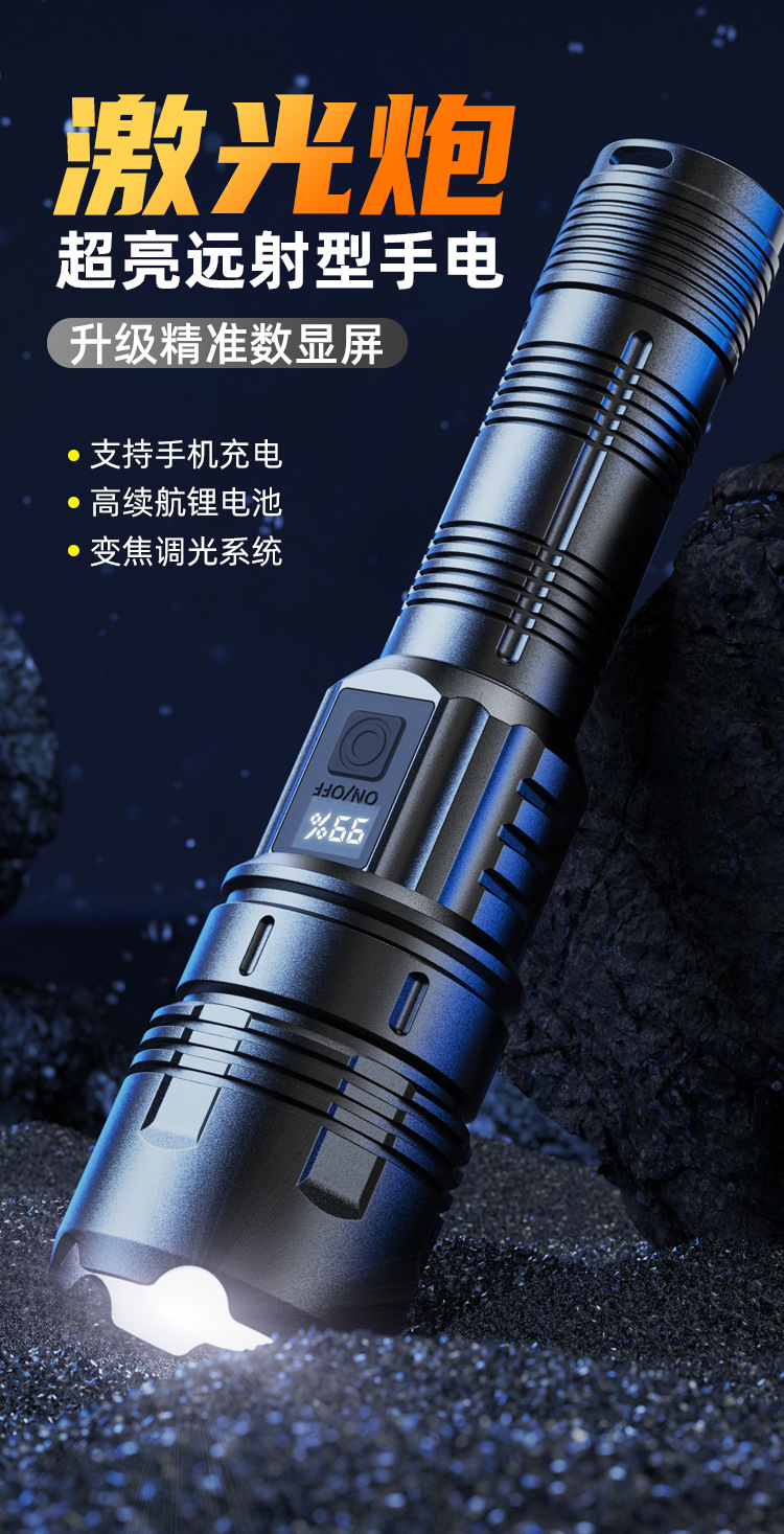 국경 특수 손전등 야외 강한 빛 탐조등 디지털 디스플레이 전원 디스플레이 방수 텔레스코픽 초점 90 손전등 50