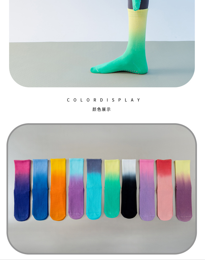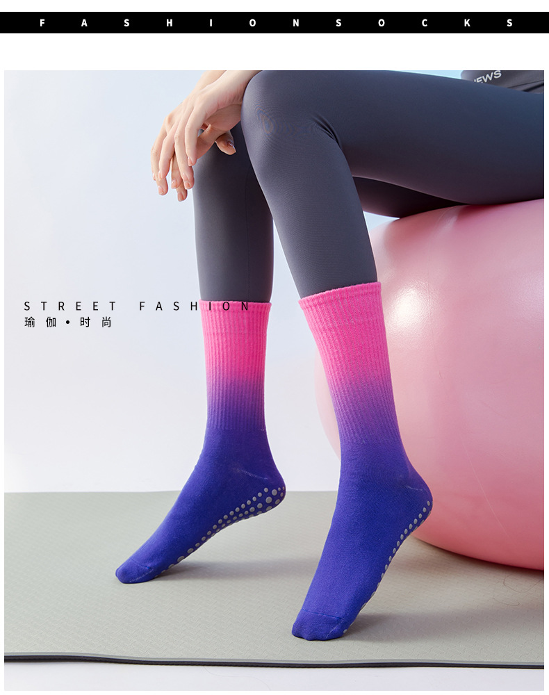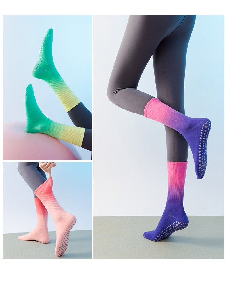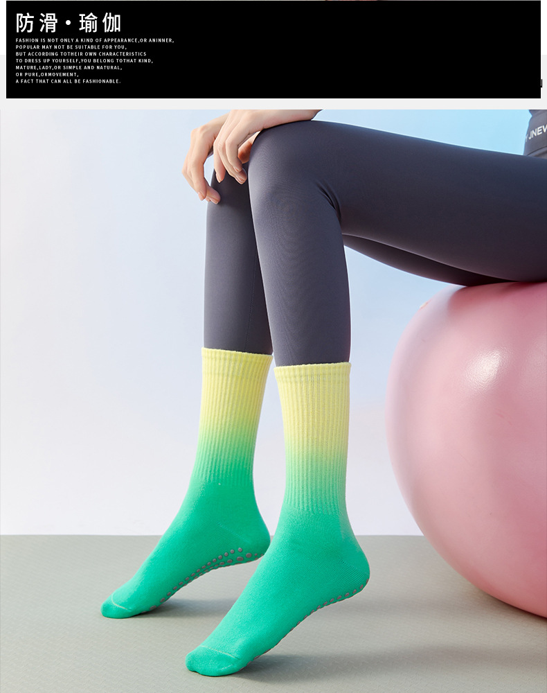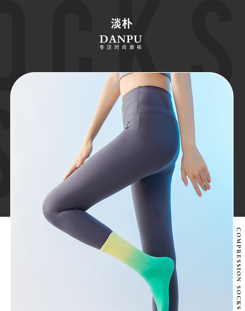 가벼운 국경 가을, 겨울 그라데이션 요가 여성 양말 미끄럼 방지 스포츠 양말 소녀 필라테스 중반 송아지 양말 공장 직접 판매
