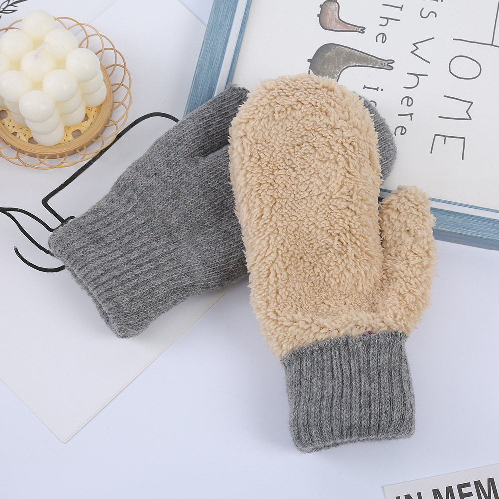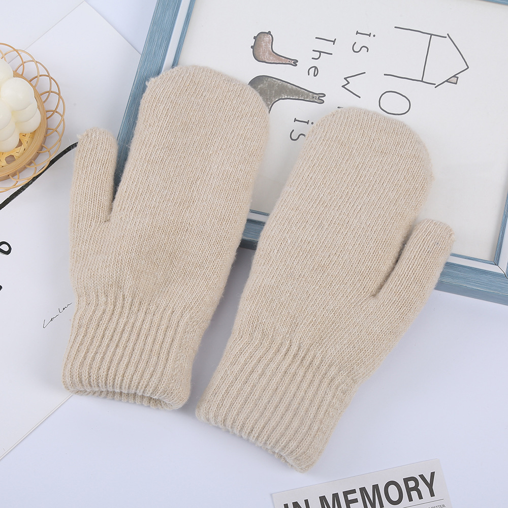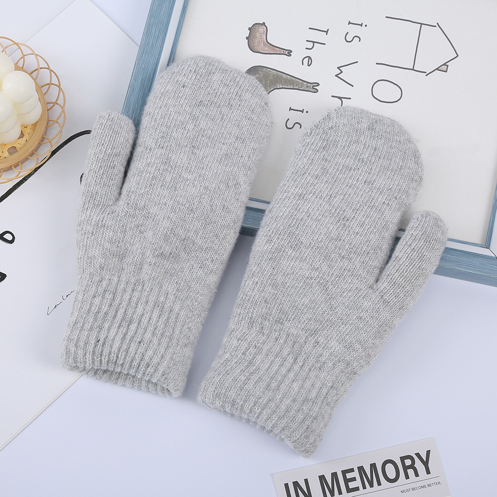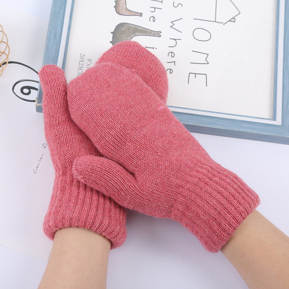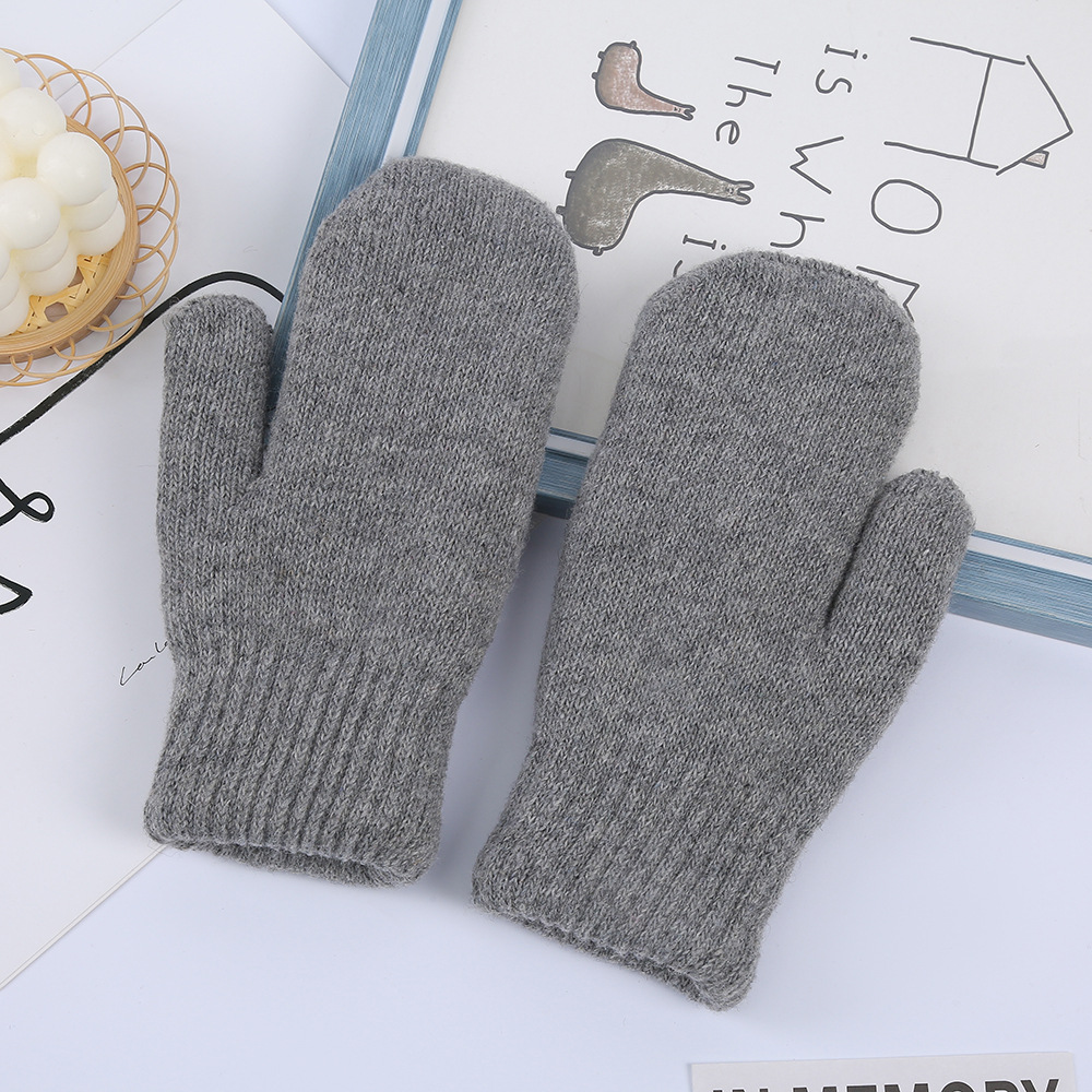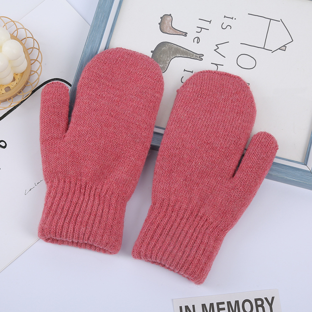 어린이 장갑 니트 장갑 겨울 학생 단색 야외 방풍 기모 두꺼운 따뜻한 장갑 공장 도매