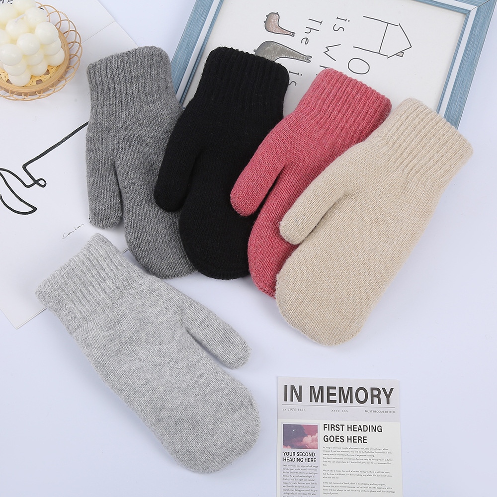 어린이 장갑 니트 장갑 겨울 학생 단색 야외 방풍 기모 두꺼운 따뜻한 장갑 공장 도매스토어 가기