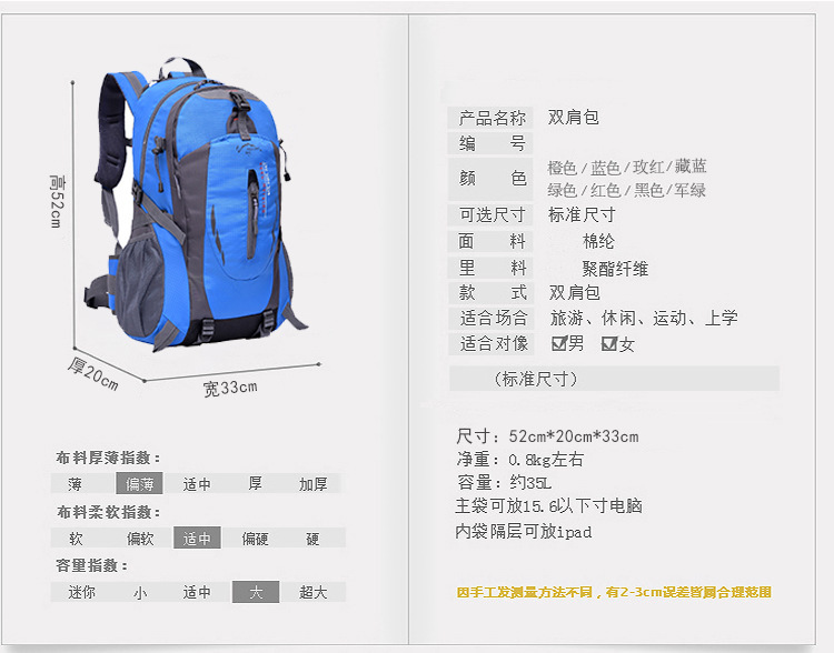 공장 도매 야외 하이킹 배낭 남성 국경 다기능 사이클링 여행 스포츠 배낭 여성