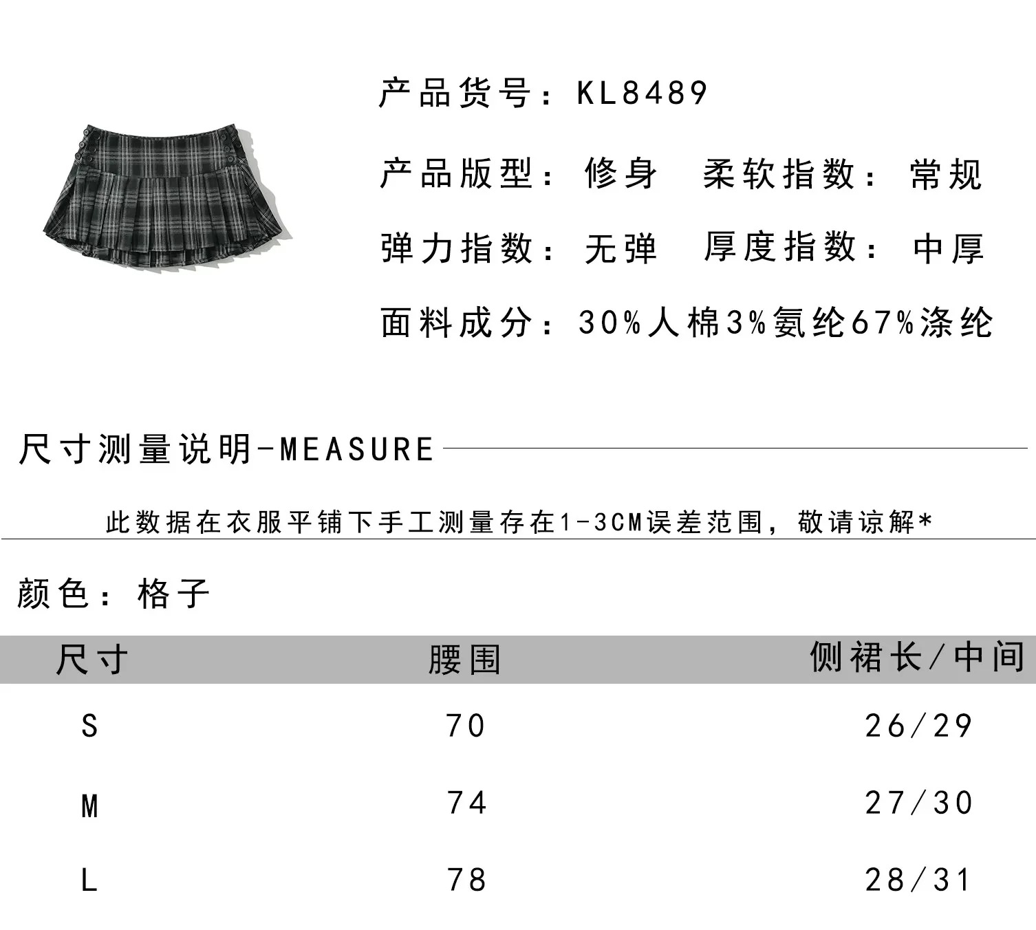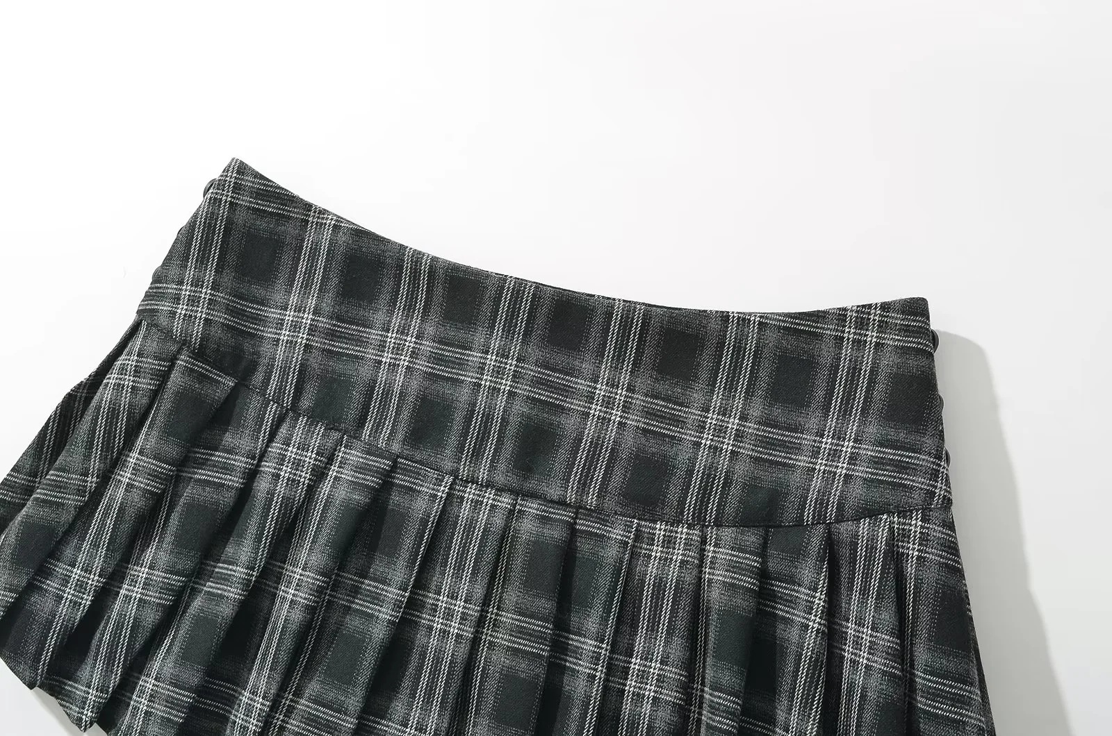 미국 복고풍 격자 무늬 스커트 2024 새로운 디자인 감각 틈새 스티치 벨트 프레피 스타일 플리츠 미니 스커트스토어 가기
