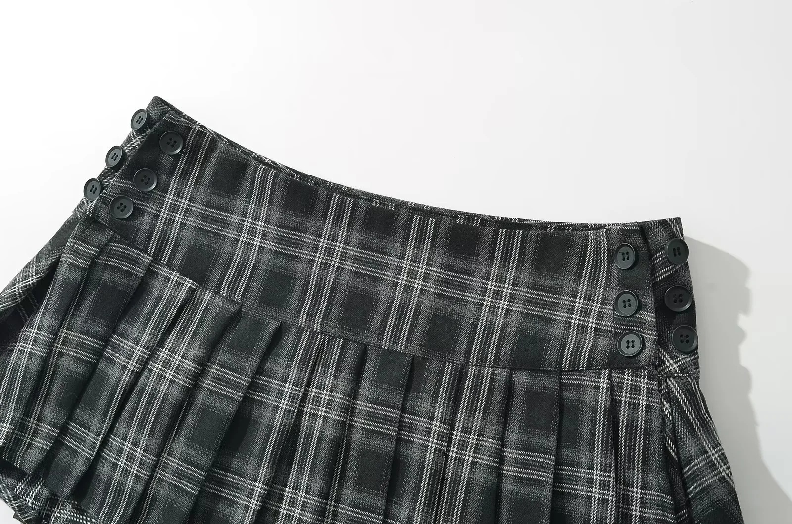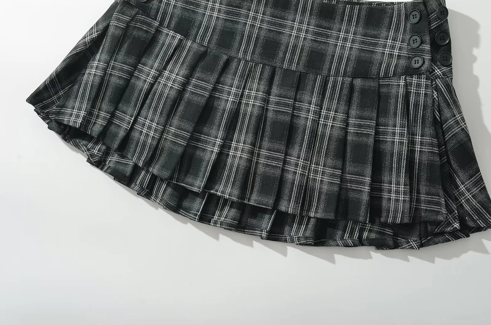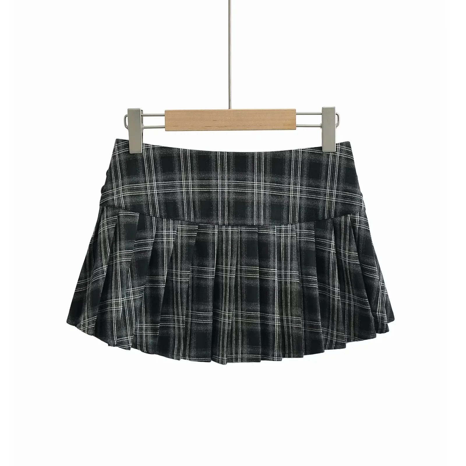 미국 복고풍 격자 무늬 스커트 2024 새로운 디자인 감각 틈새 스티치 벨트 프레피 스타일 플리츠 미니 스커트