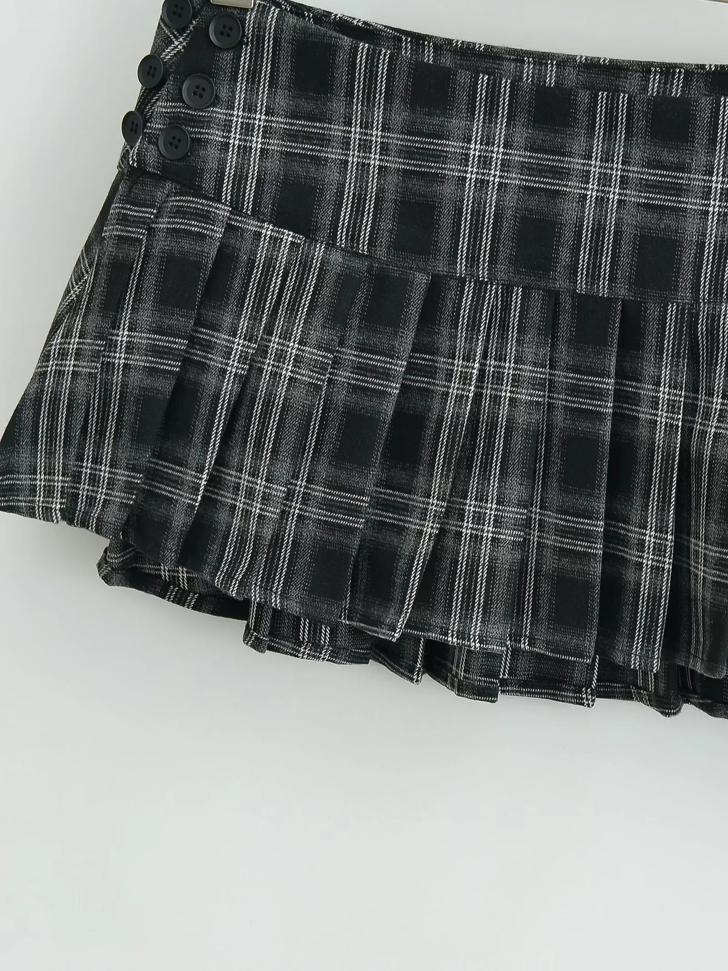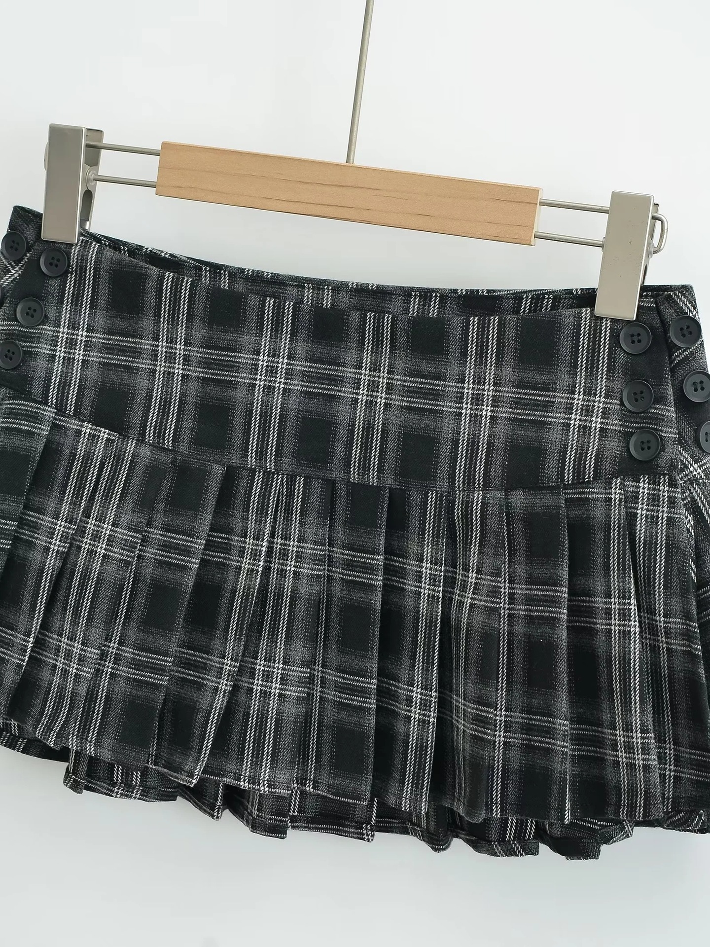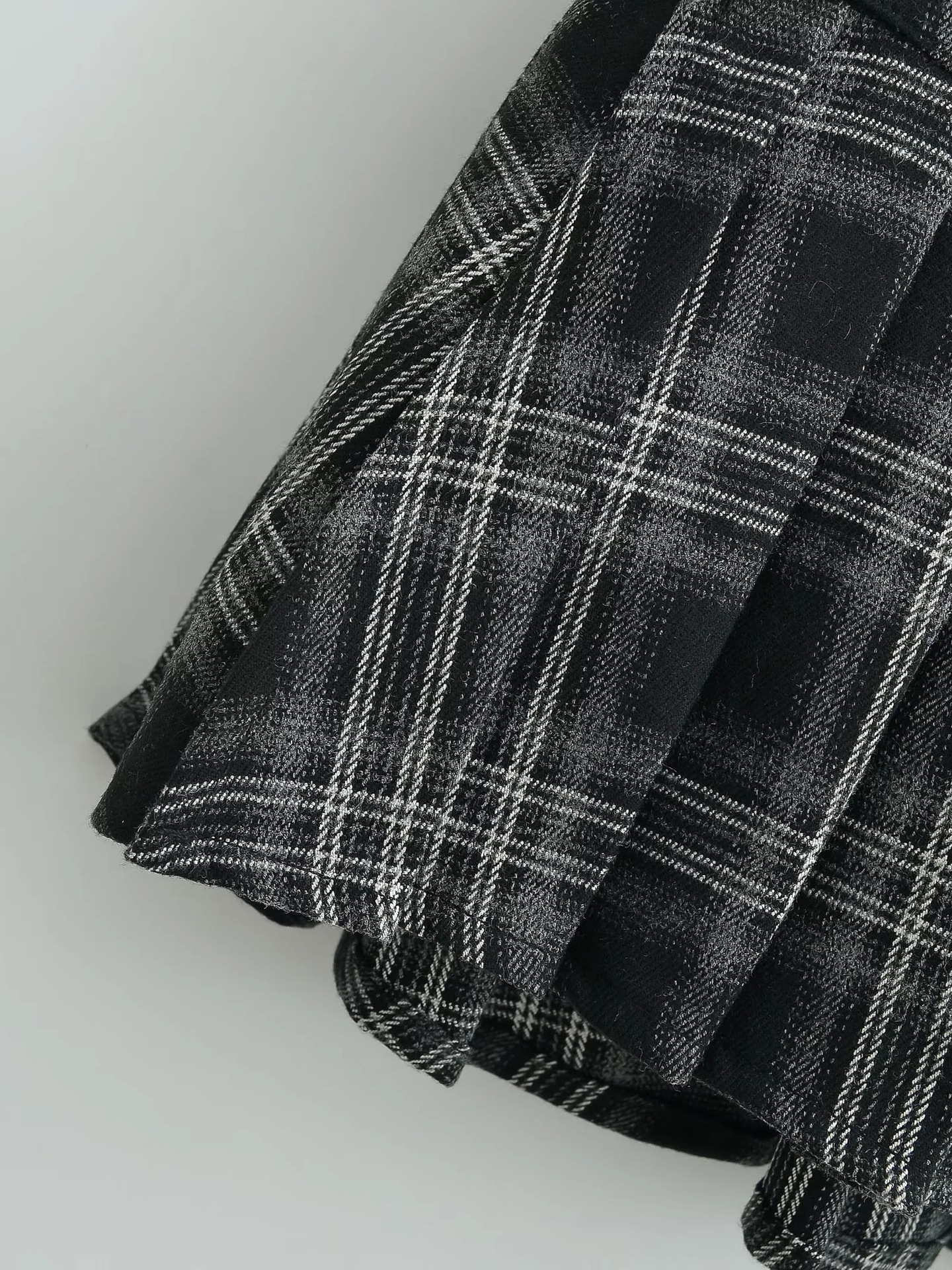 미국 복고풍 격자 무늬 스커트 2024 새로운 디자인 감각 틈새 스티치 벨트 프레피 스타일 플리츠 미니 스커트