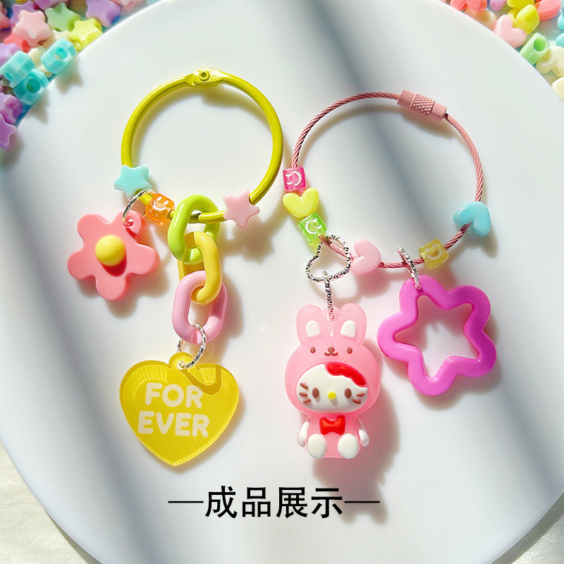 스타 러브 DIY 액세서리 캔디 컬러 다섯개 별 플라스틱 큰 구멍 구슬 키 체인 백 펜던트 소재