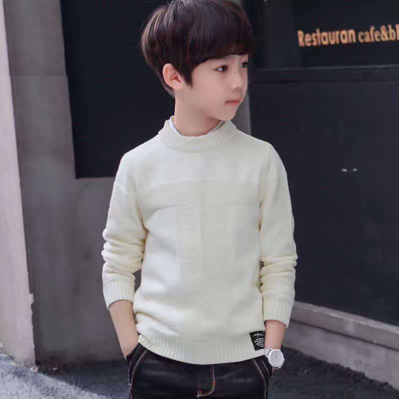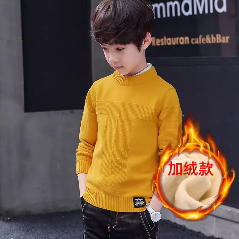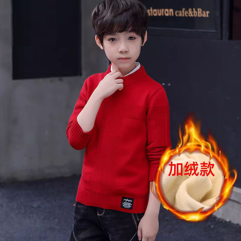 2022 소년 소녀 스웨터 가을과 겨울 새로운 중형 및 대형 어린이 풀오버 스웨터 면화 어린이 남성 둥근 목 단색 빨간색스토어 가기