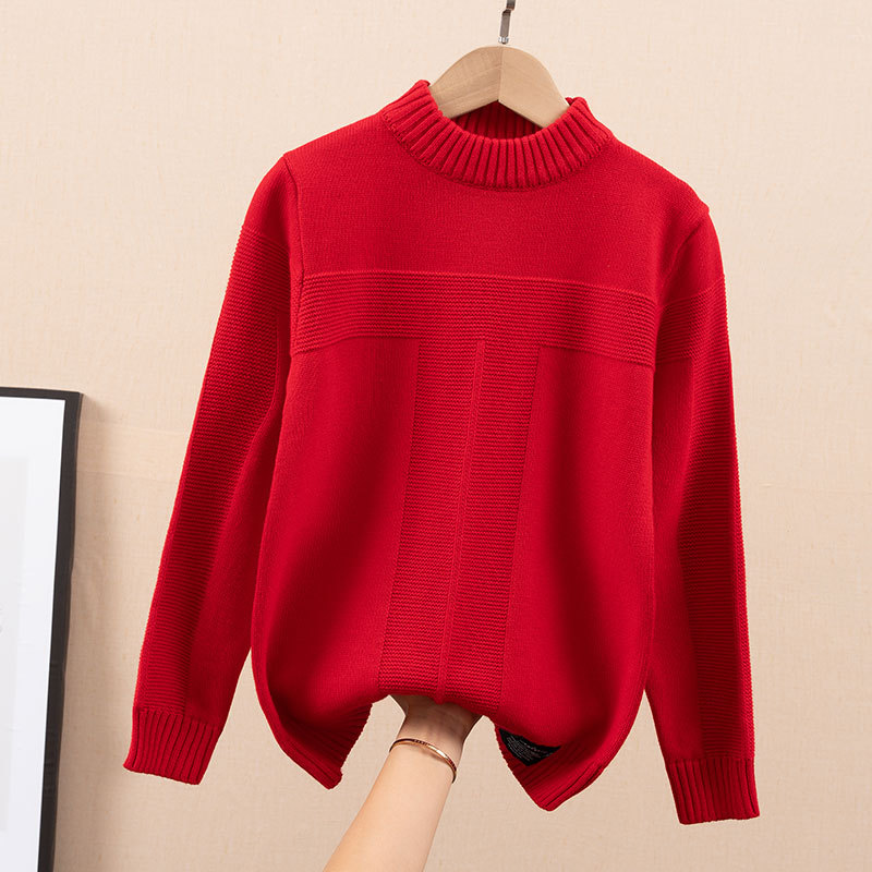 2022 소년 소녀 스웨터 가을과 겨울 새로운 중형 및 대형 어린이 풀오버 스웨터 면화 어린이 남성 둥근 목 단색 빨간색