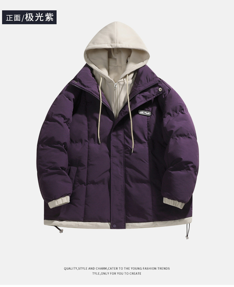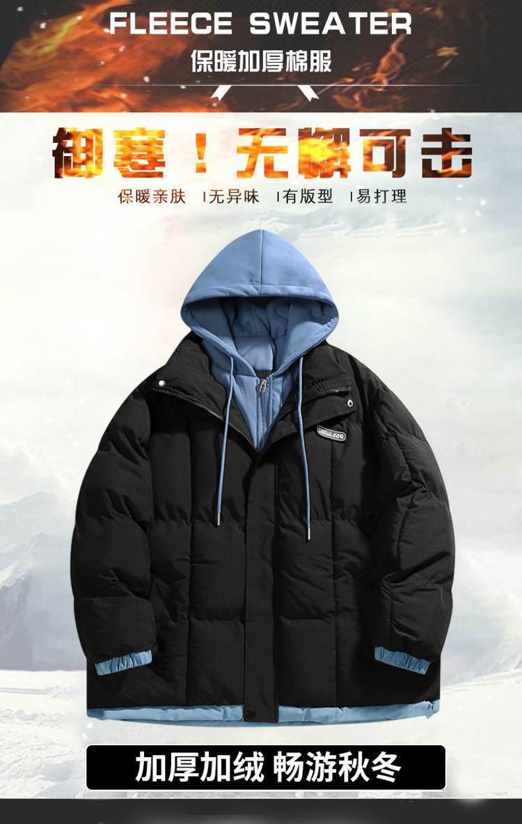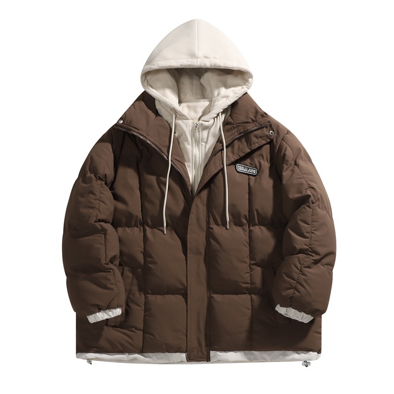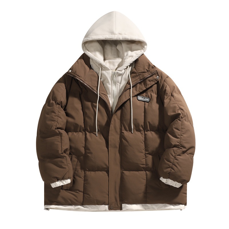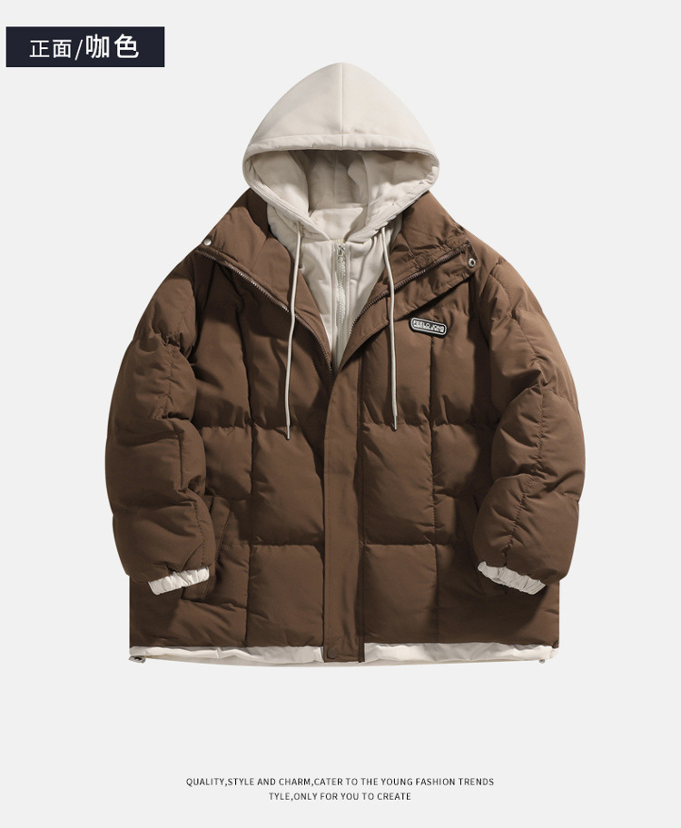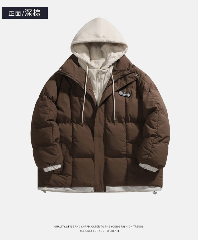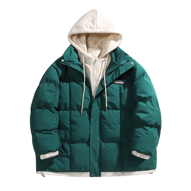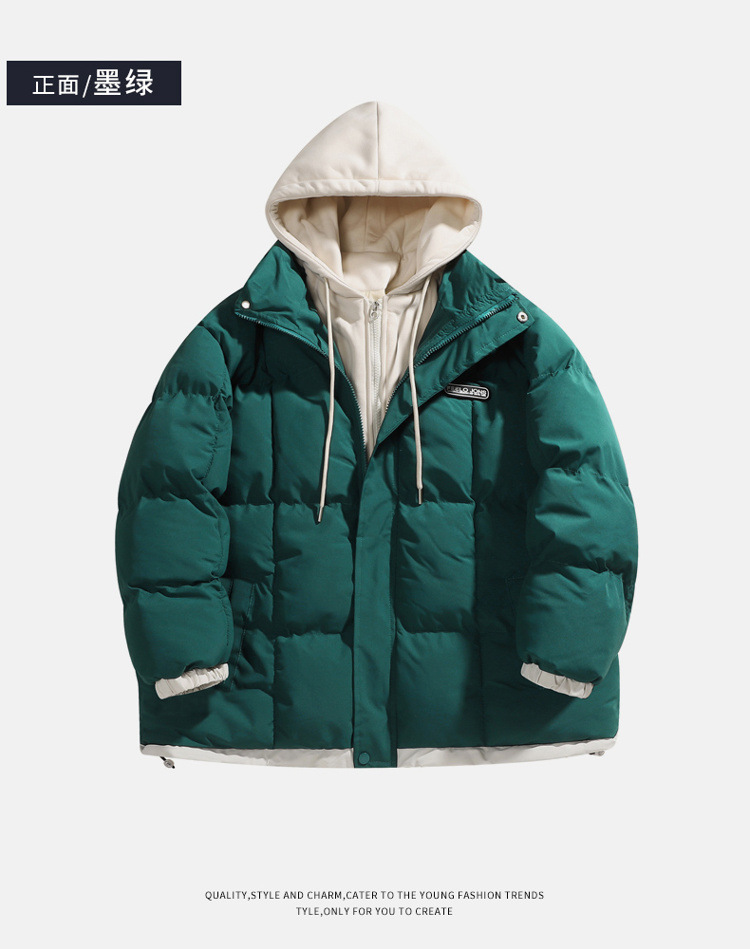 청소년 트렌디 한 남성을위한 겨울 가짜 투피스 두껍게 된면 패딩 코트 따뜻한 캐주얼 한국 스타일 세련된 올 매칭 코튼 패딩 코트스토어 가기
