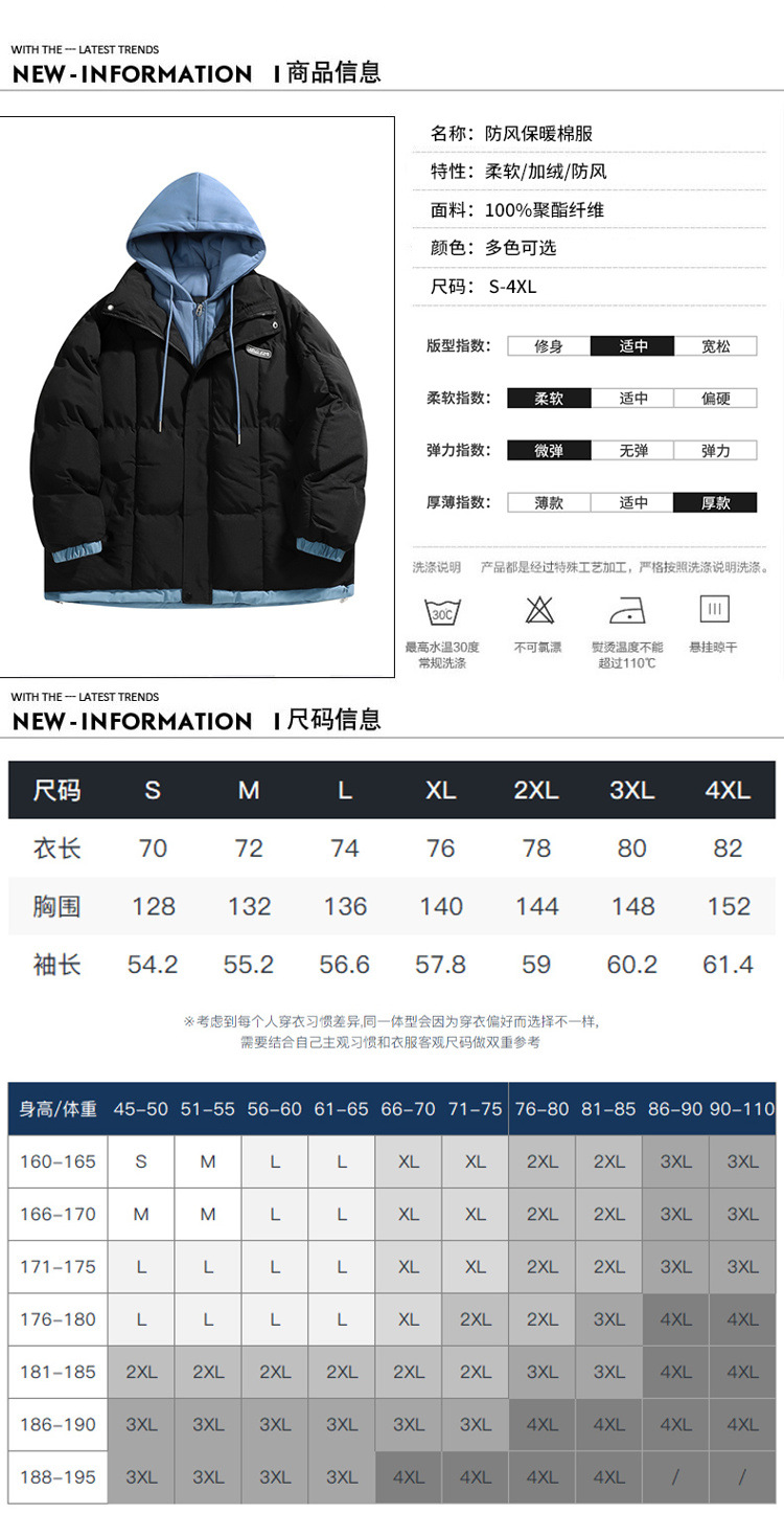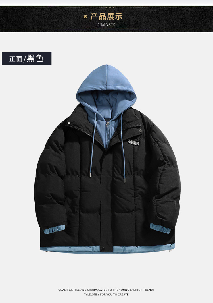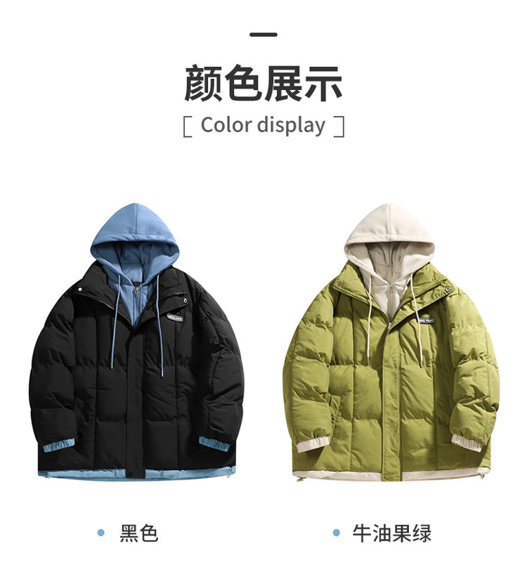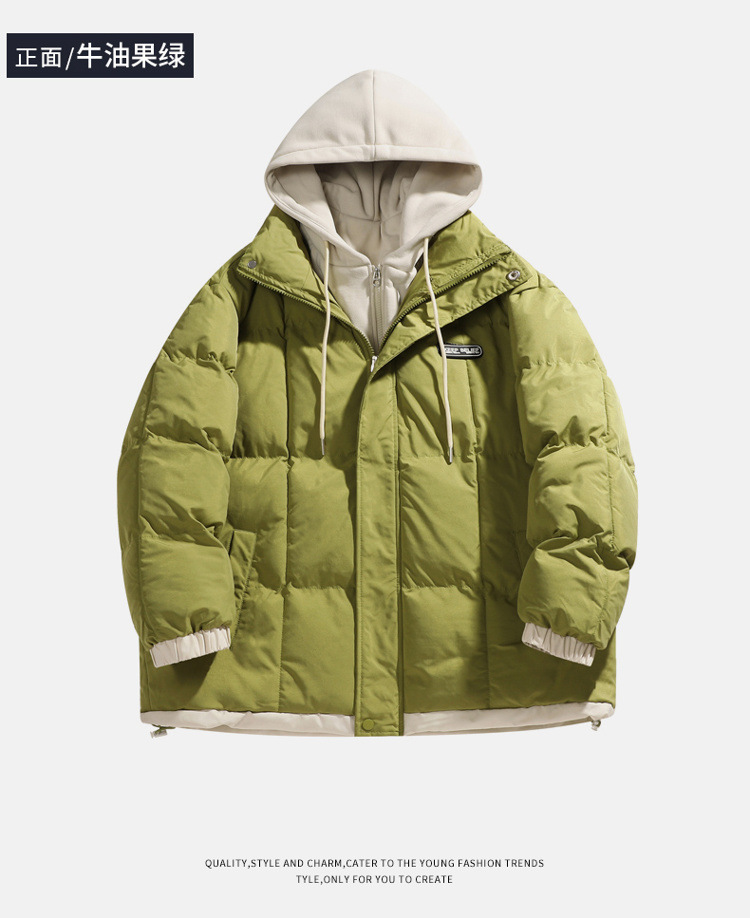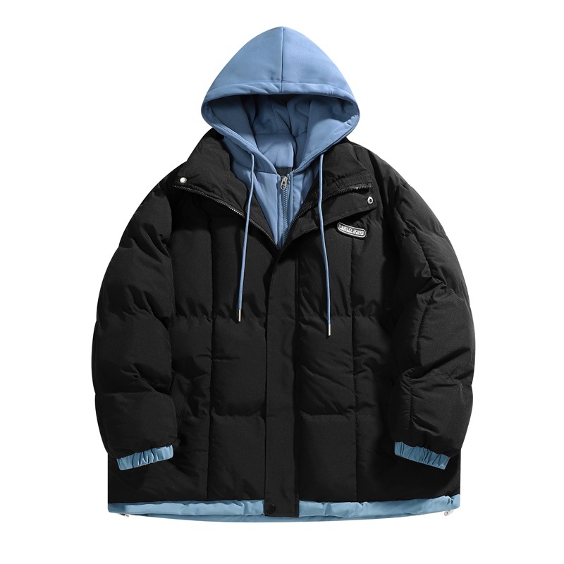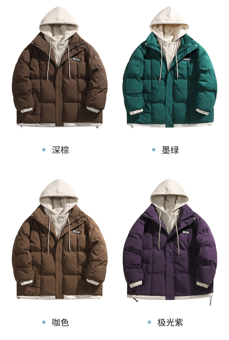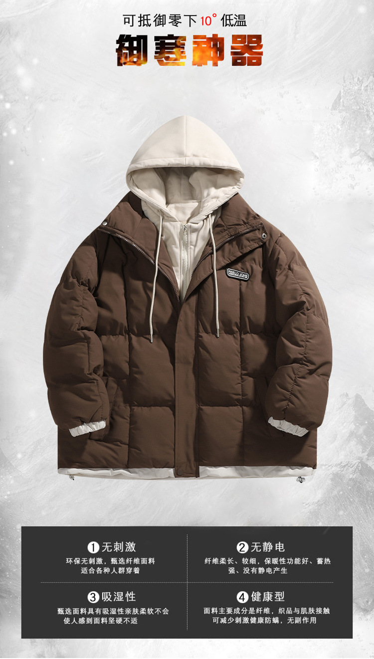 청소년 트렌디 한 남성을위한 겨울 가짜 투피스 두껍게 된면 패딩 코트 따뜻한 캐주얼 한국 스타일 세련된 올 매칭 코튼 패딩 코트스토어 가기