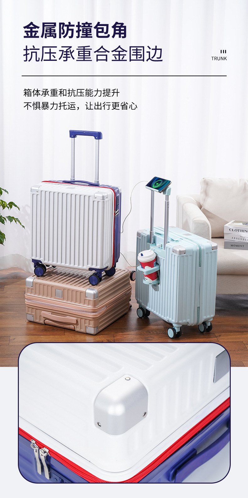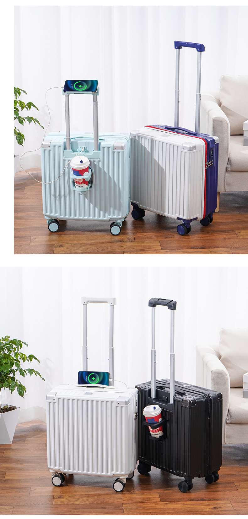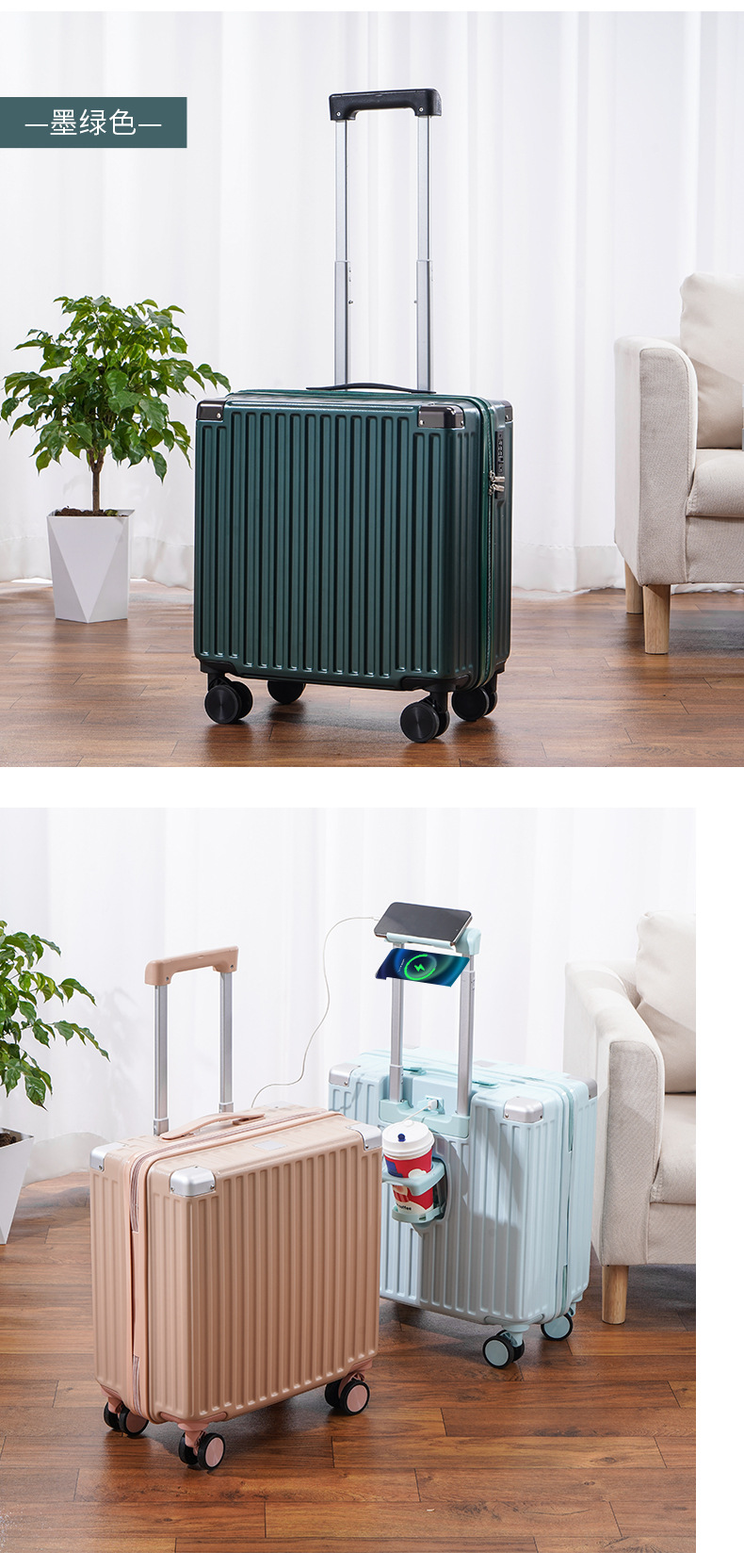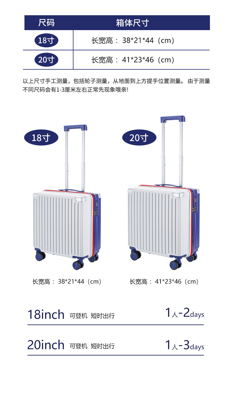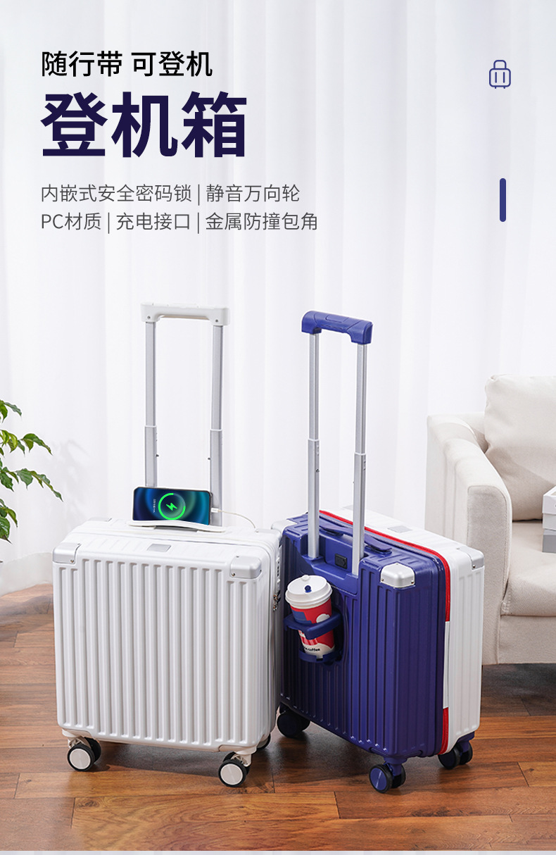 2024 새로운 다기능 소형 탑승 케이스 18 인치 여행 가방 무료 상자 경량 범용 음소거 트롤리 케이스스토어 가기