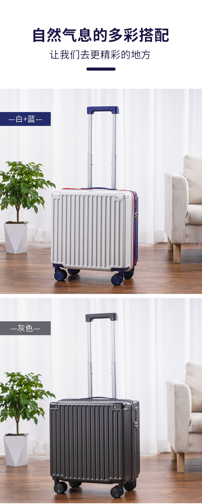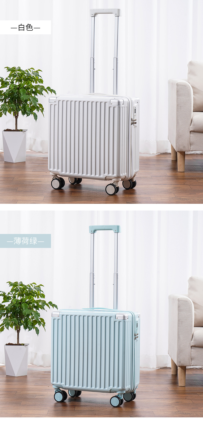 2024 새로운 다기능 소형 탑승 케이스 18 인치 여행 가방 무료 상자 경량 범용 음소거 트롤리 케이스