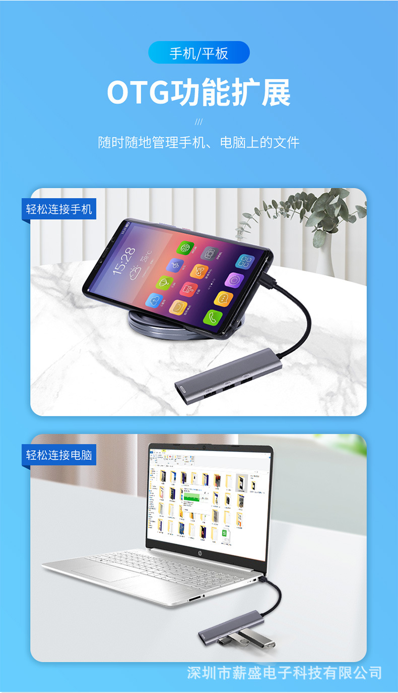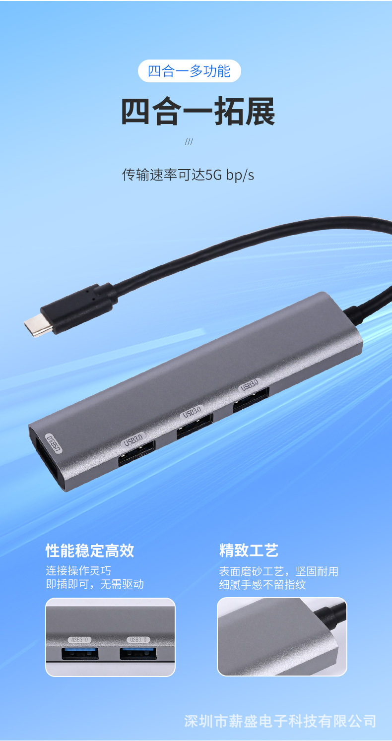hubusb 4-in-1 허브 typec 1-4개 연결 3.0 컴퓨터 분배기 확장 도크 다중 인터페이스 전송스토어 가기